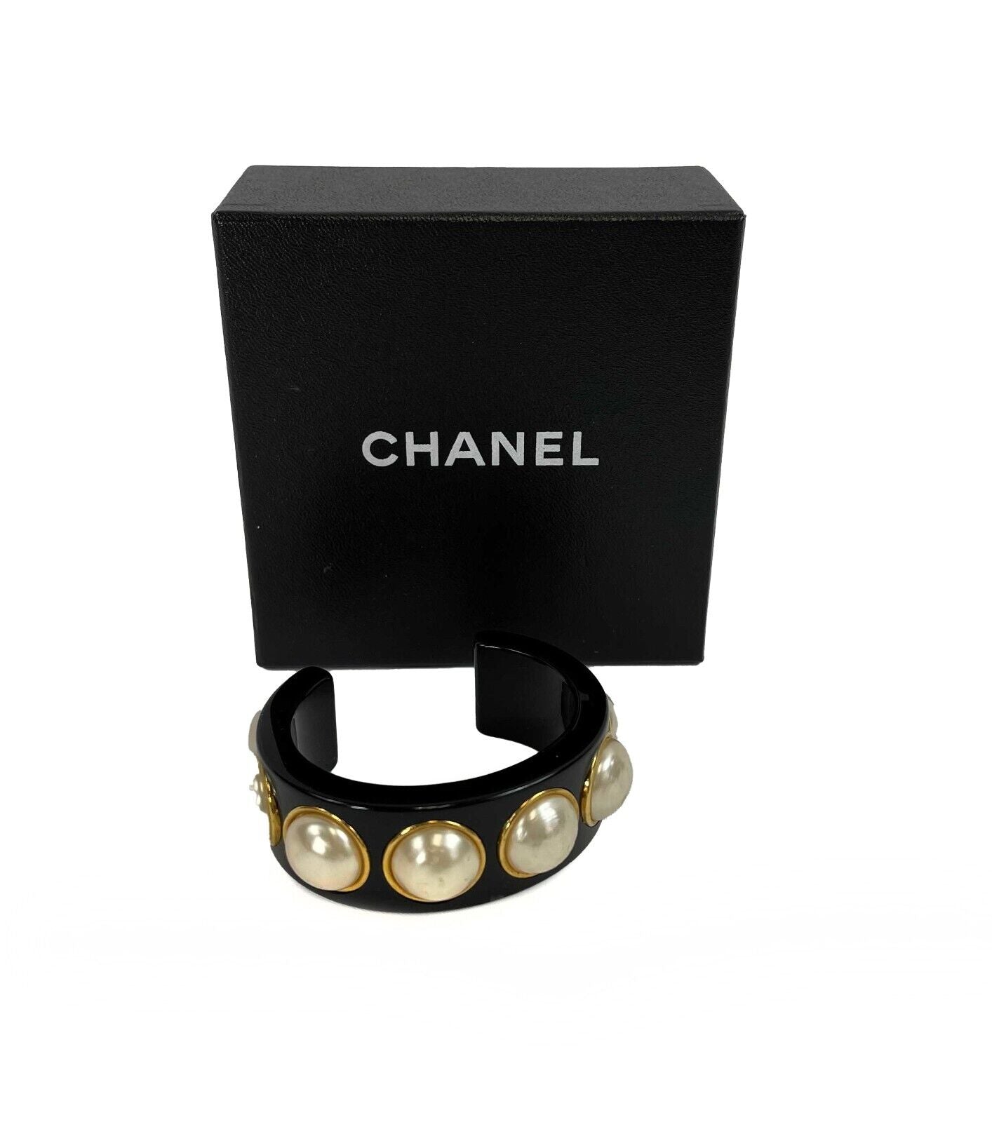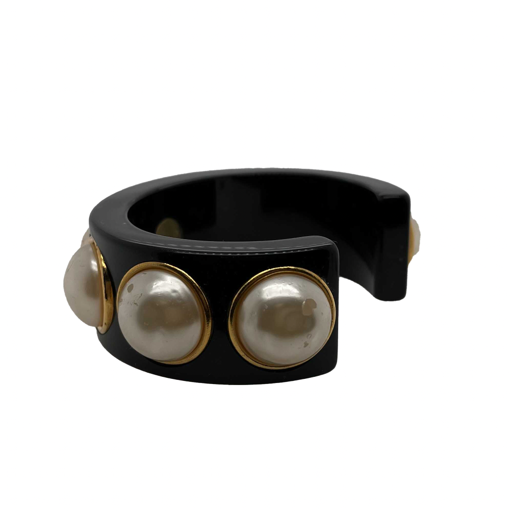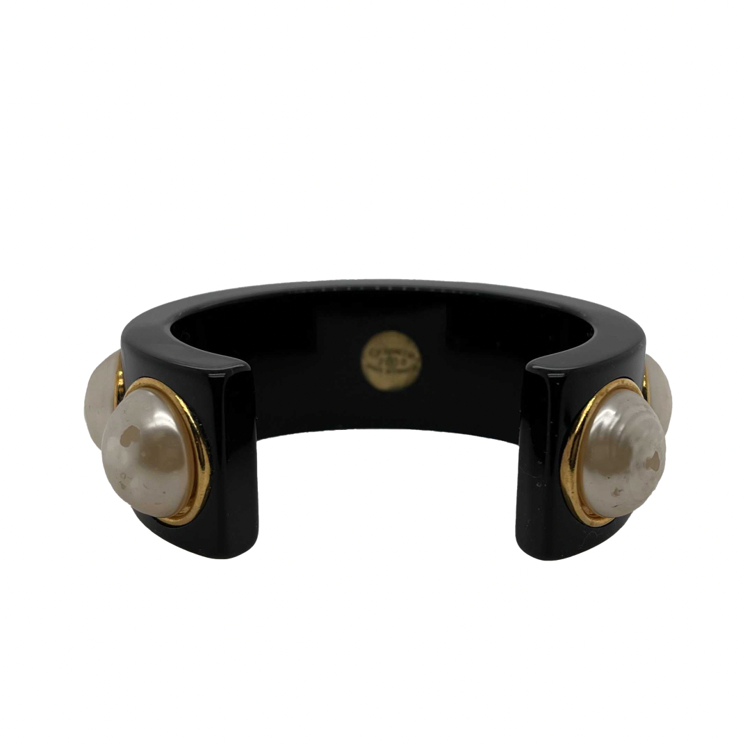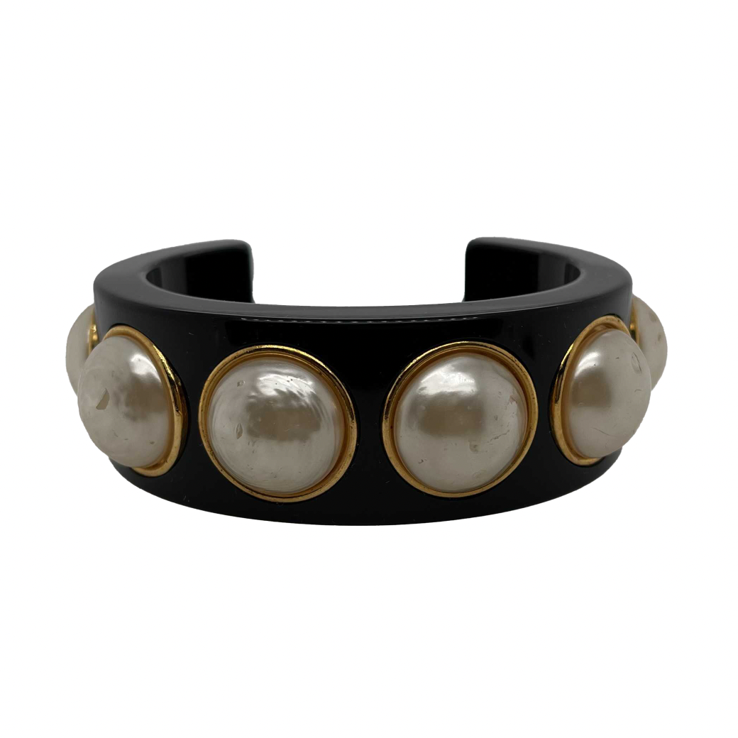 CHANEL - Very Good - Vintage Large Pearl Resin Cuff - Black - Bracelet