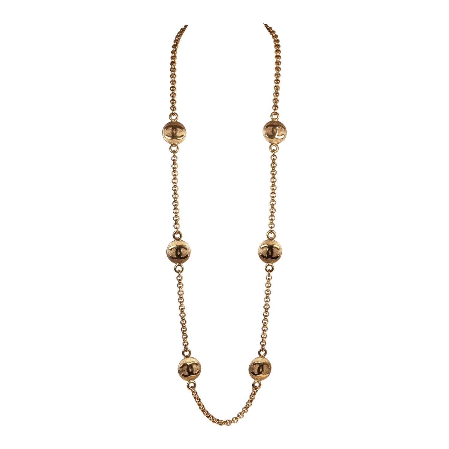 Vintage Chanel Medallion Cable Chain Gold Metal Necklace