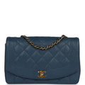Vintage Chanel Medium Diana Flap Bag Blue Caviar Gold Hardware