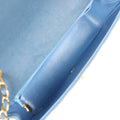 The interior is lined in Blue leather and includes one zip pocket with CC logo pull and one slip pocket on the back wall.