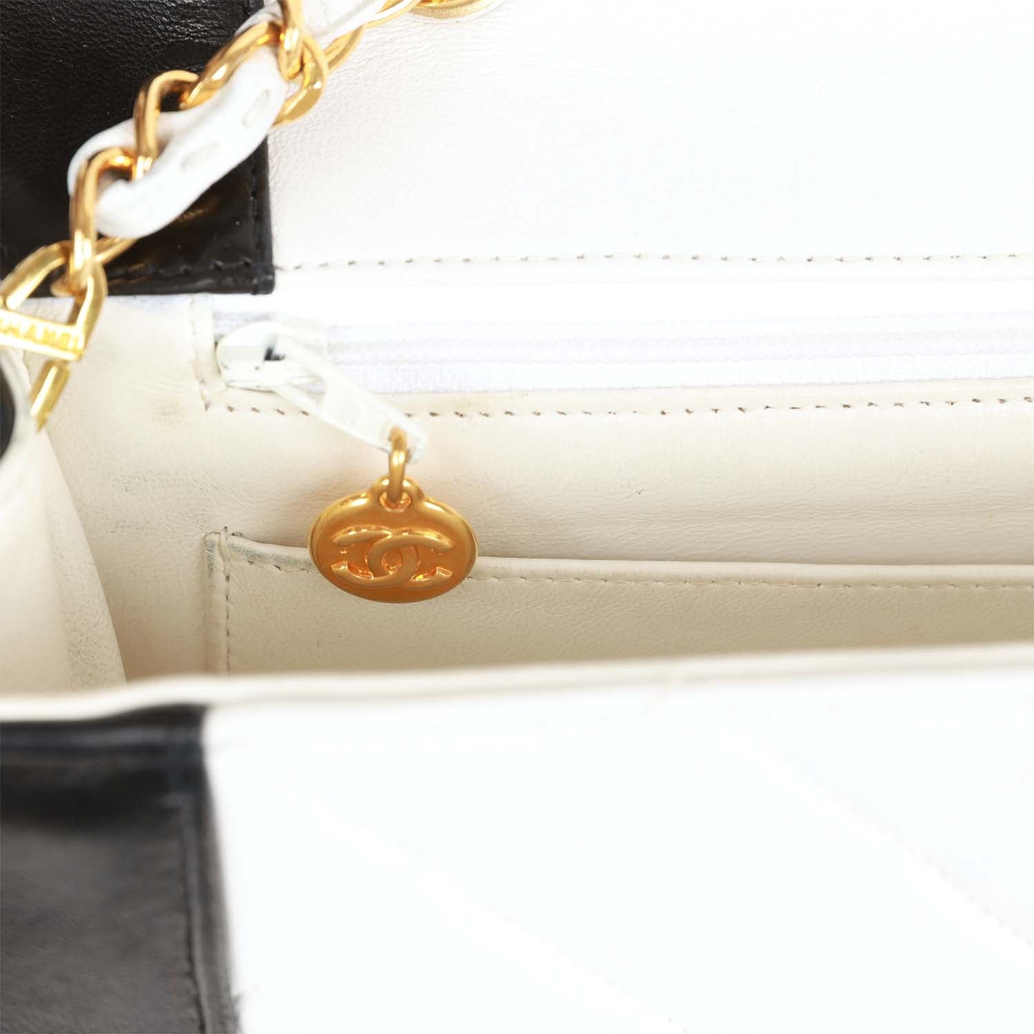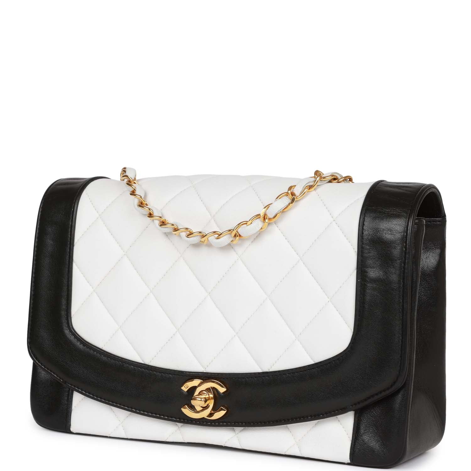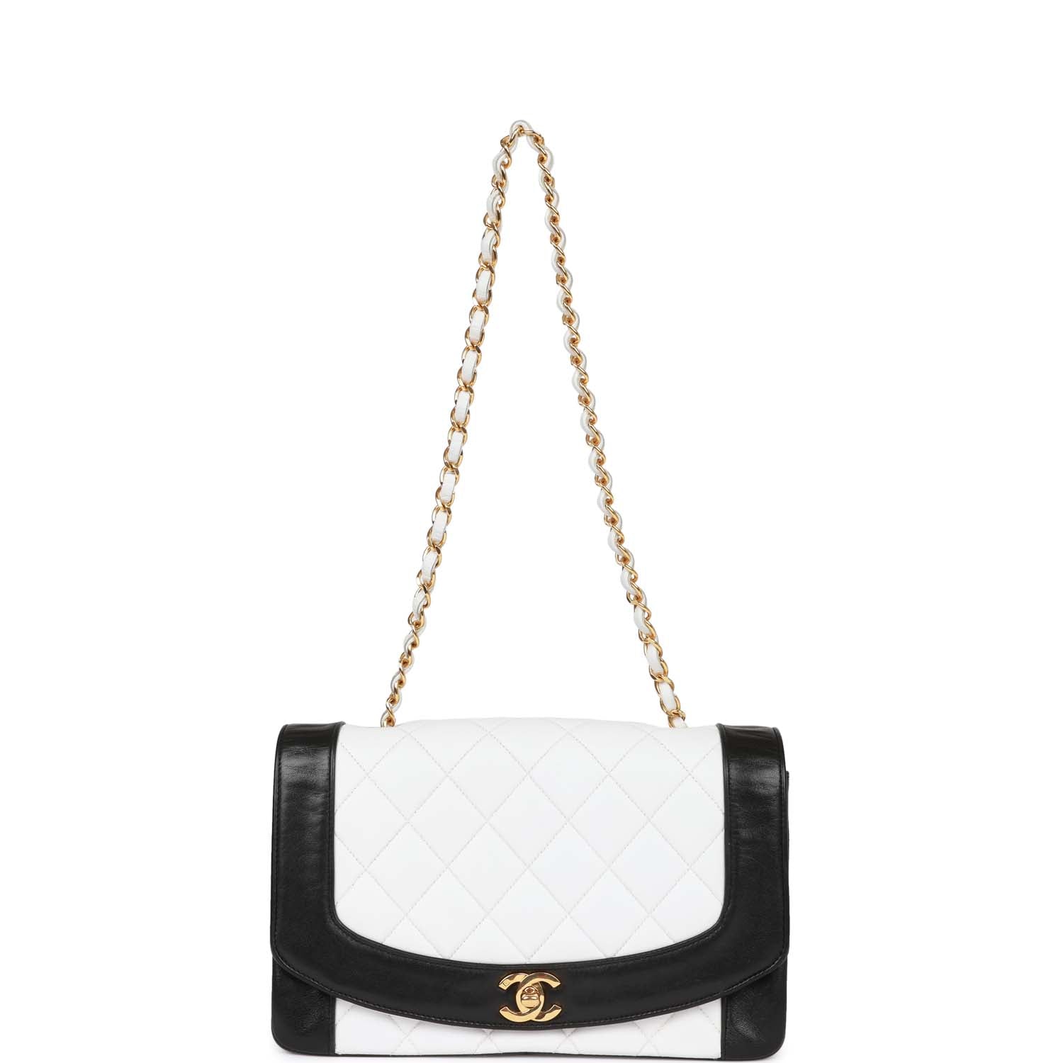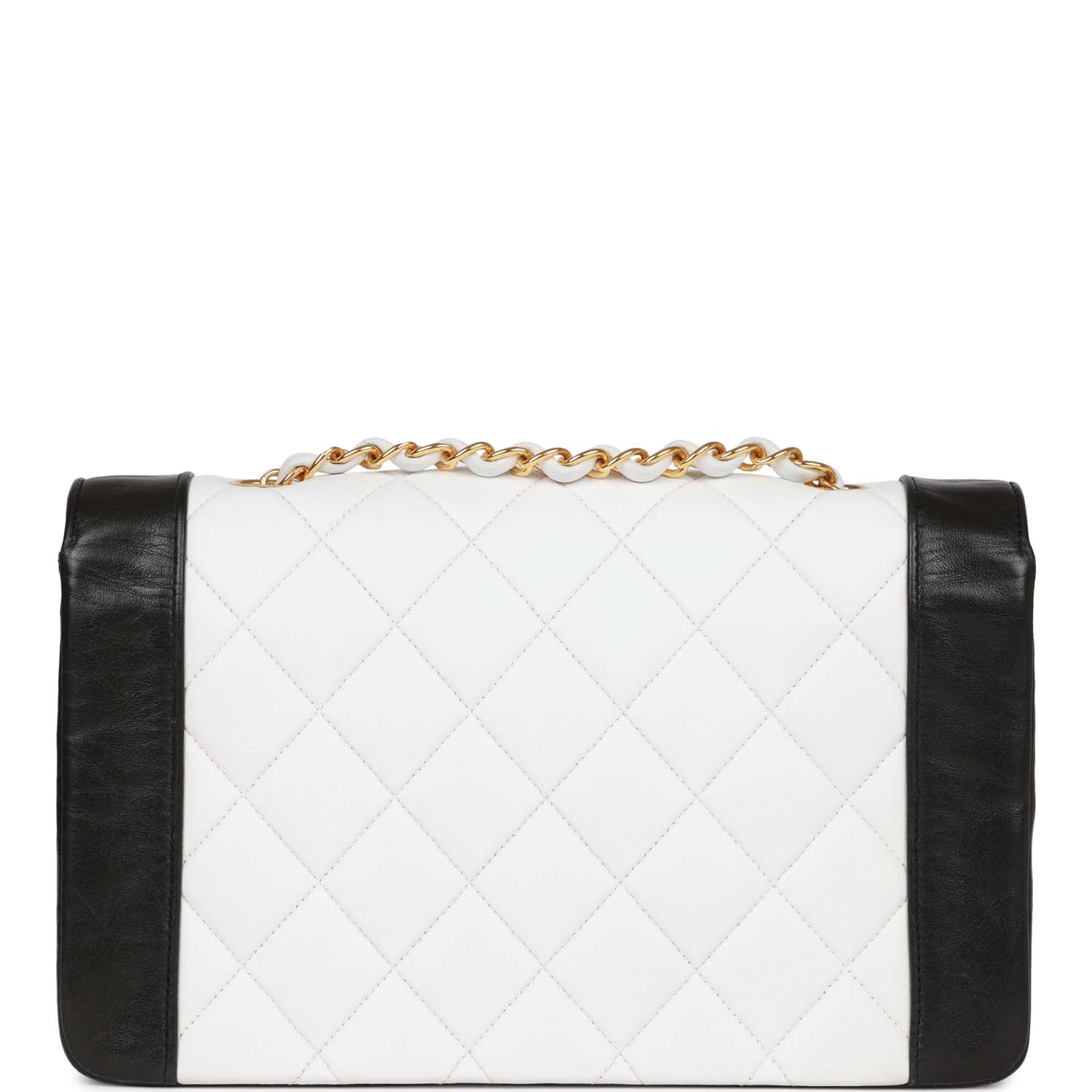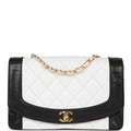 Vintage Chanel Medium Diana Flap Bag White and Black Lambskin Gold Hardware