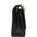 This Vintage Chanel Medium Diana flap Bag is in black and white lambskin leather with gold plated hardware, front flap with CC turnlock closure, and adjustable interwoven gold plated chain link and white leather shoulder/crossbody strap