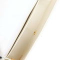 The interior is lined in white leather with one slip pocket and one zip pocket on back wall.