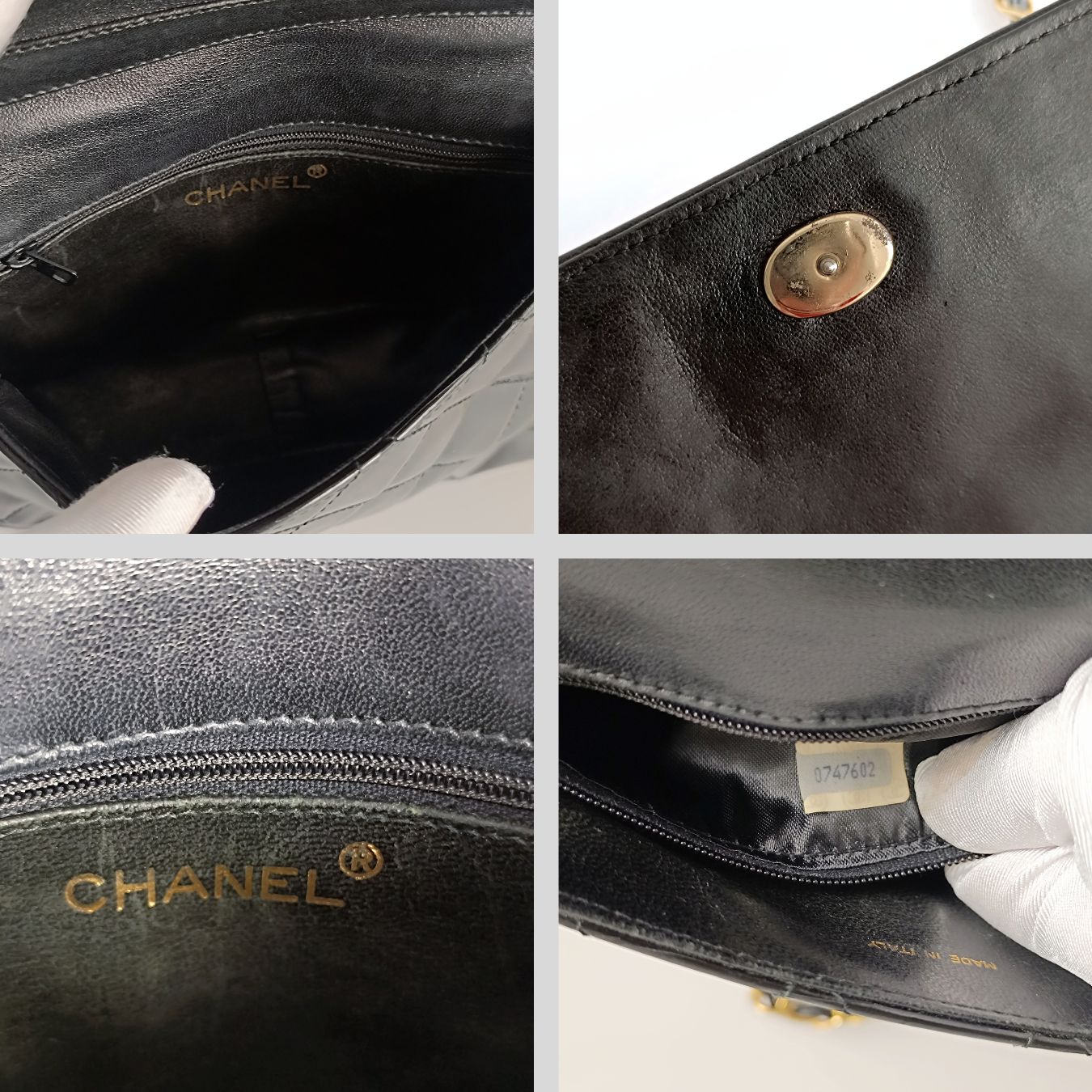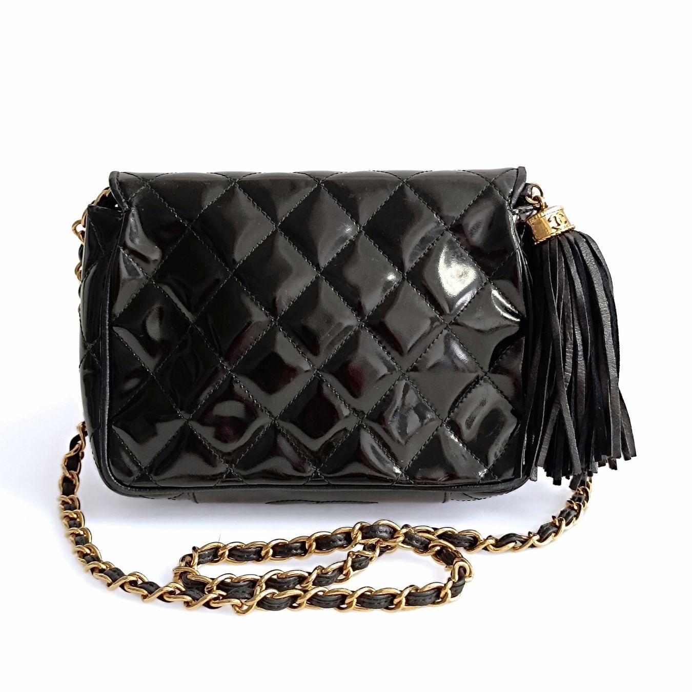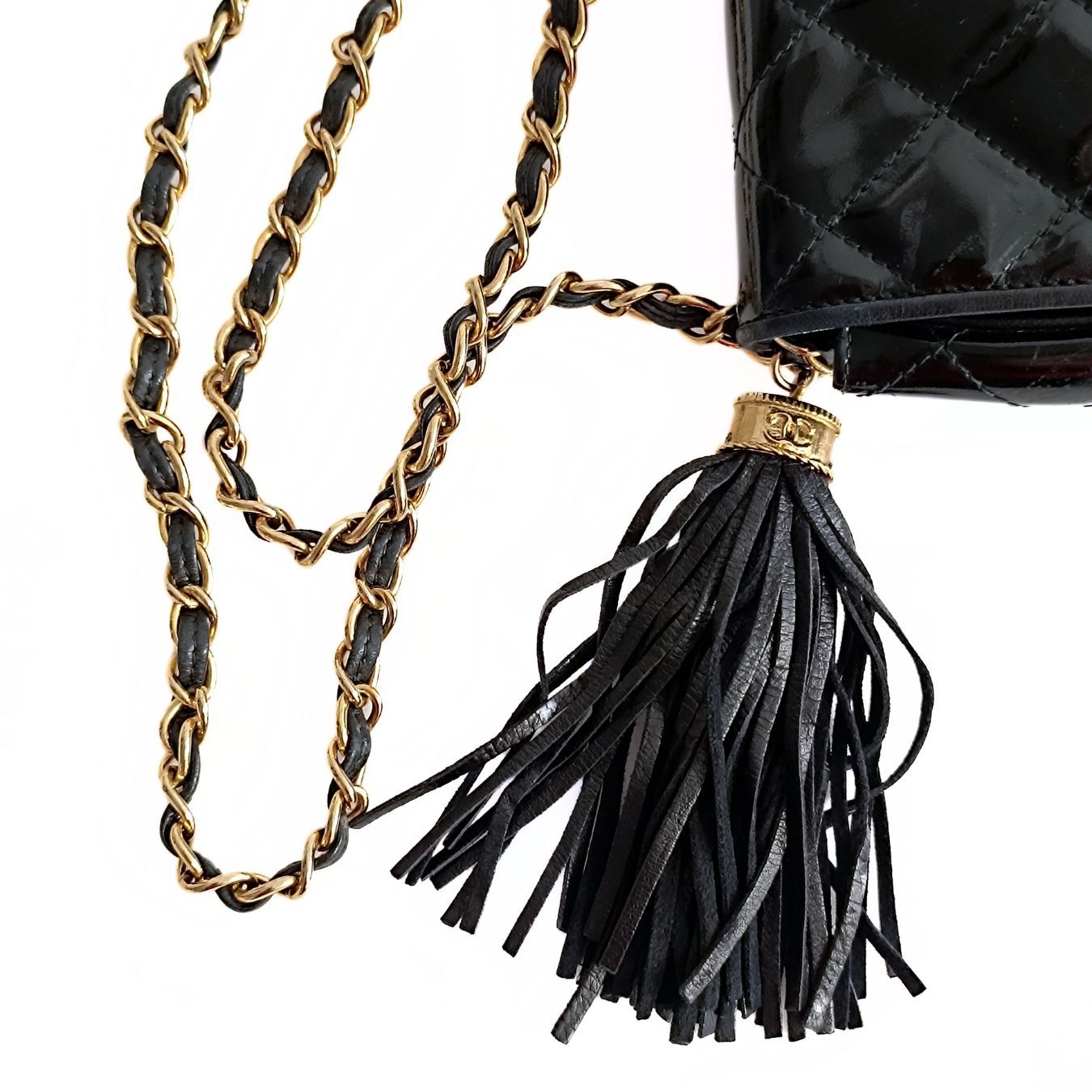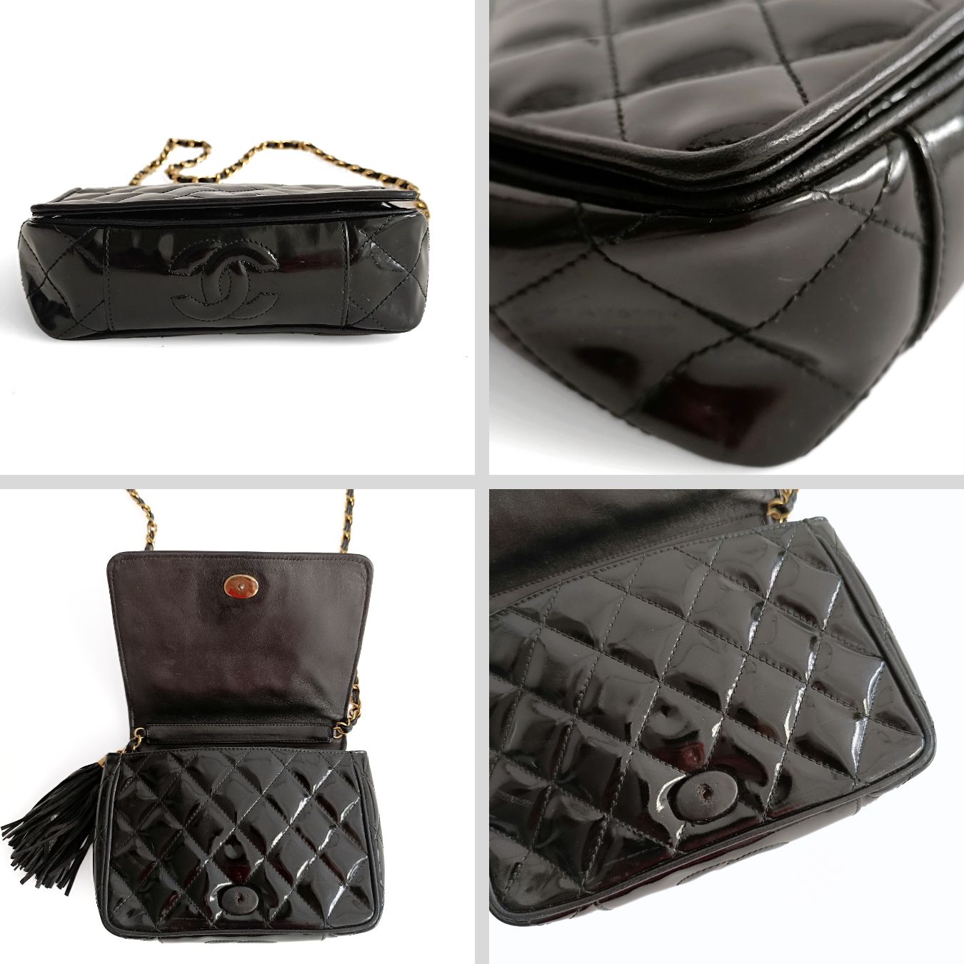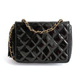 Chanel vintage Mini Matelasse shoulder bag in black patent leather.