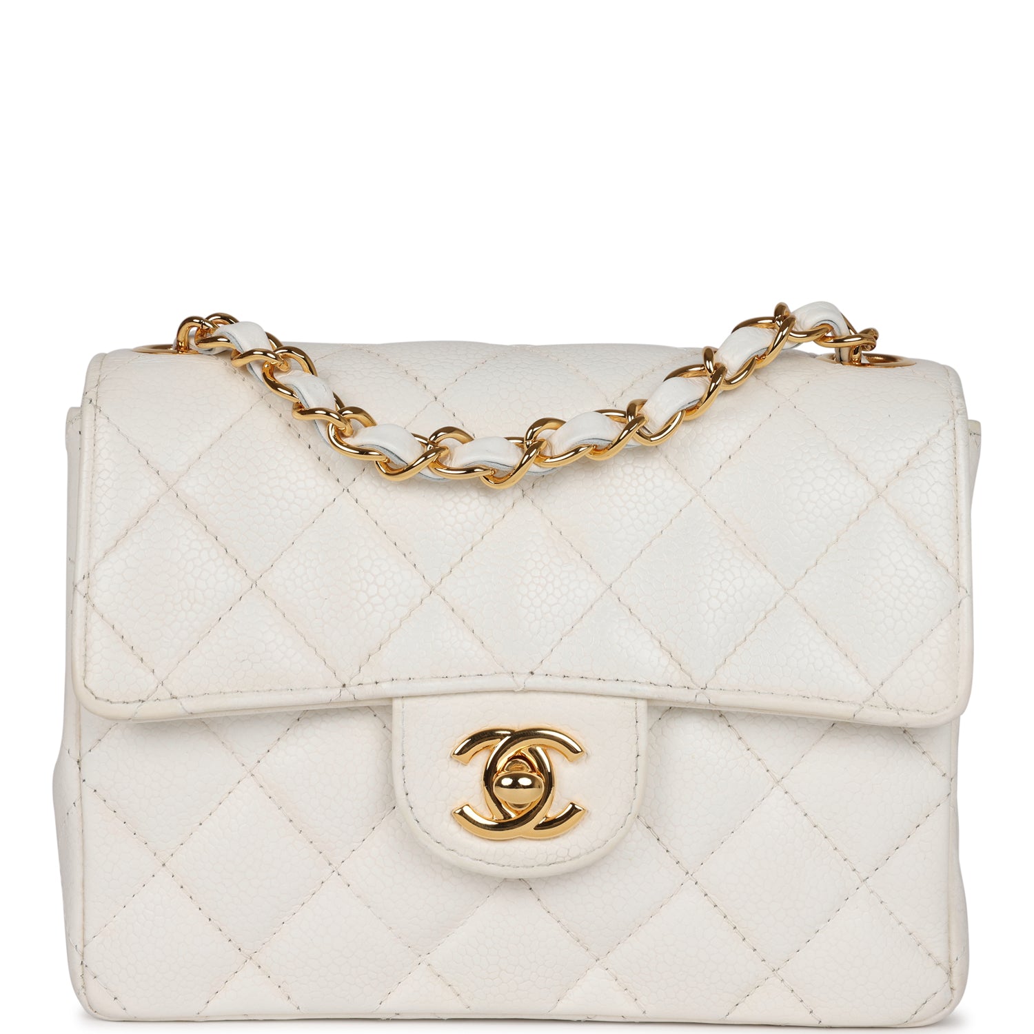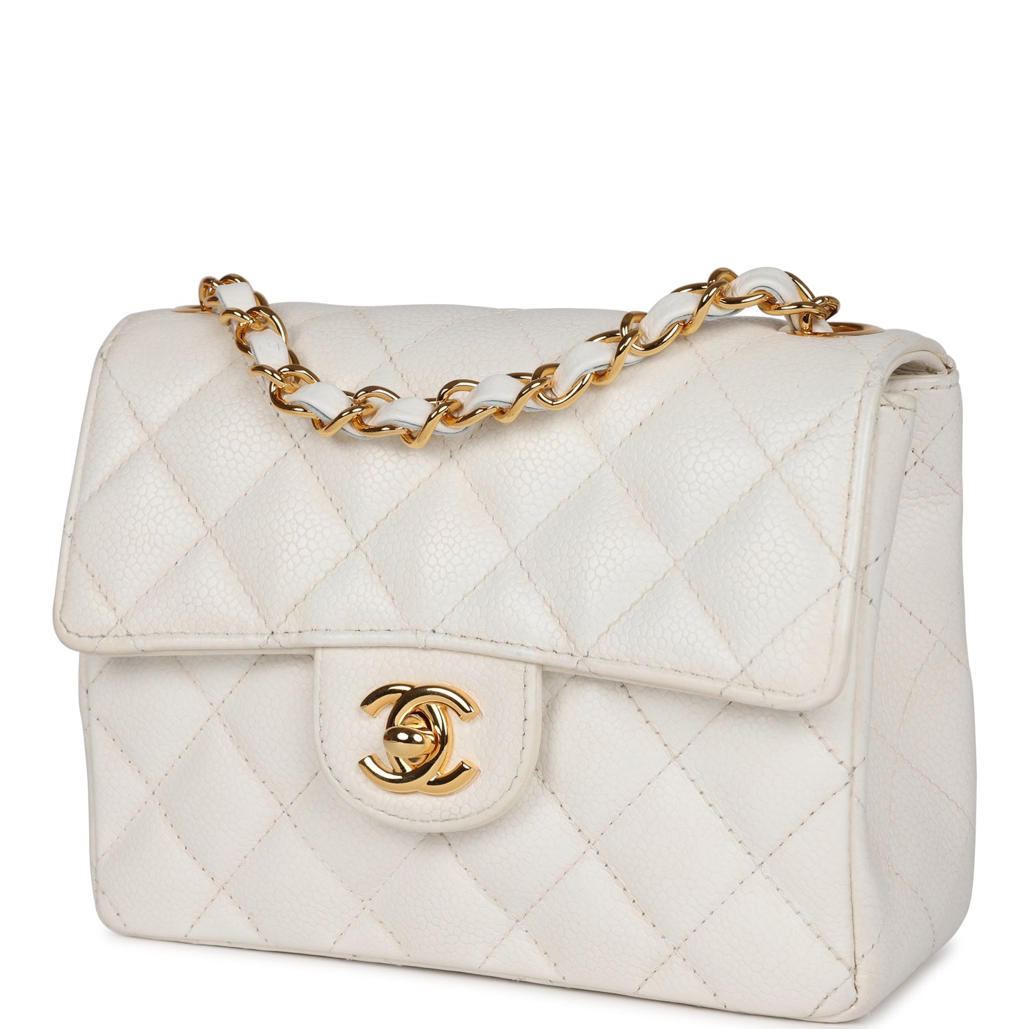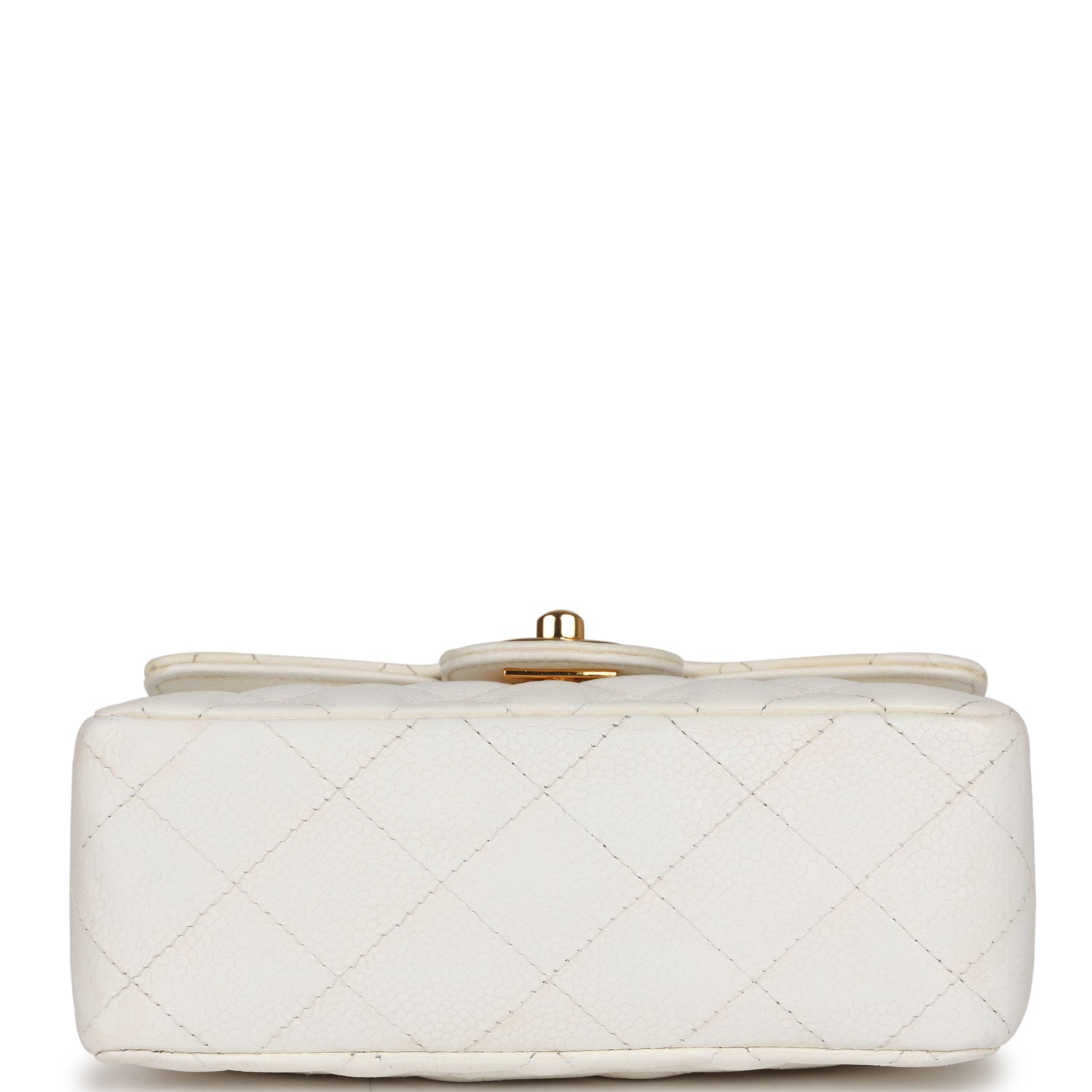 Vintage Chanel Mini Square Flap White Caviar Gold Hardware