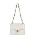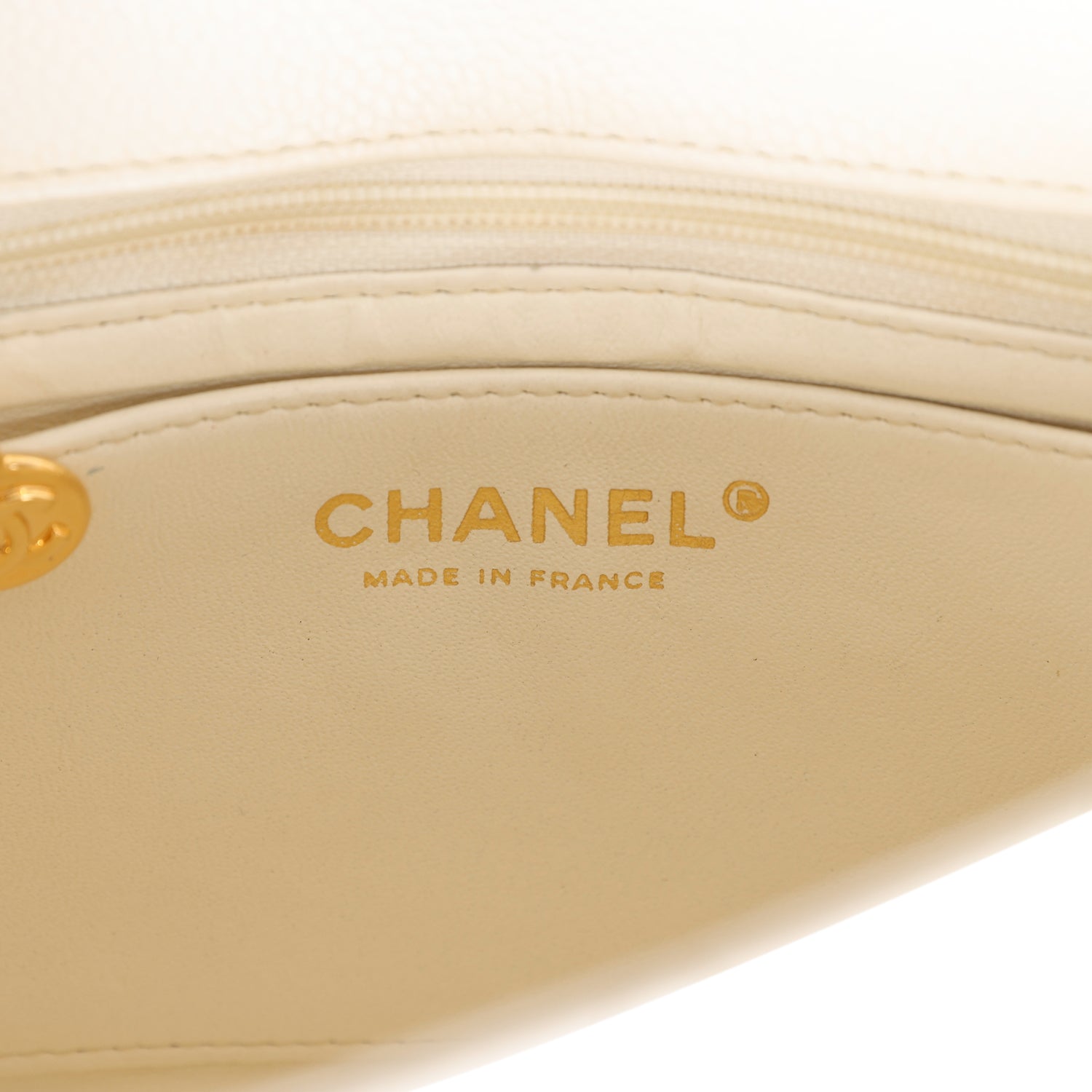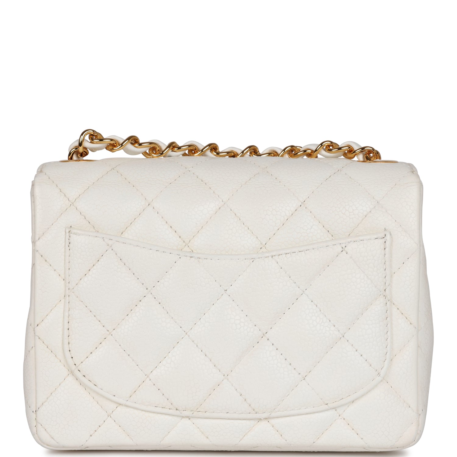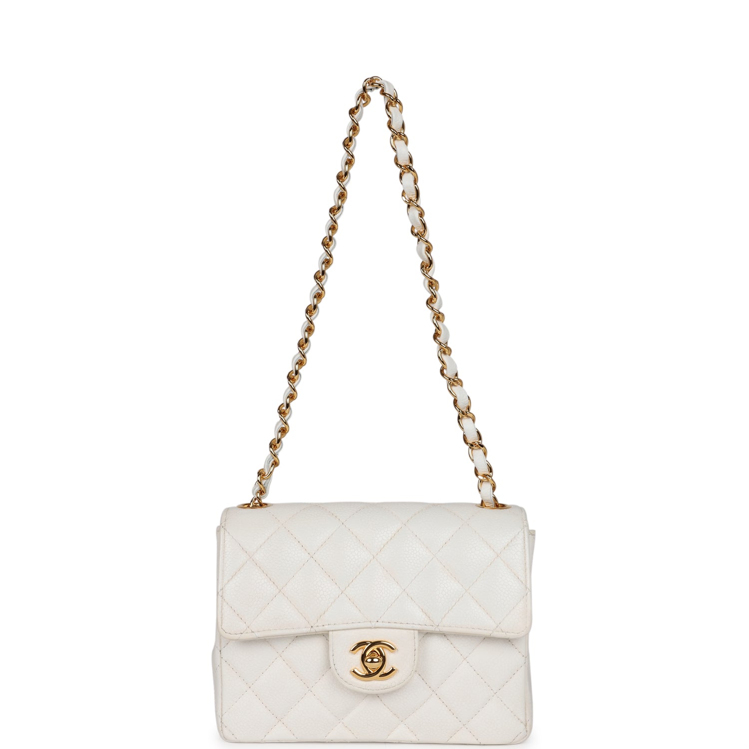 Vintage Chanel Mini Square Flap White Caviar Gold Hardware