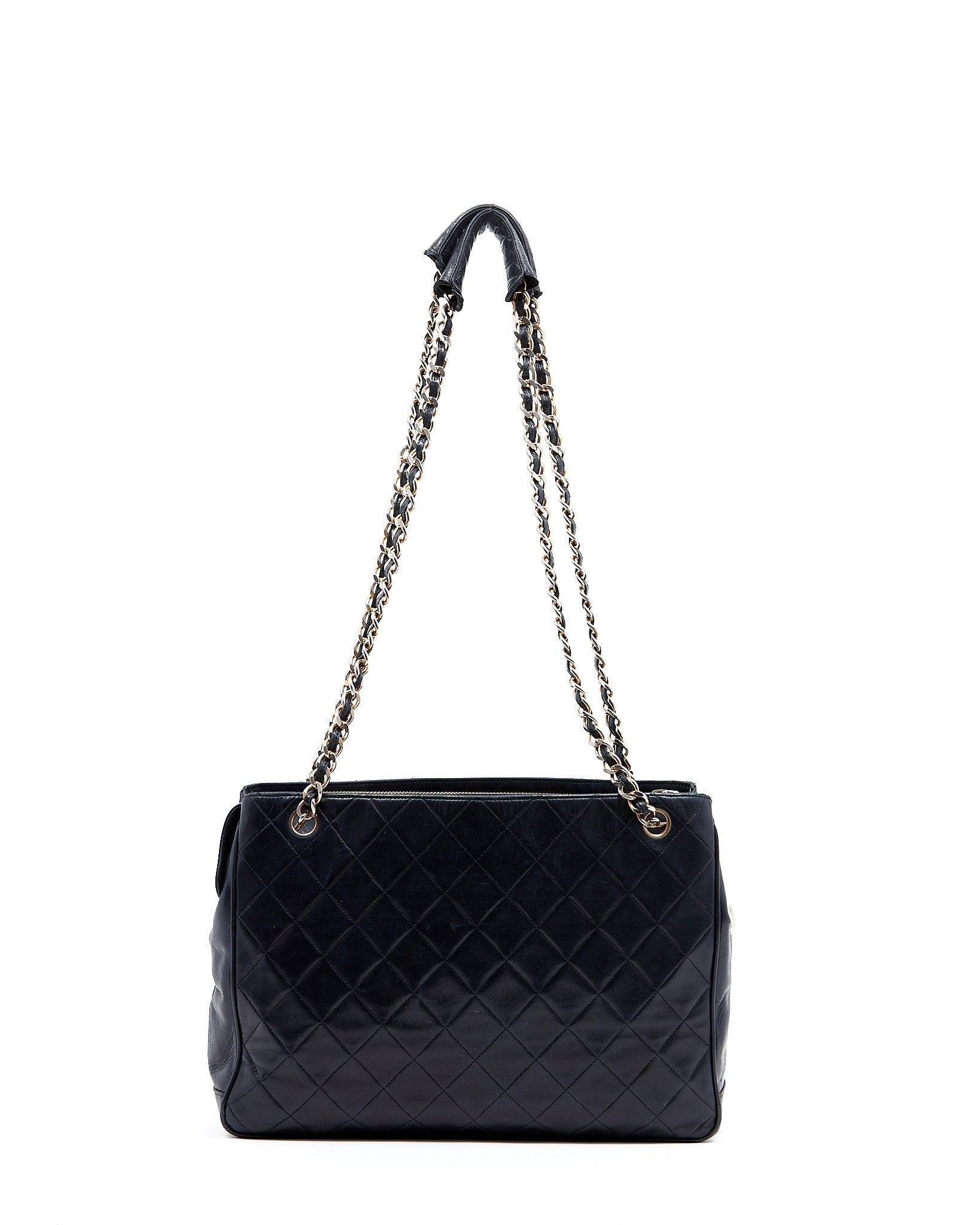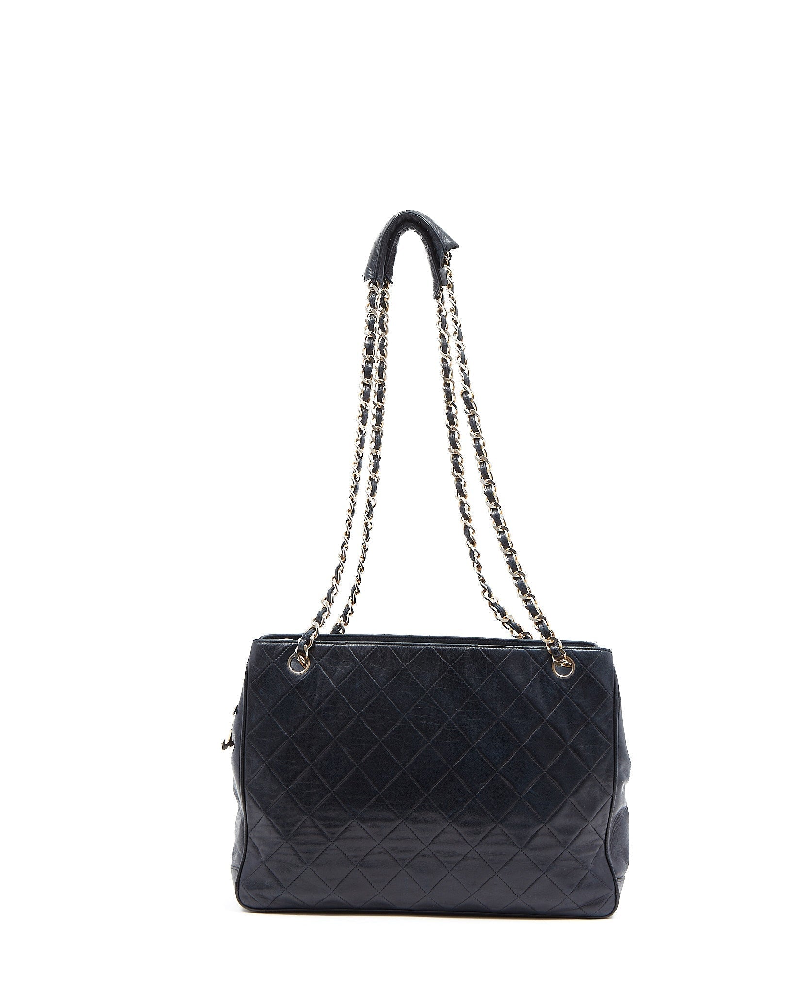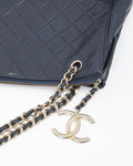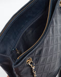 Chanel Vintage Navy Lambskin CC Chain Logo Tote Bag