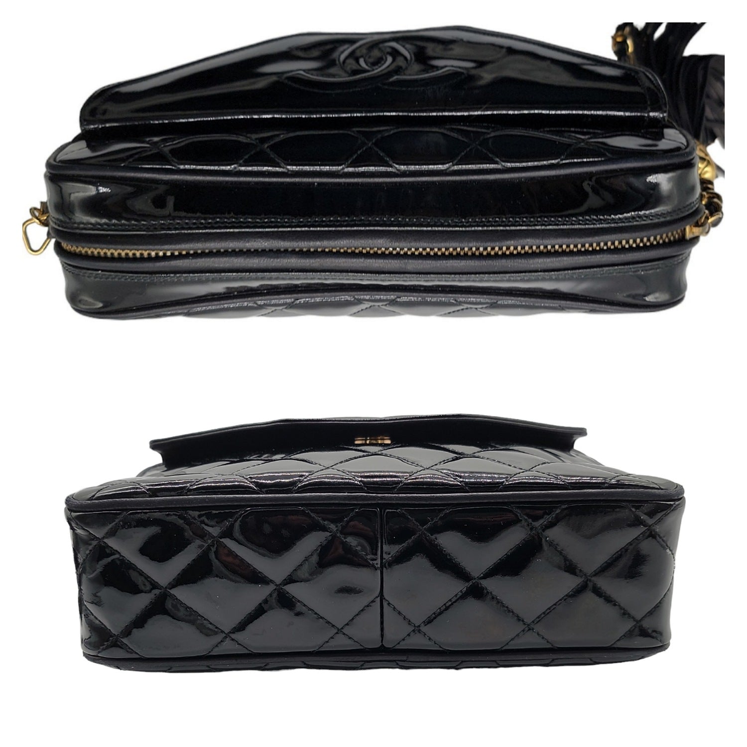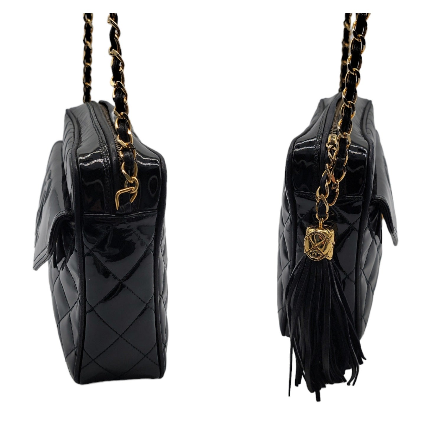 Chanel 90s Quilted Patent Timeless Camera Tassel Crossbody