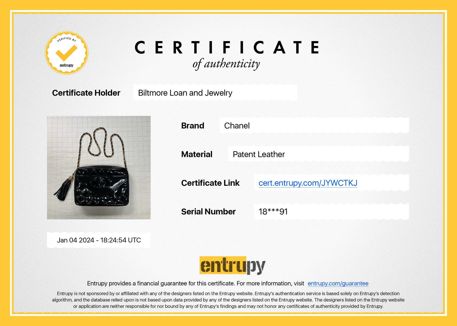 Includes: Complimentary dust bag, Chanel COA card & Entrupy Certificate