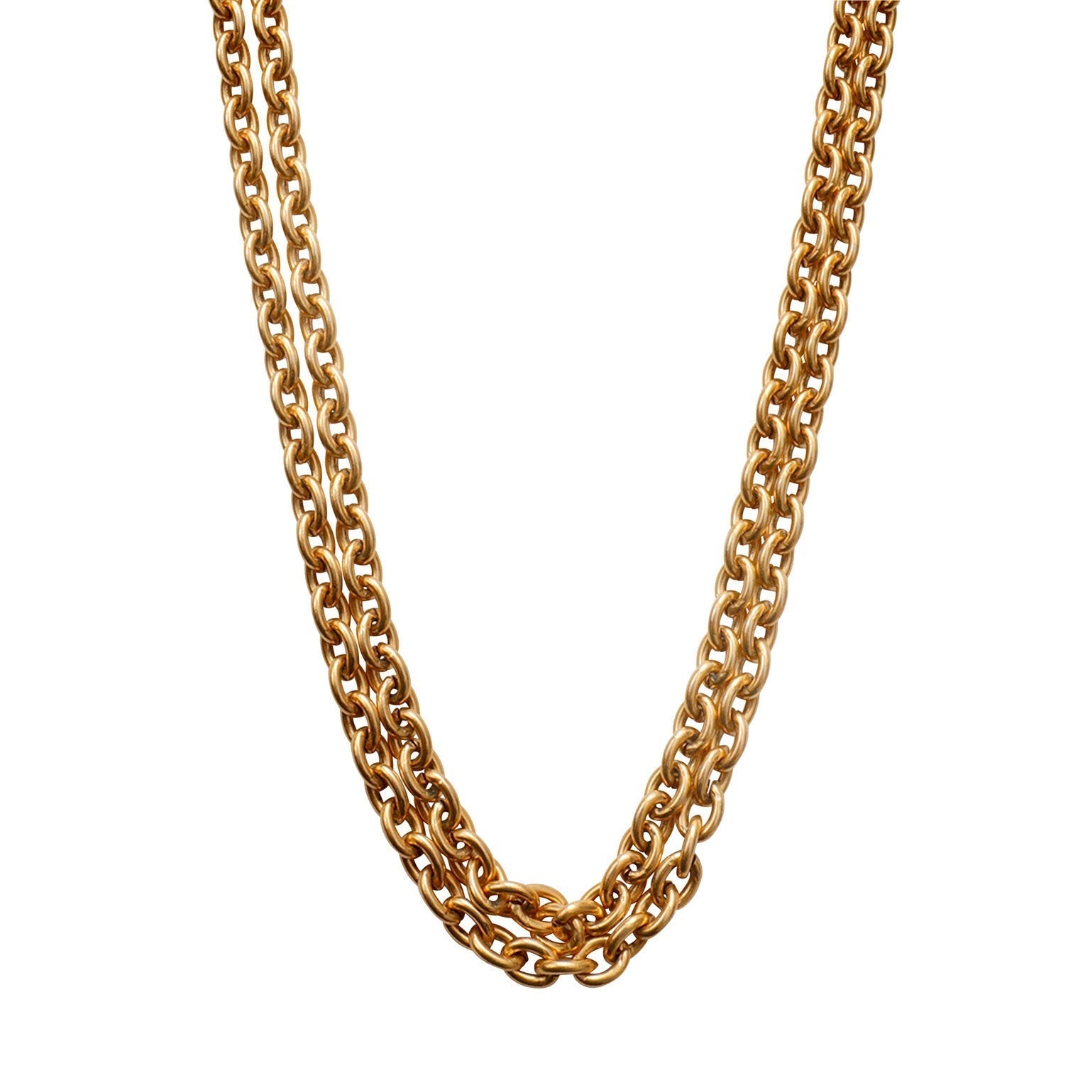 This Chanel Double Gold Link Necklace is in excellent vintage condition. Gold plated linked double chain. Pouch or box included.