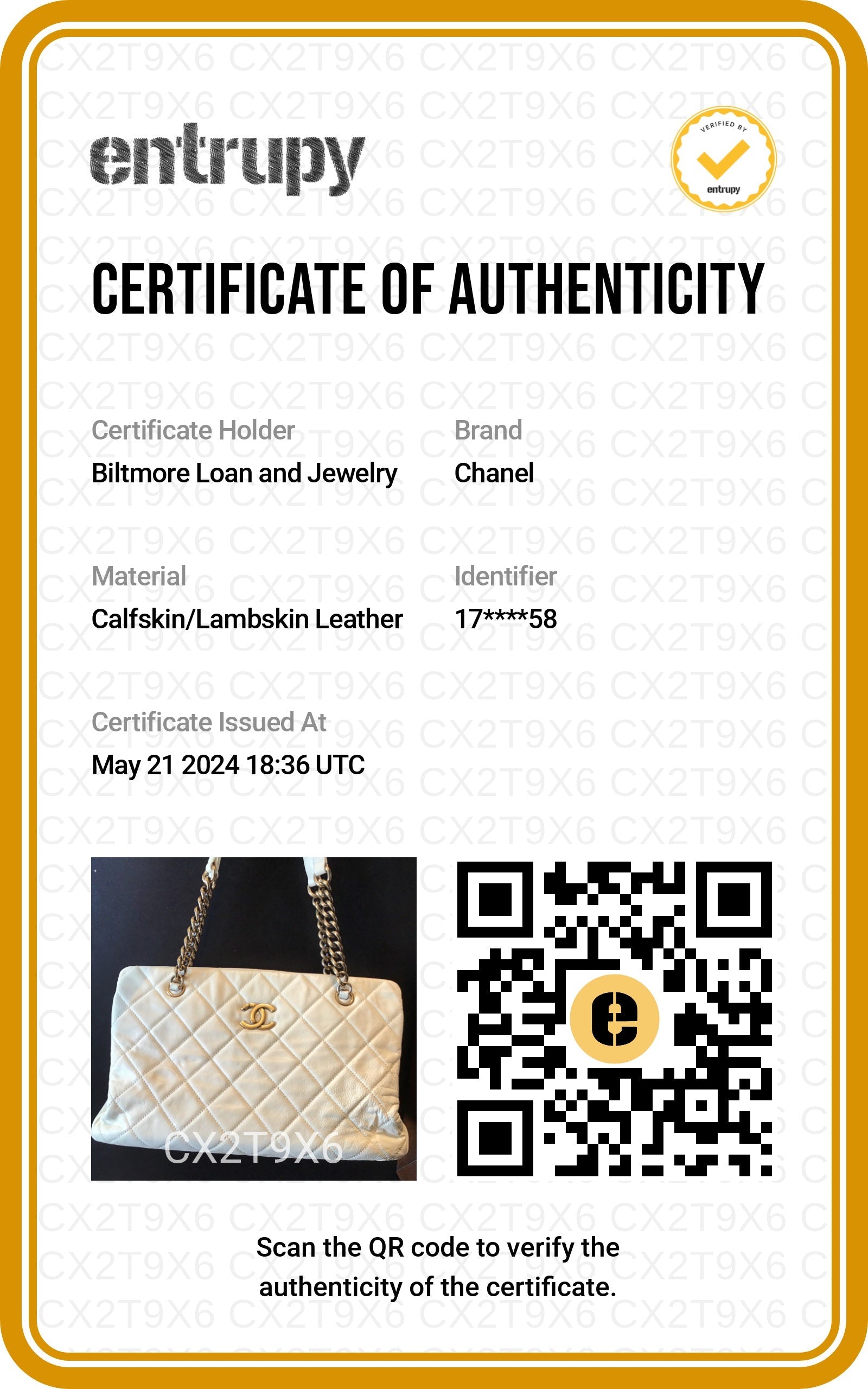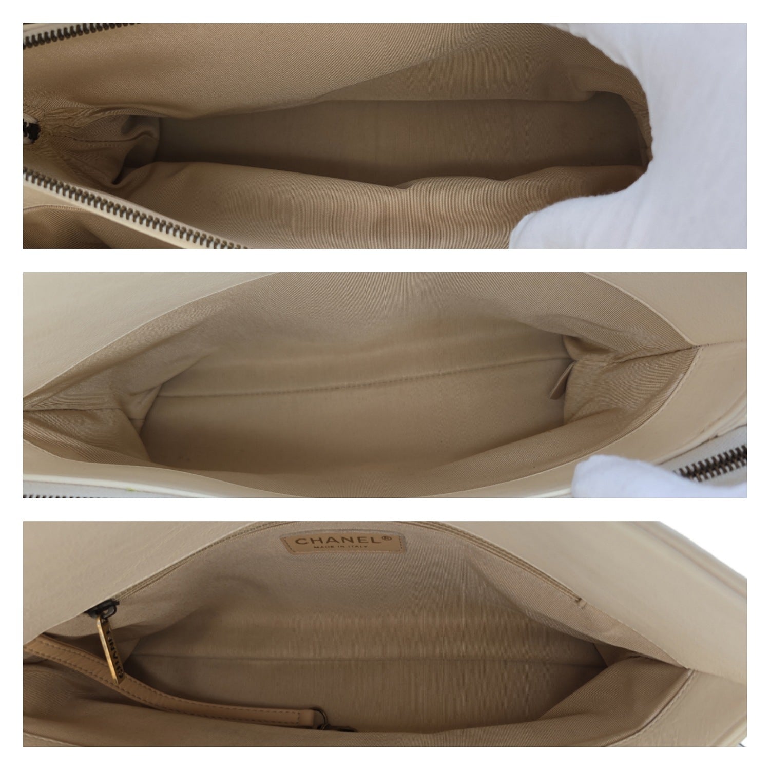 Beautifully made in Italy, this Chanel CC Tote is a luxurious must-have. It boasts supple calfskin leather, chain straps with leather pads, and aged gold-tone hardware. The spacious interior has two compartments and a zip compartment for effortless organization and style.
