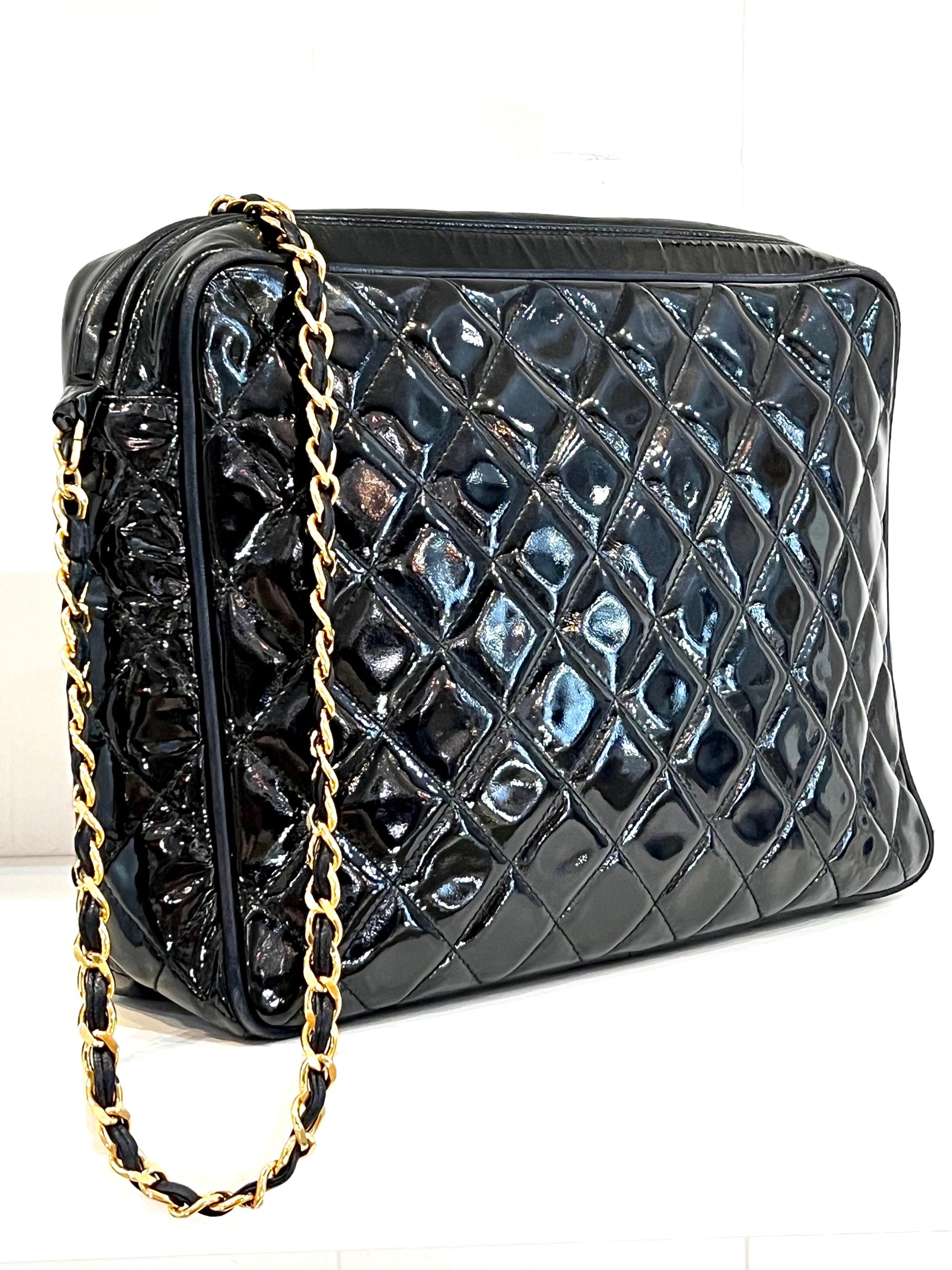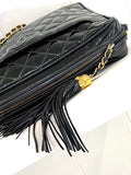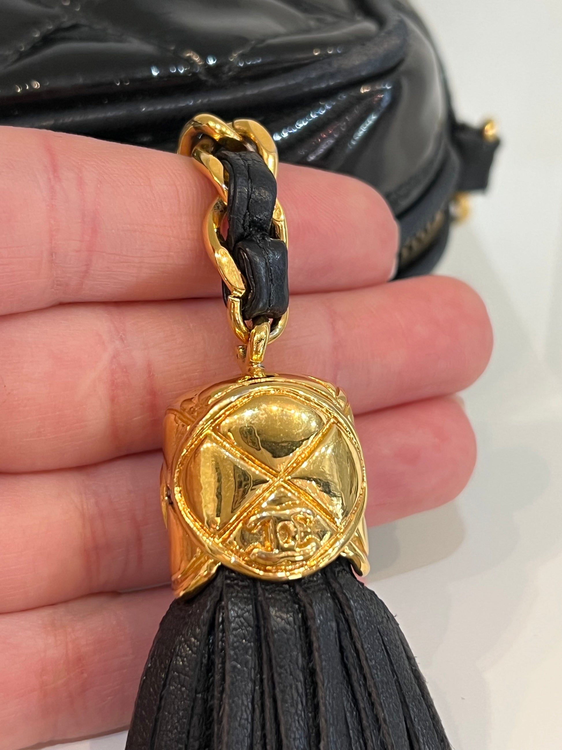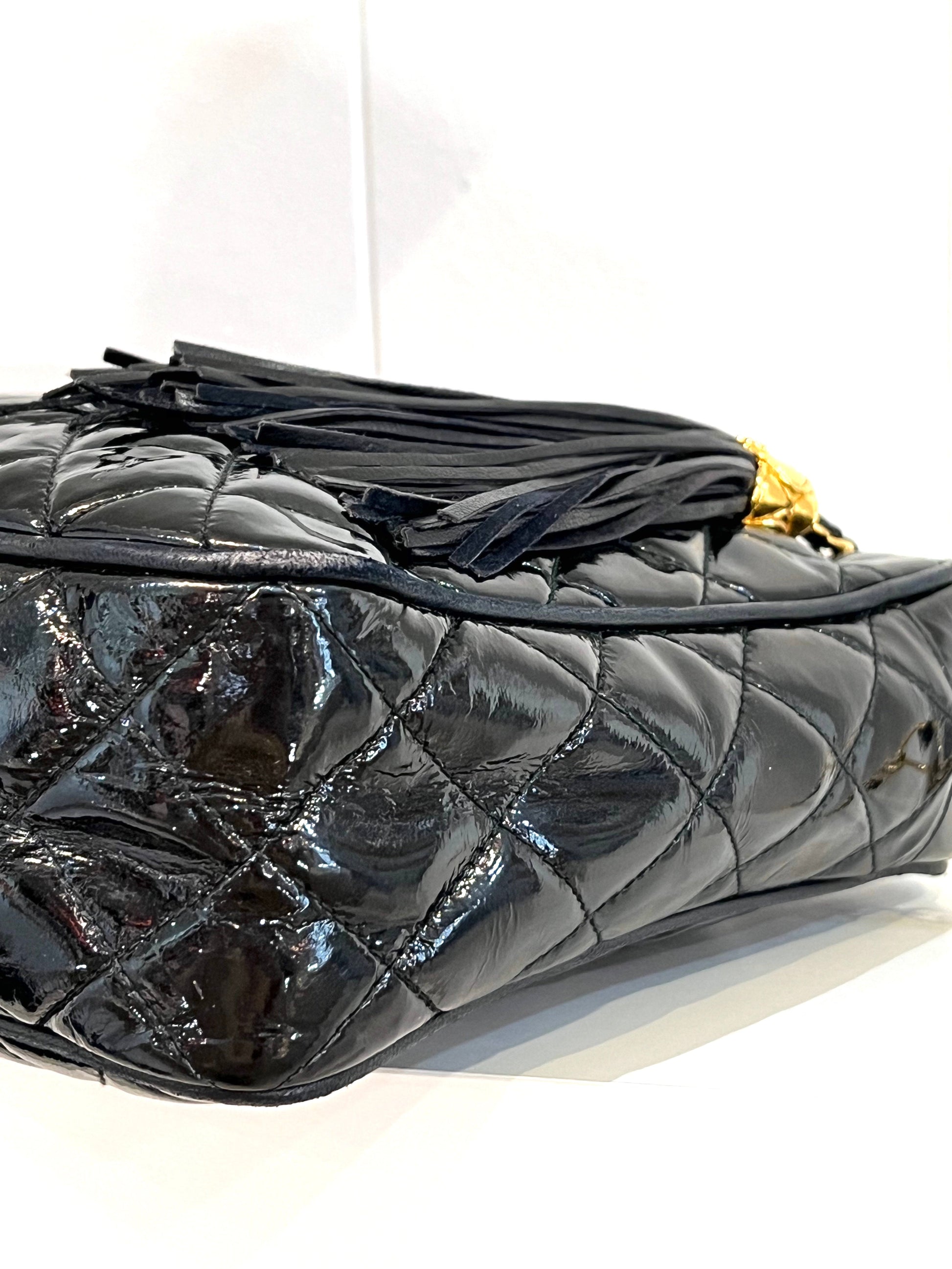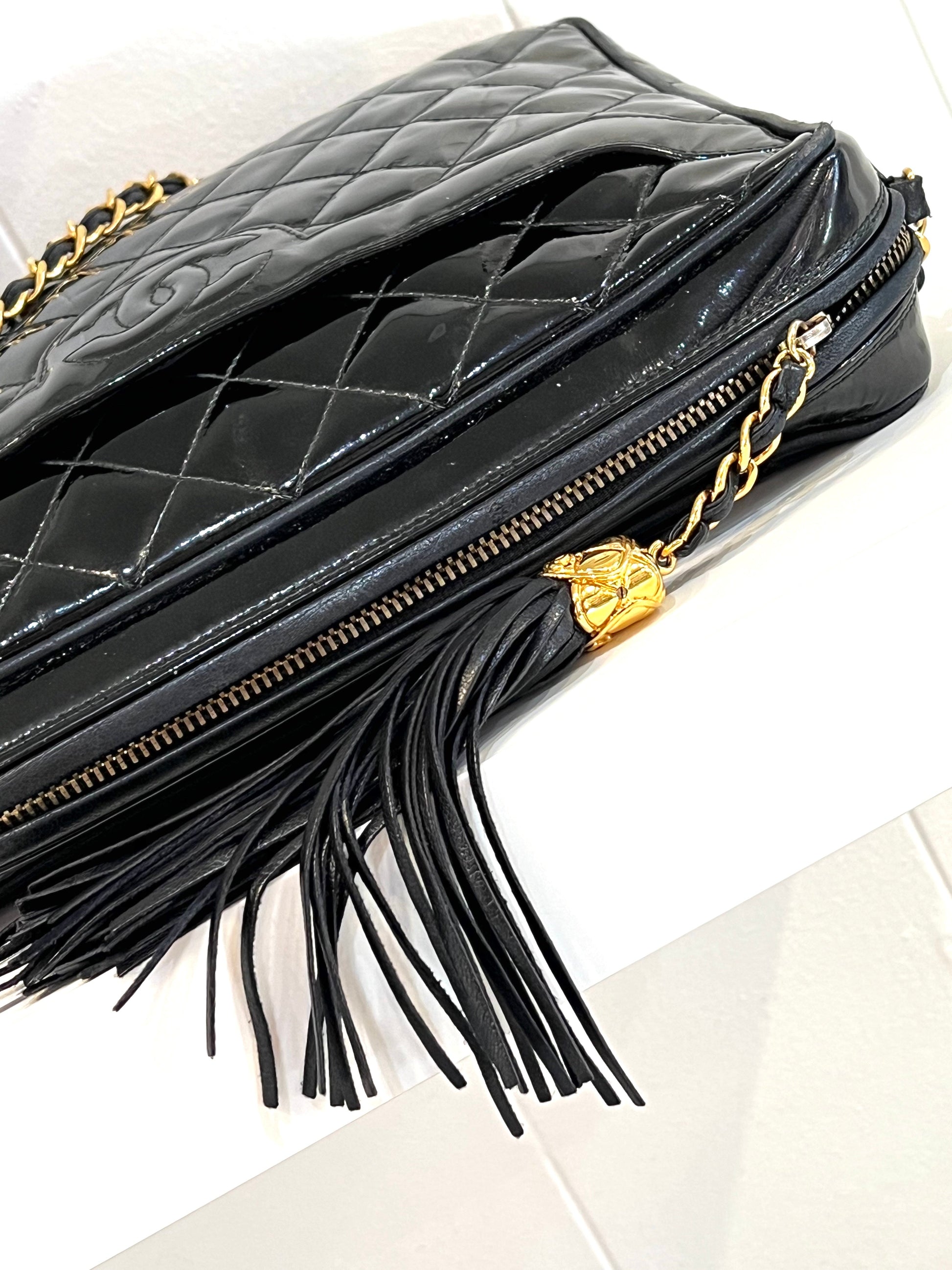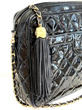 CHANEL VINTAGE QUILTED PATENT CAMERA TASSEL MEDIUM BAG