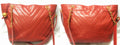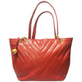 Chanel Vintage red caviarskin v stitch, chevron style chain shoulder Tote Bag with golden CC ball charm