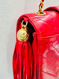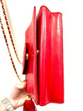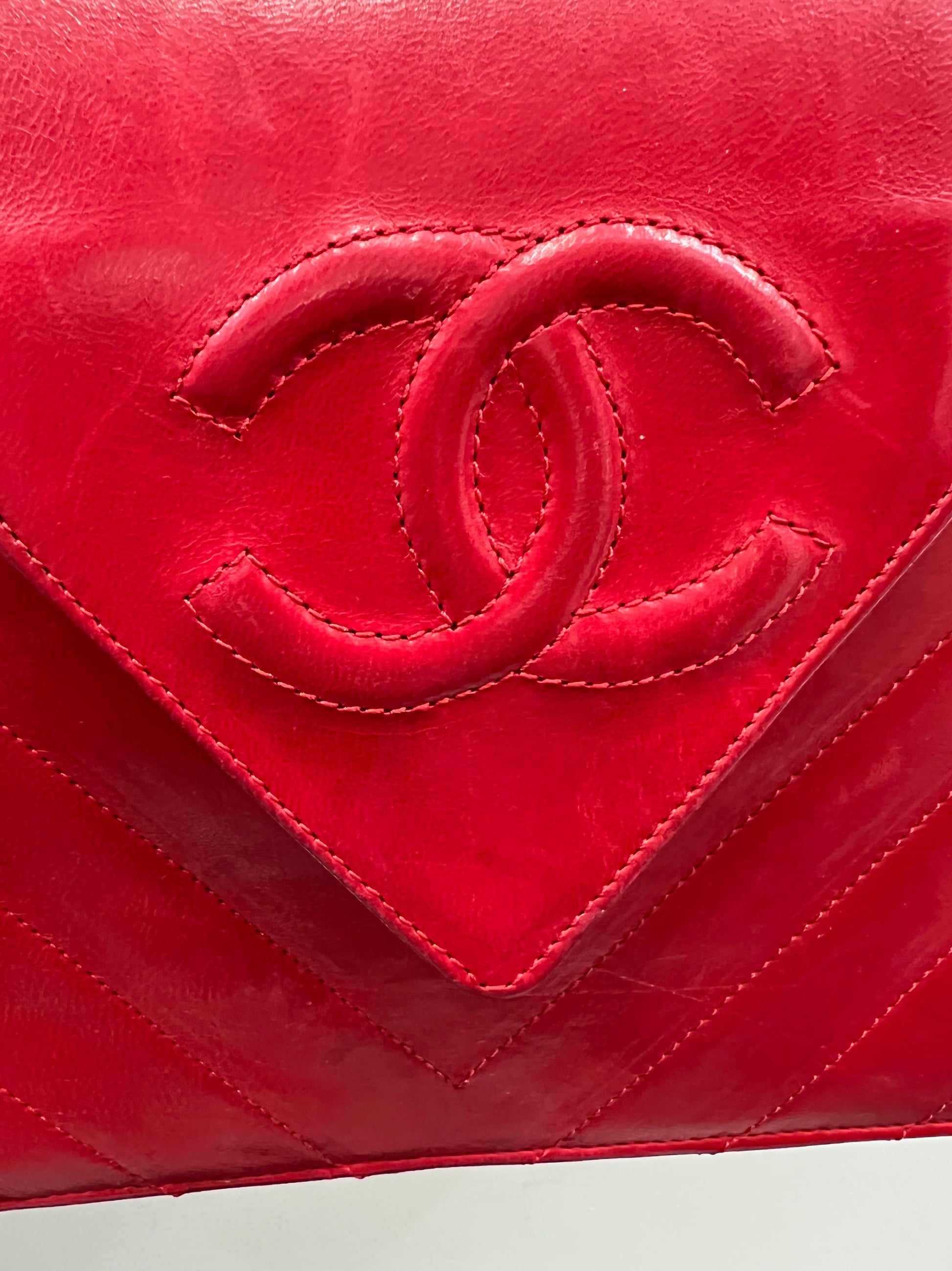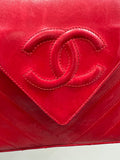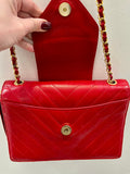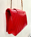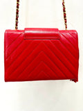 CHANEL VINTAGE RED CHEVRON QUILTED LAMBSKIN CHAIN BAG