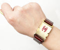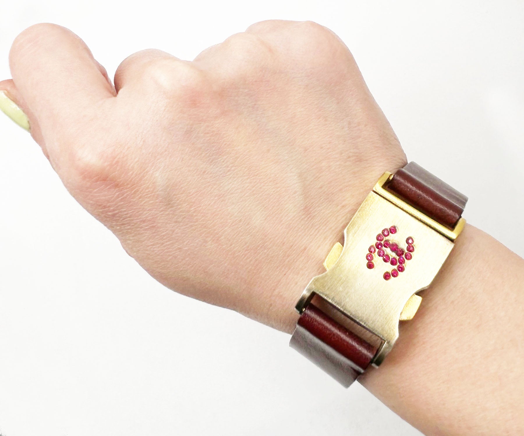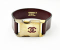 CHANEL Vintage Red Crystal Gold Buckle Leather Belt Bracelet