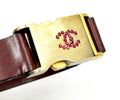 Chanel Vintage Red Crystal Gold Buckle Leather Belt Bracelet.