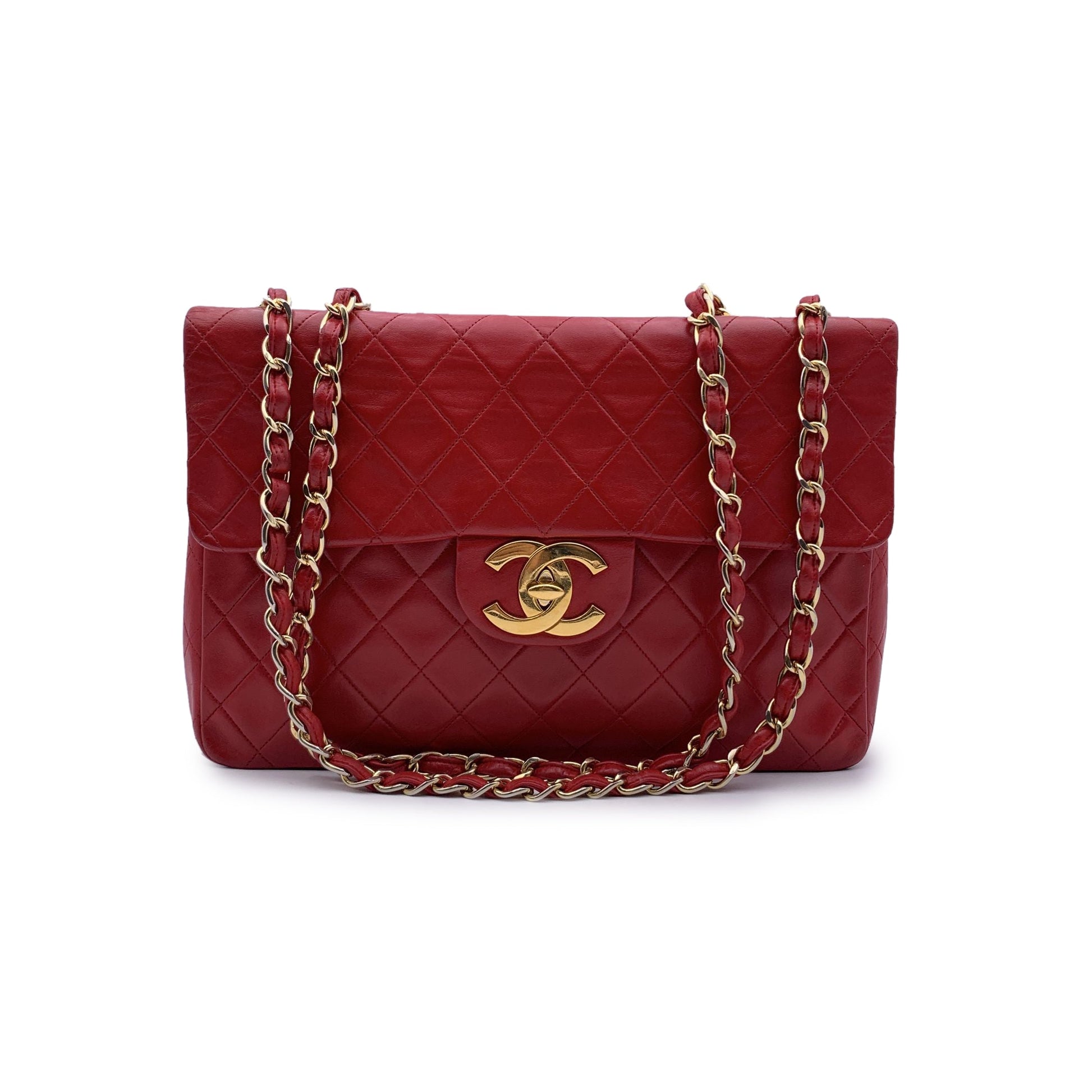 CHANEL Vintage Red Quilted Jumbo Classic Flap 2.55 Shoulder Bag