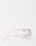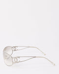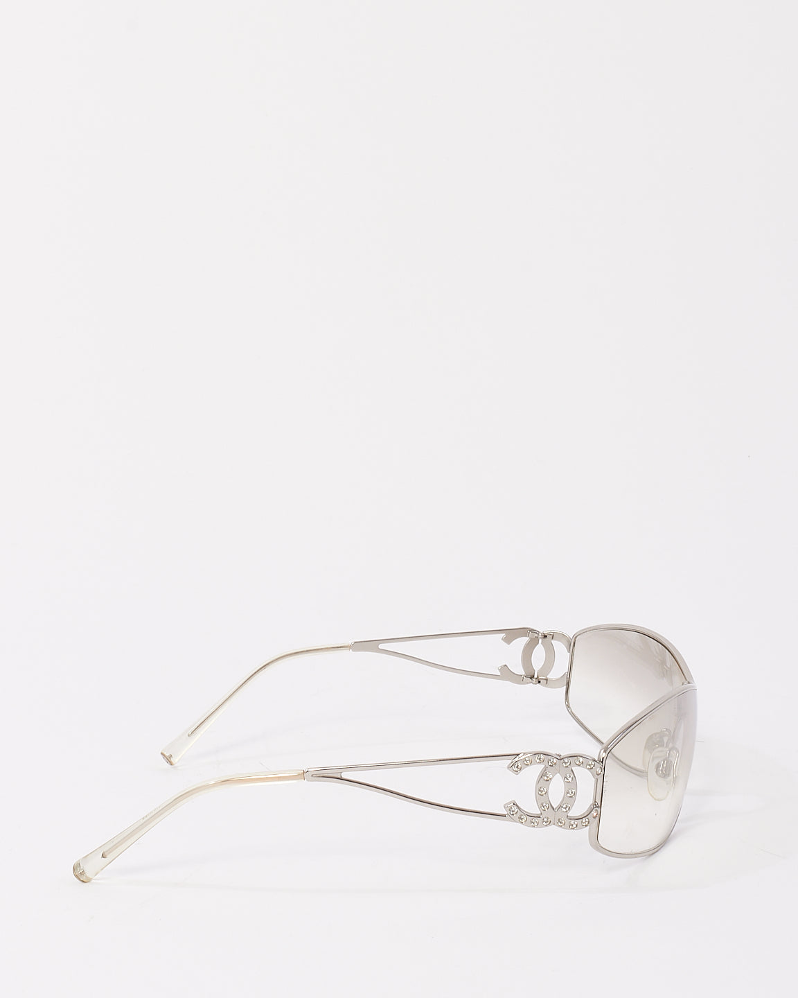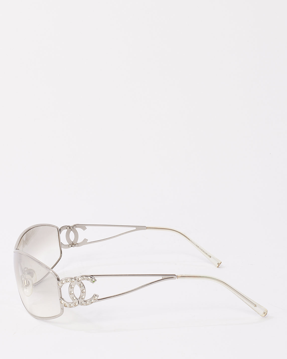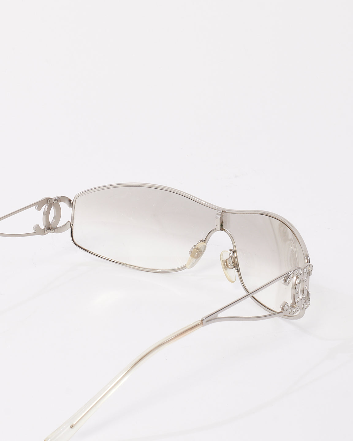 Chanel Vintage Silver Metal With CC Rhinestone Logo Clear Lense Sunglasses
