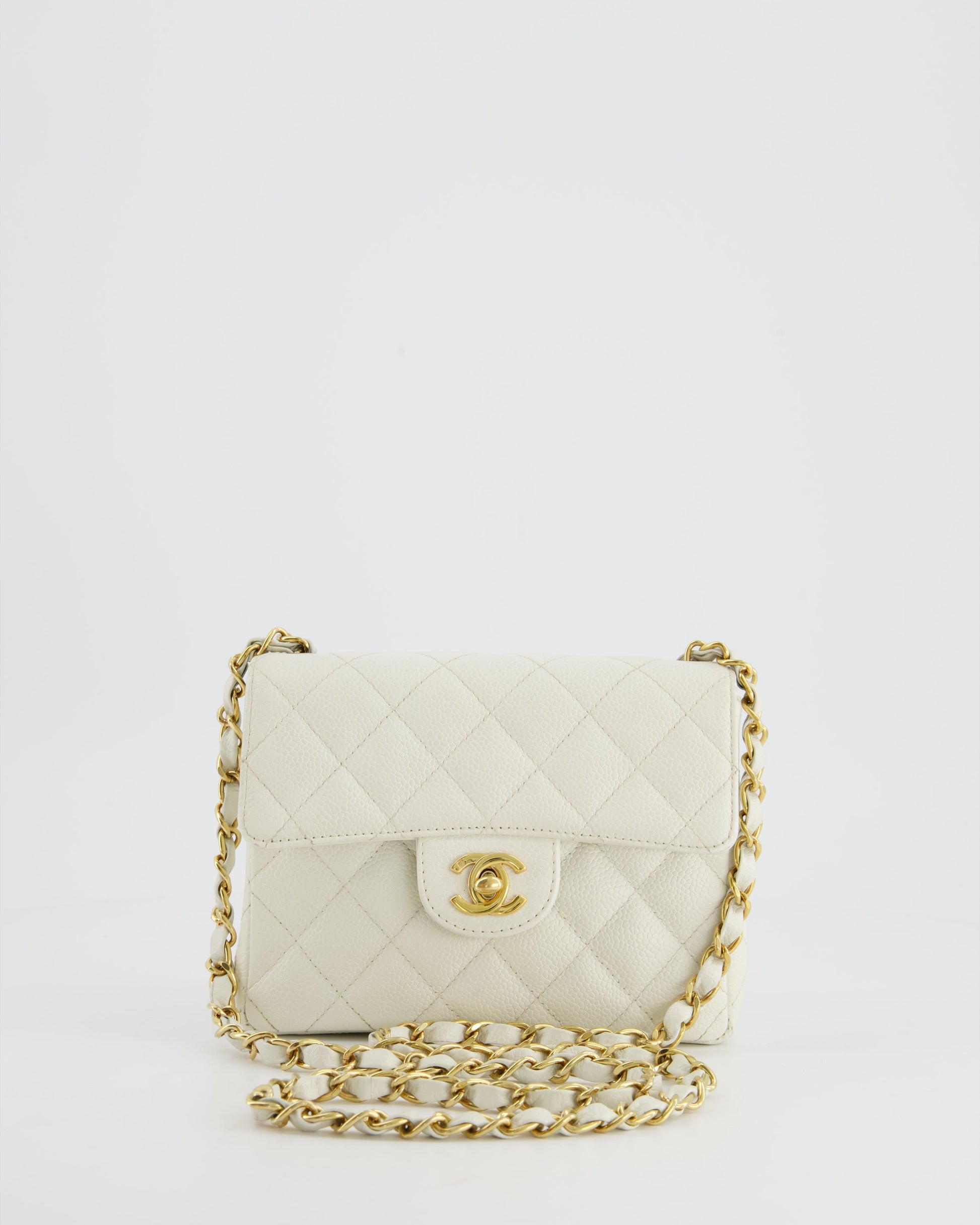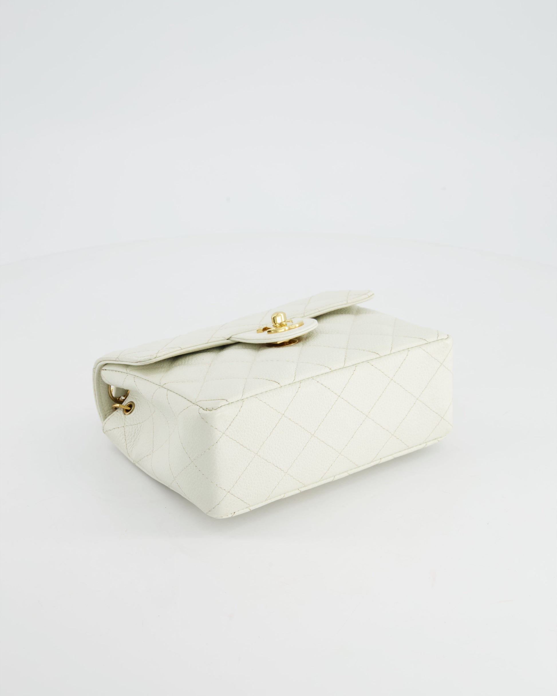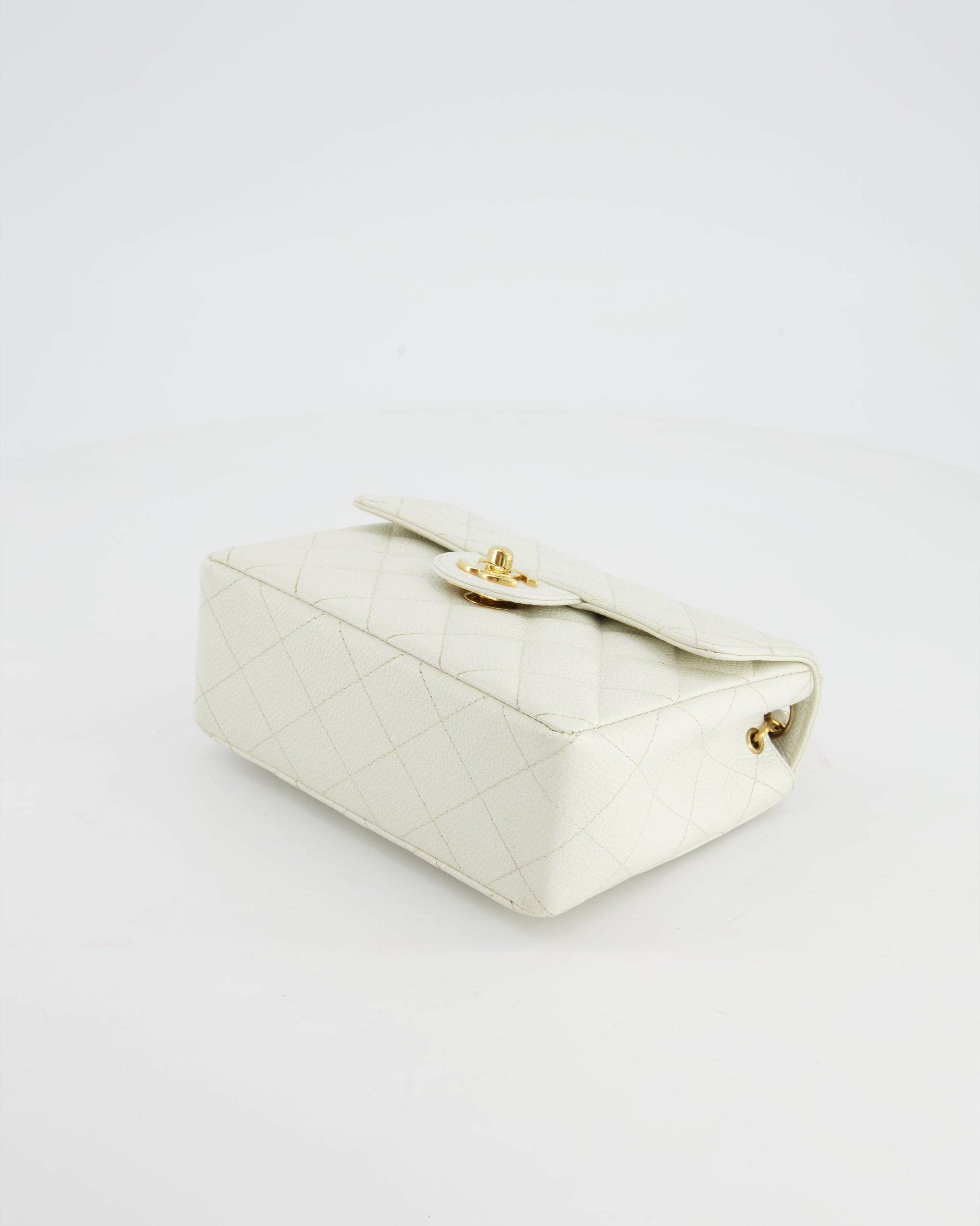 Chanel Vintage White Caviar Mini Square Flap Bag with 24K Gold Hardware
