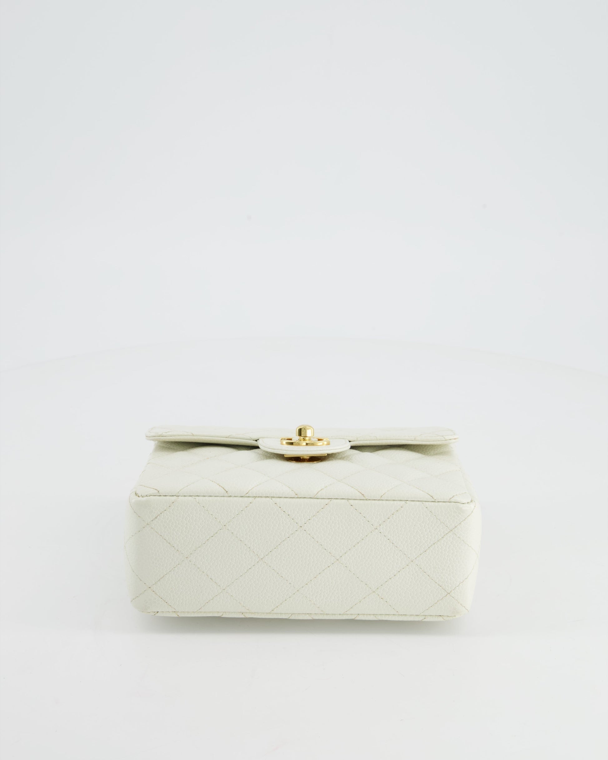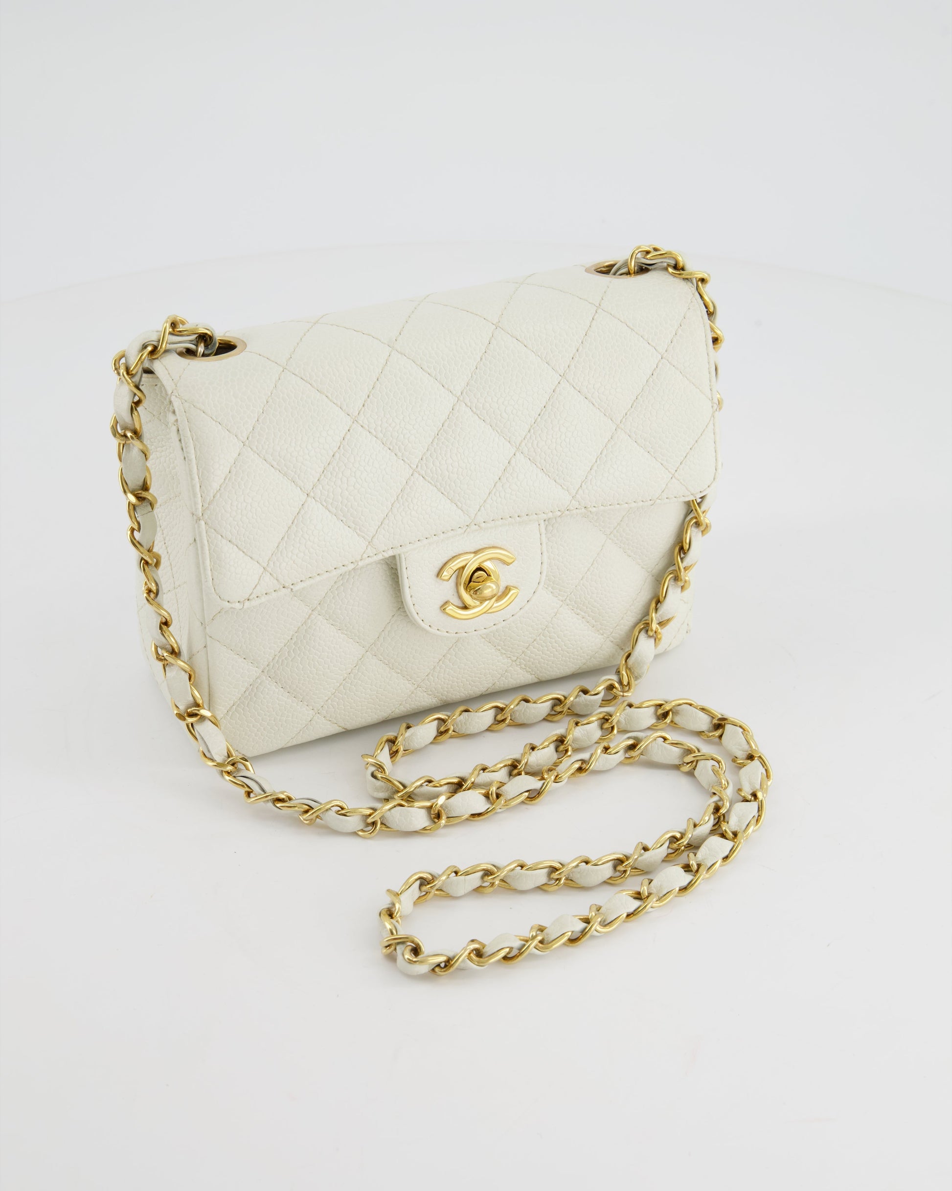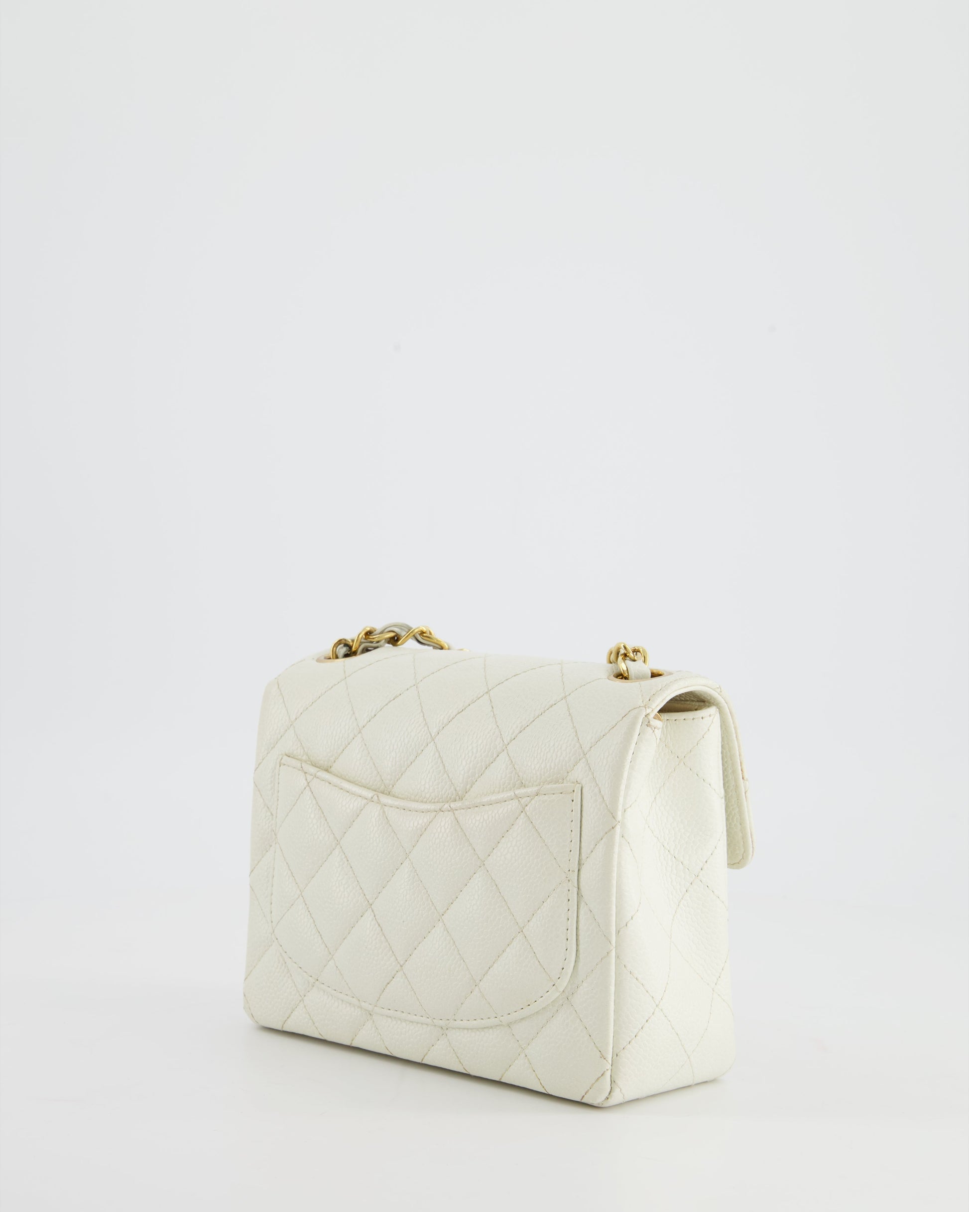 Chanel Vintage White Caviar Mini Square Flap Bag with 24K Gold Hardware