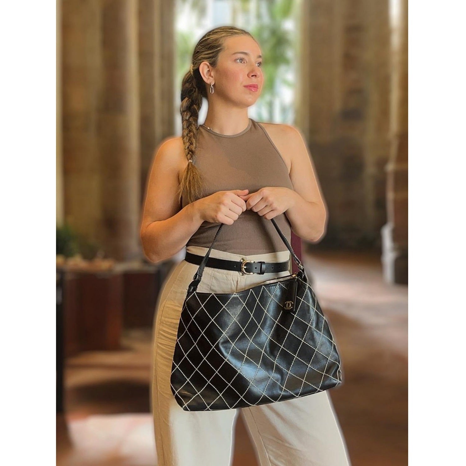 Chanel Vintage Wild Stitch Surpique Hobo Shoulder Bag