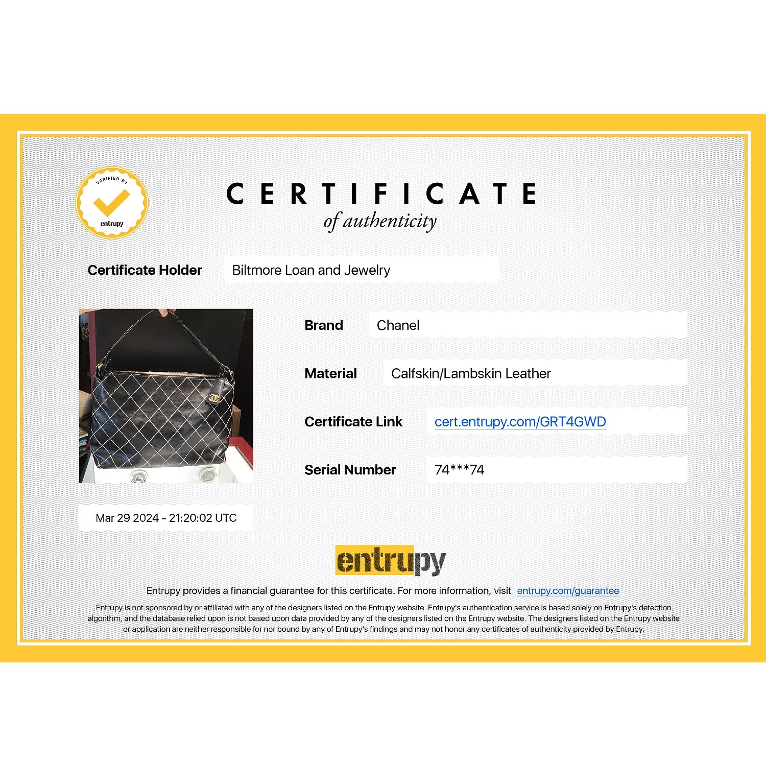 Includes: Entrupy Certificate