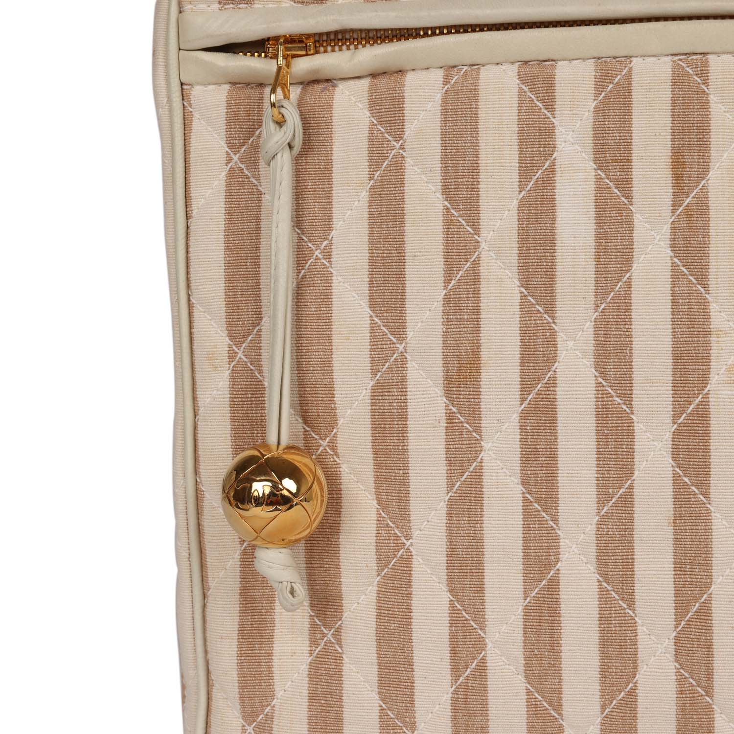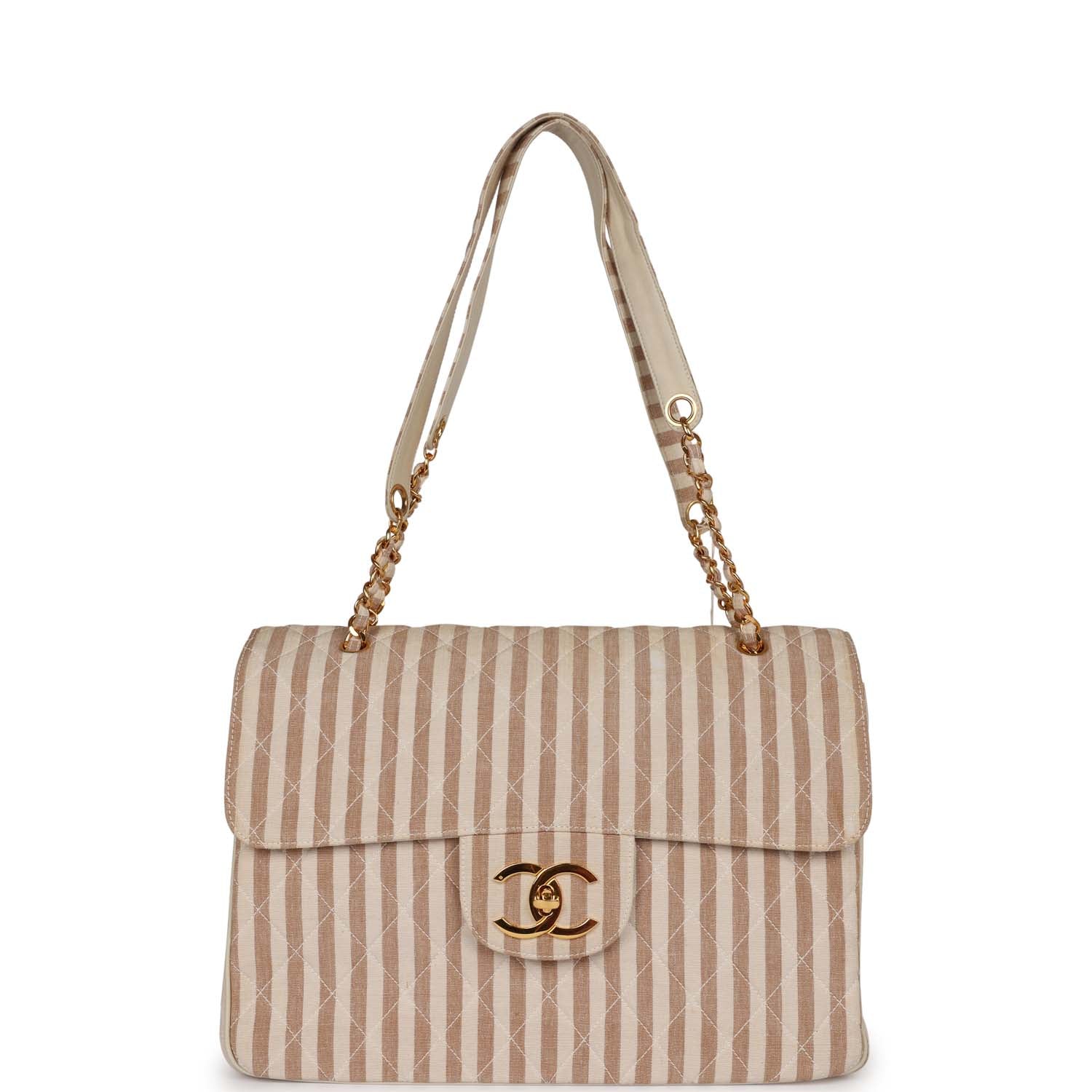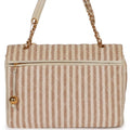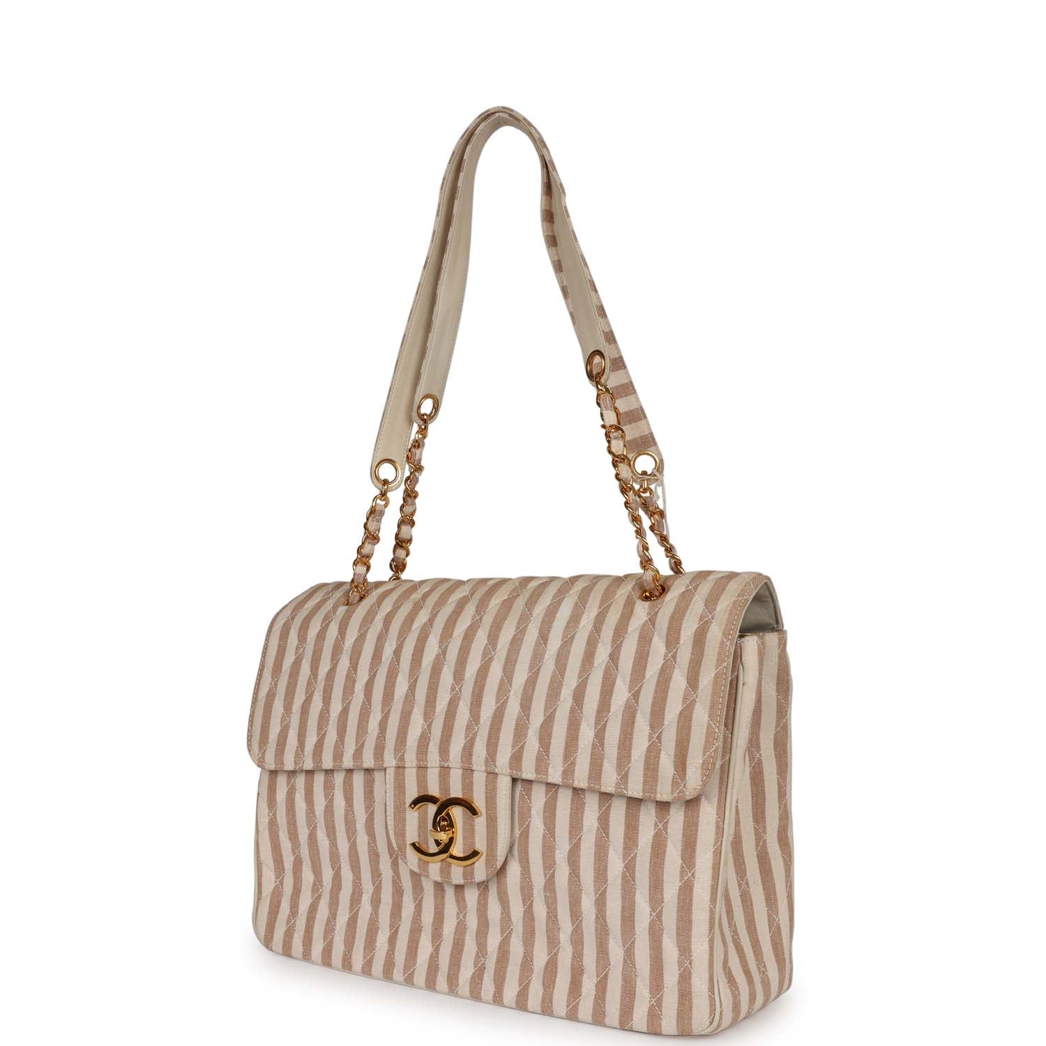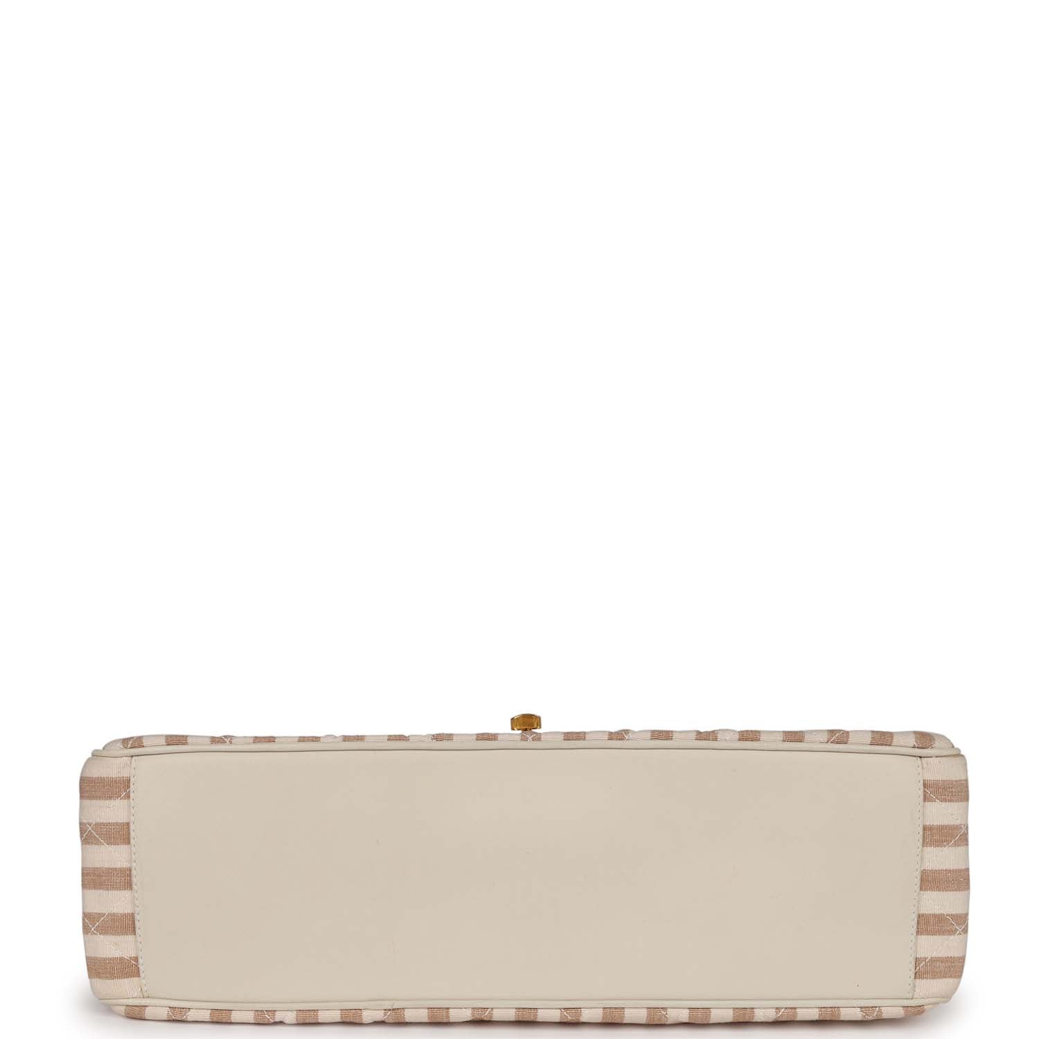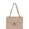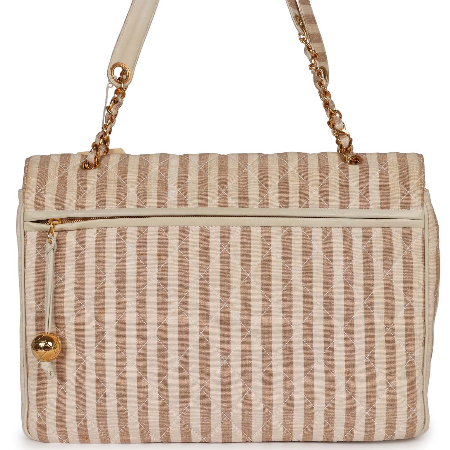 Vintage Chanel XXL Travel Flap Bag Striped Linen Gold Hardware
