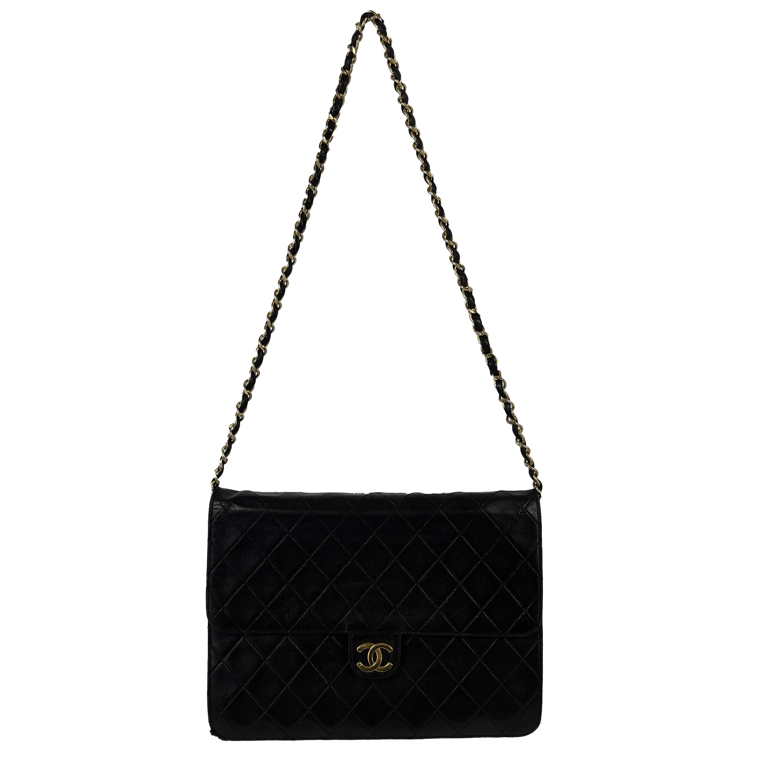 CHANEL - VTG CC Logo Old Medium Black Matelasse Quilted Shoulder Bag