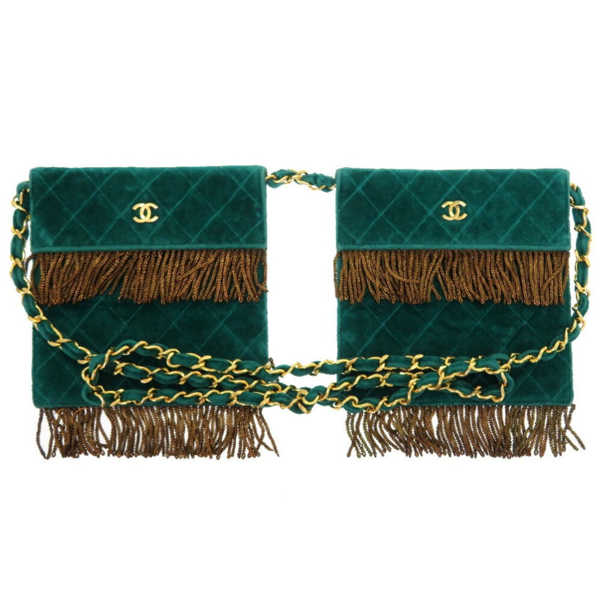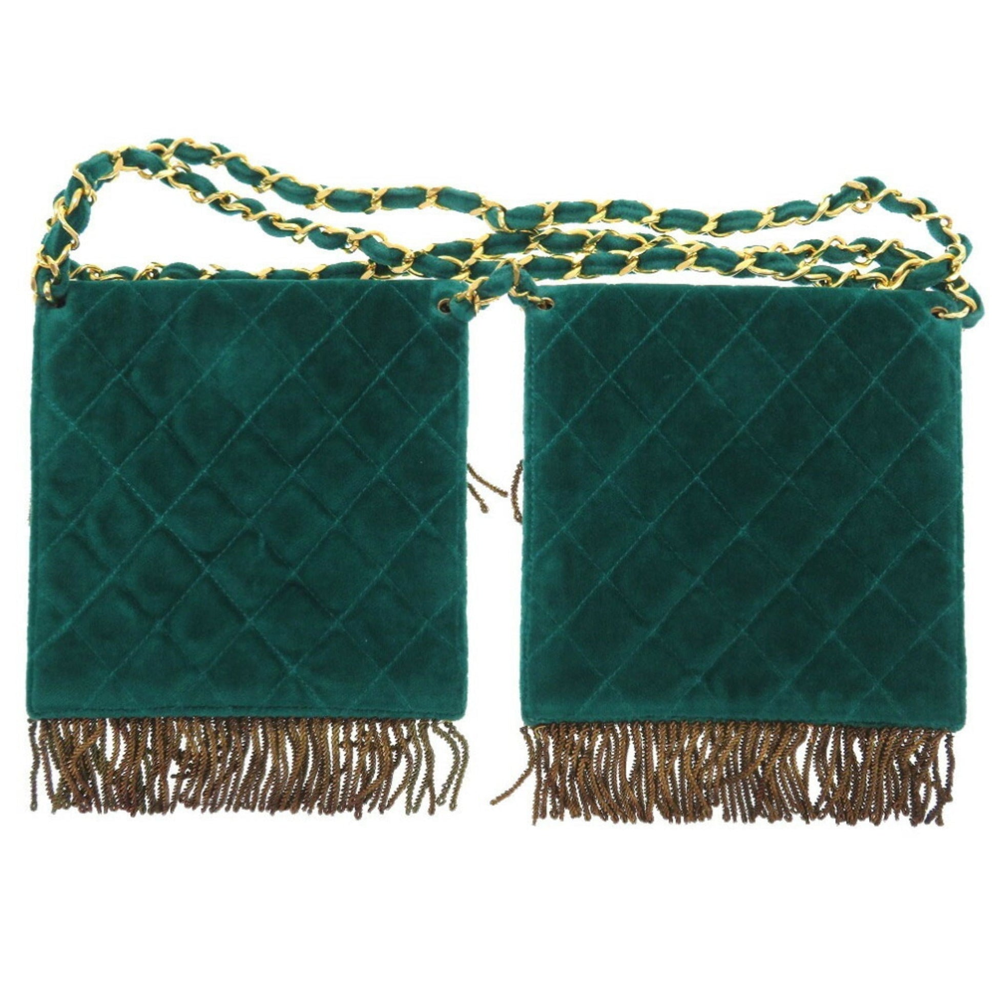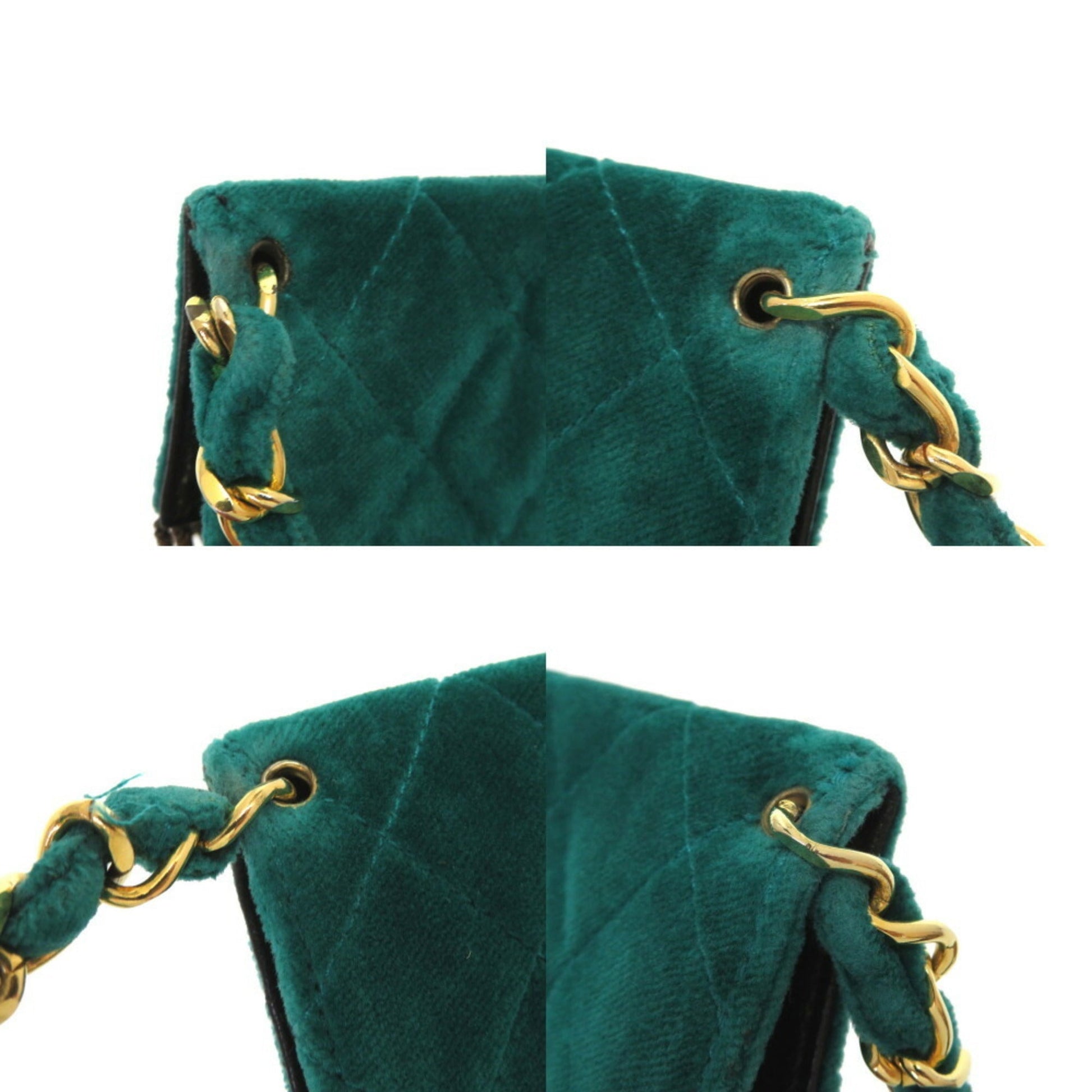 Chanel W Bag Velor Green Gold Chain Shoulder