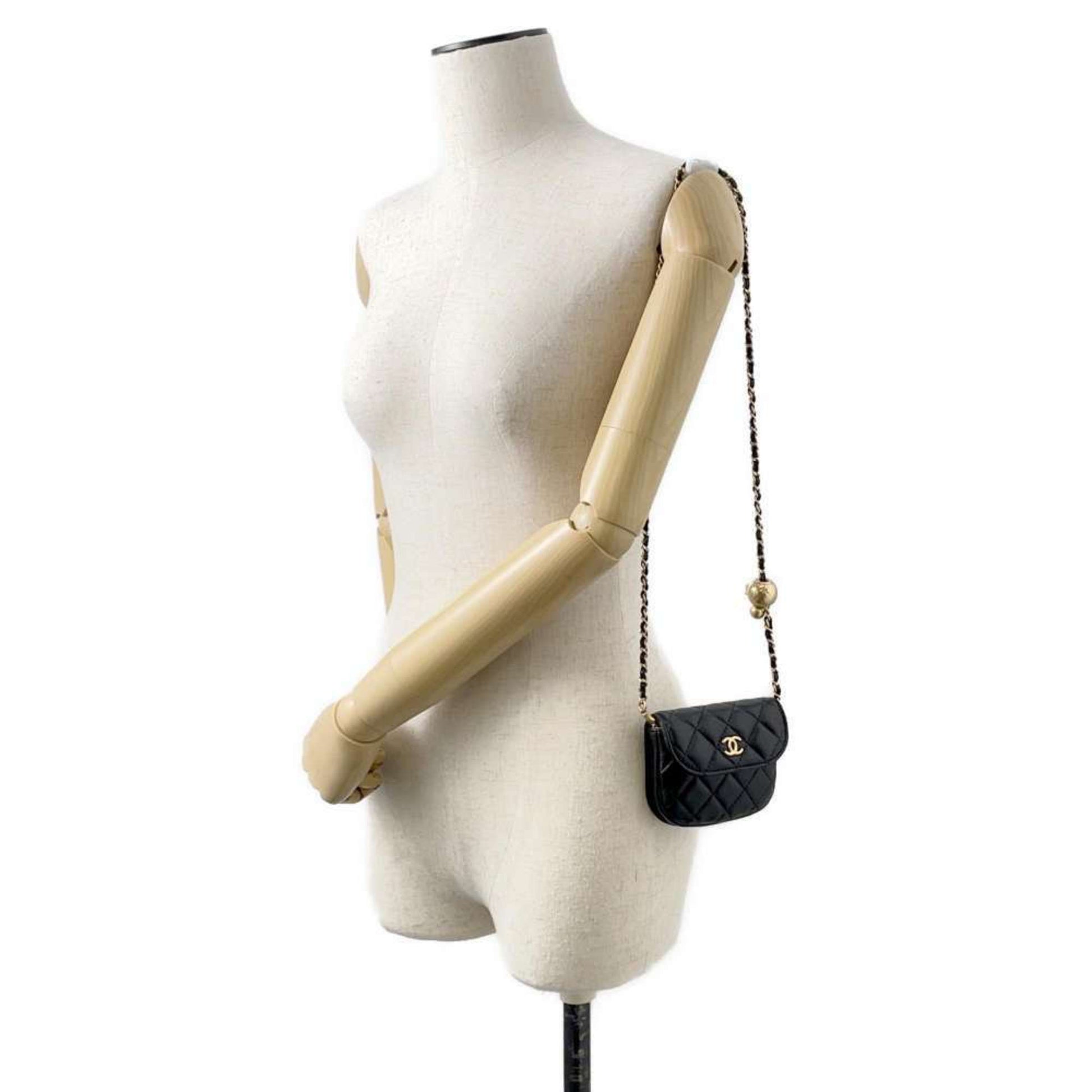 Chanel Waist Bag Matelasse Coco Mark Lambskin AP1461 2way Shoulder Ball Black