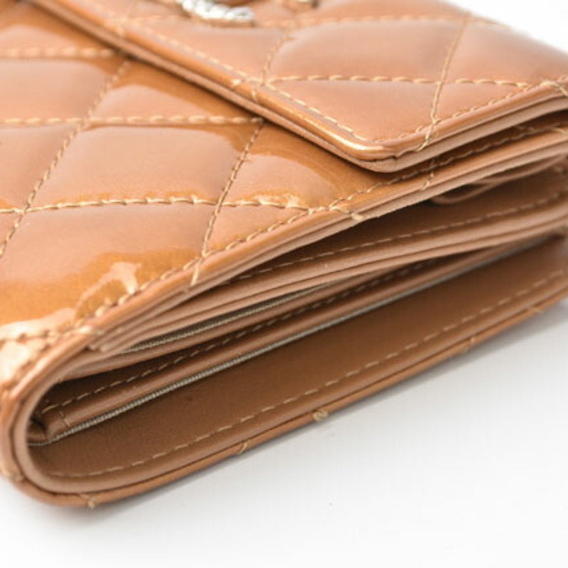 Chanel Wallet 8694 Folding Double Snap Brilliant Patent Leather Coco Mark Bronze