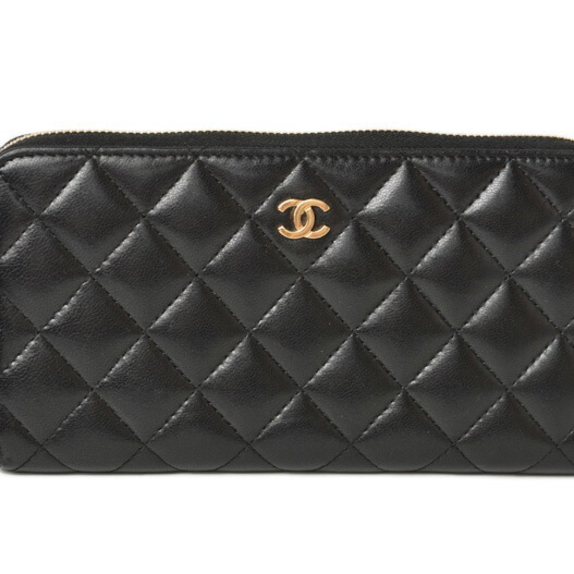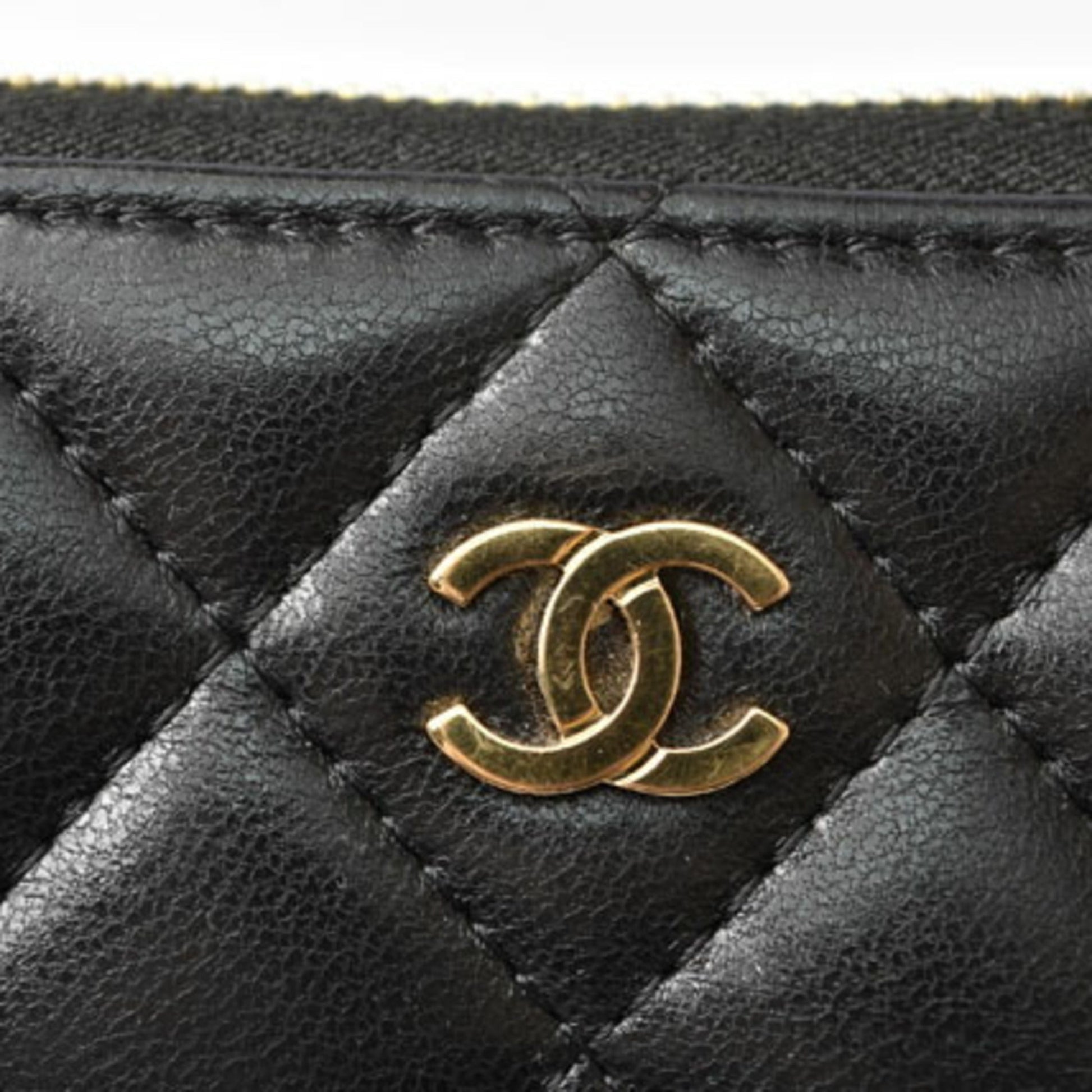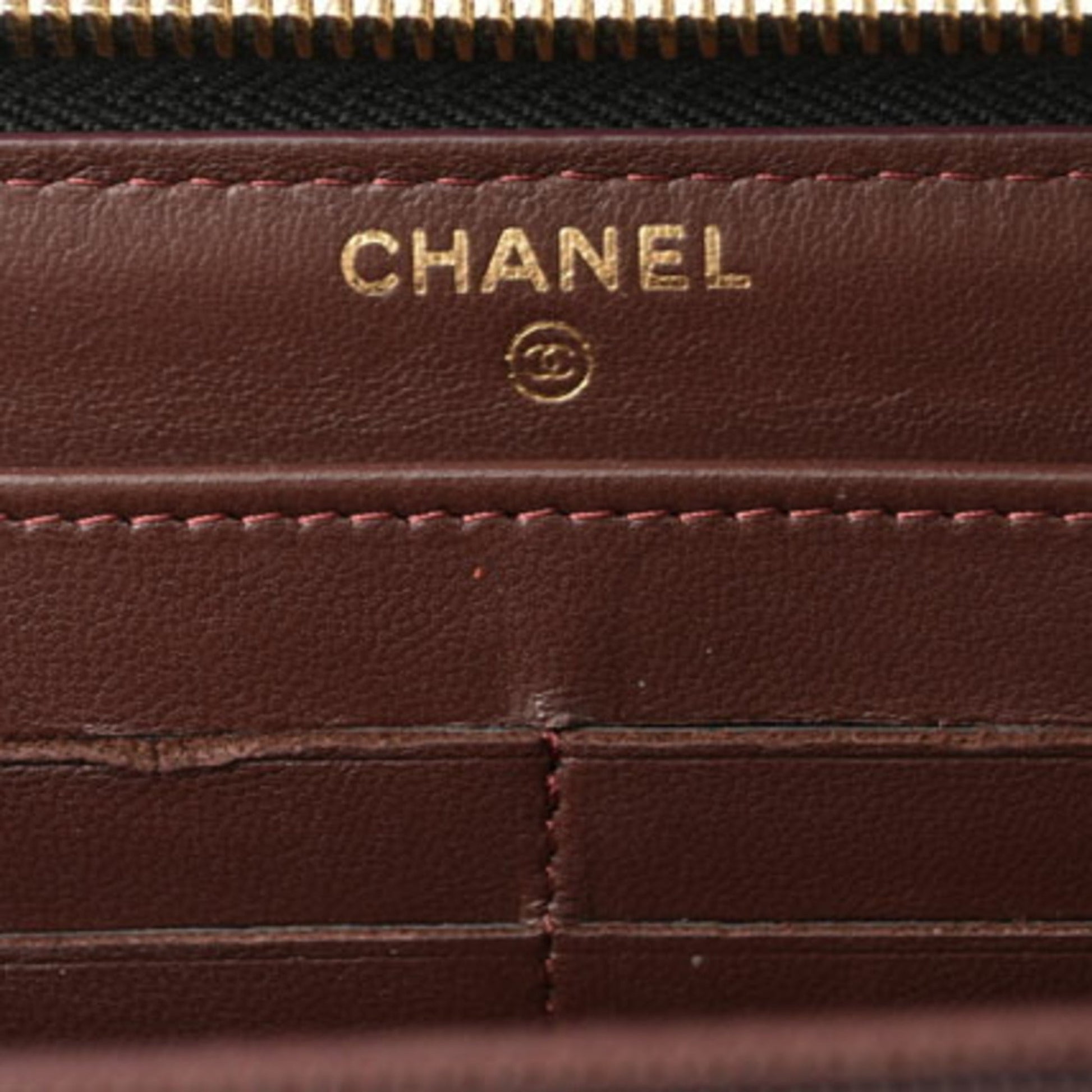 Chanel Wallet A50097 Long Round Zipper Timeless Classic Matelasse Lambskin Black Bordeaux