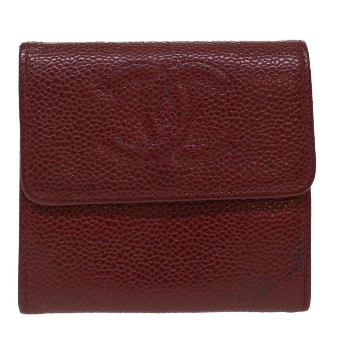 Chanel Wallet Caviar Skin Red CC Auth am3885