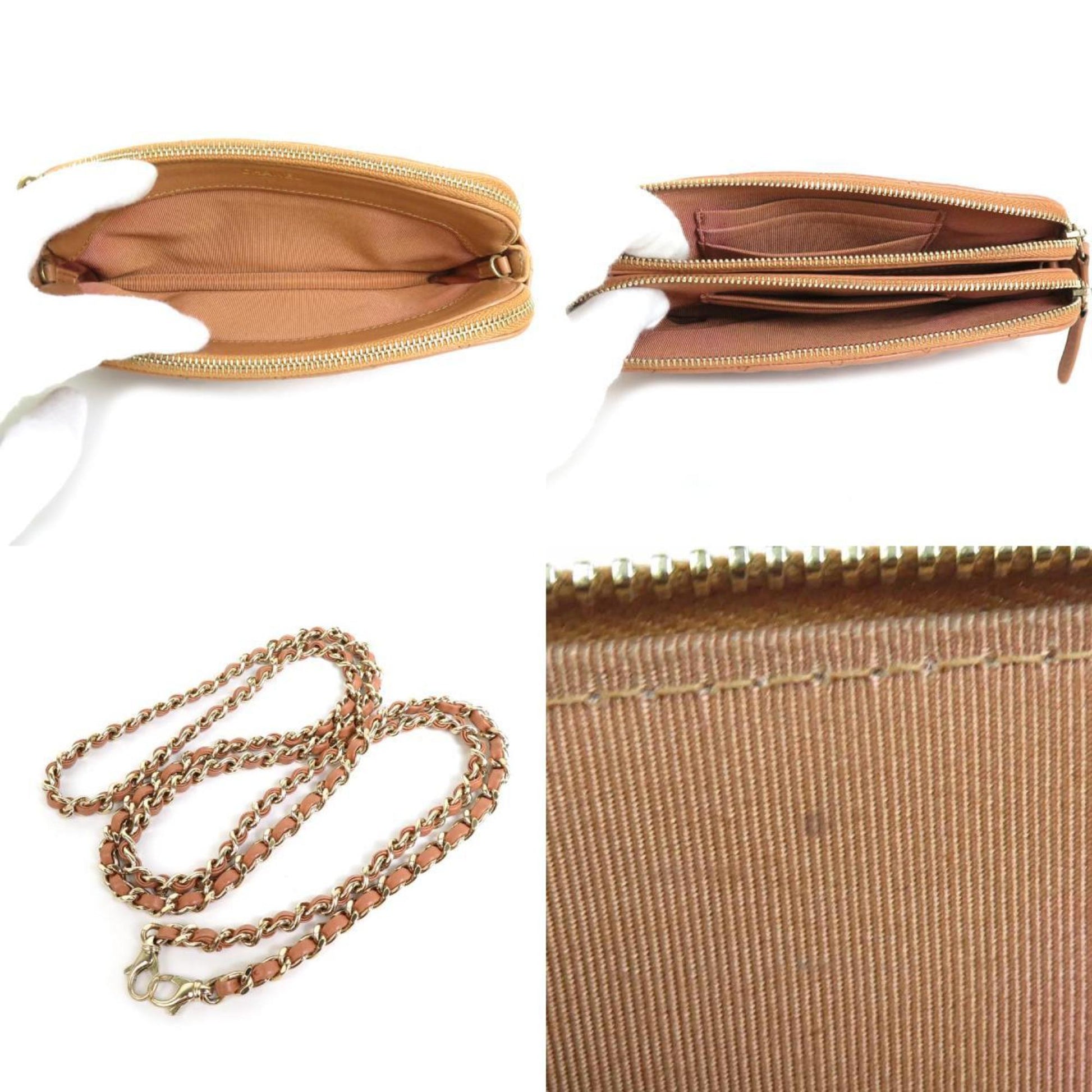 Chanel Wallet Chain Matelasse Leather/Metal Pink Brown/Gold Ladies