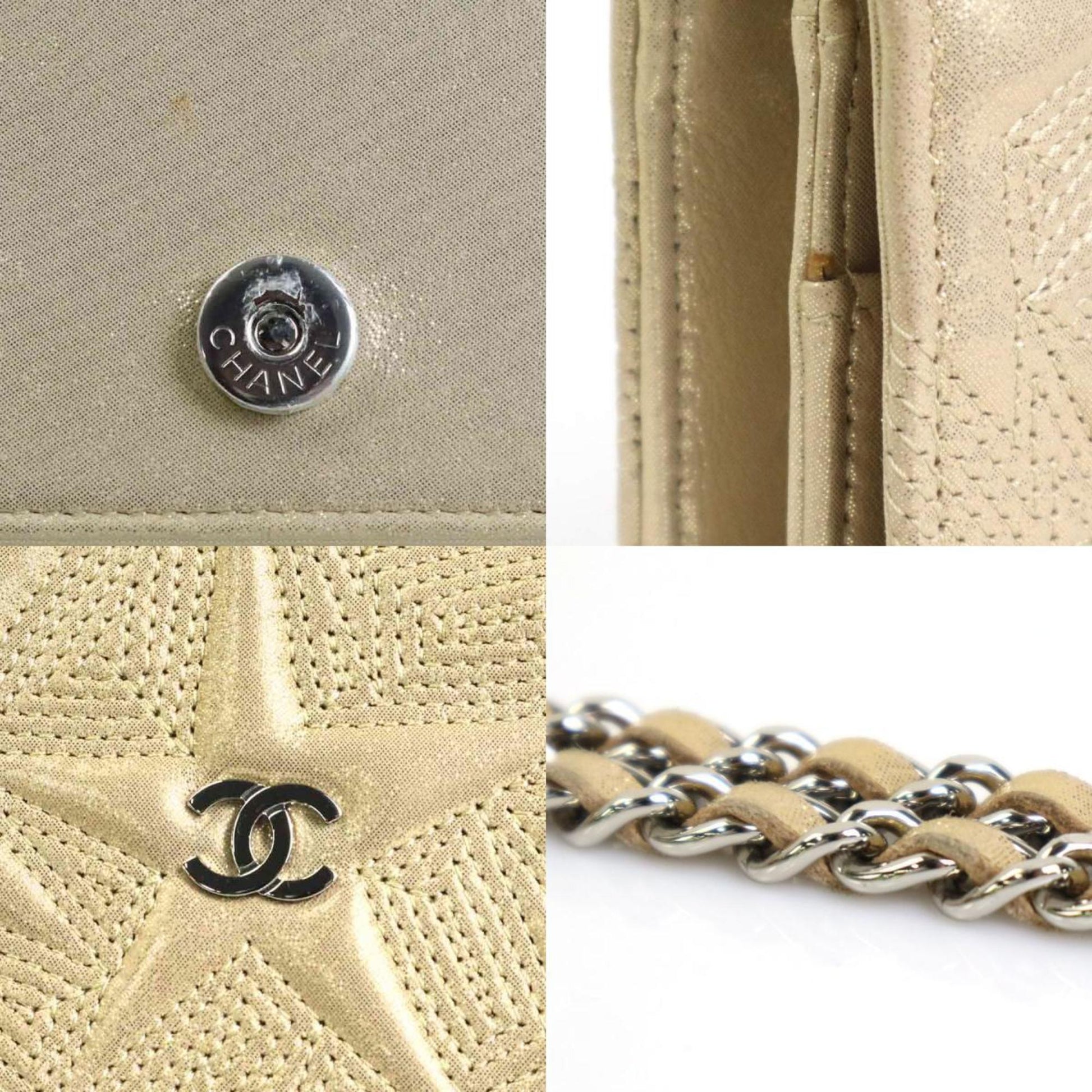 Chanel Wallet Chain Shoulder Bag Coco Mark Leather/Metal Gold/Silver Women's e55872a