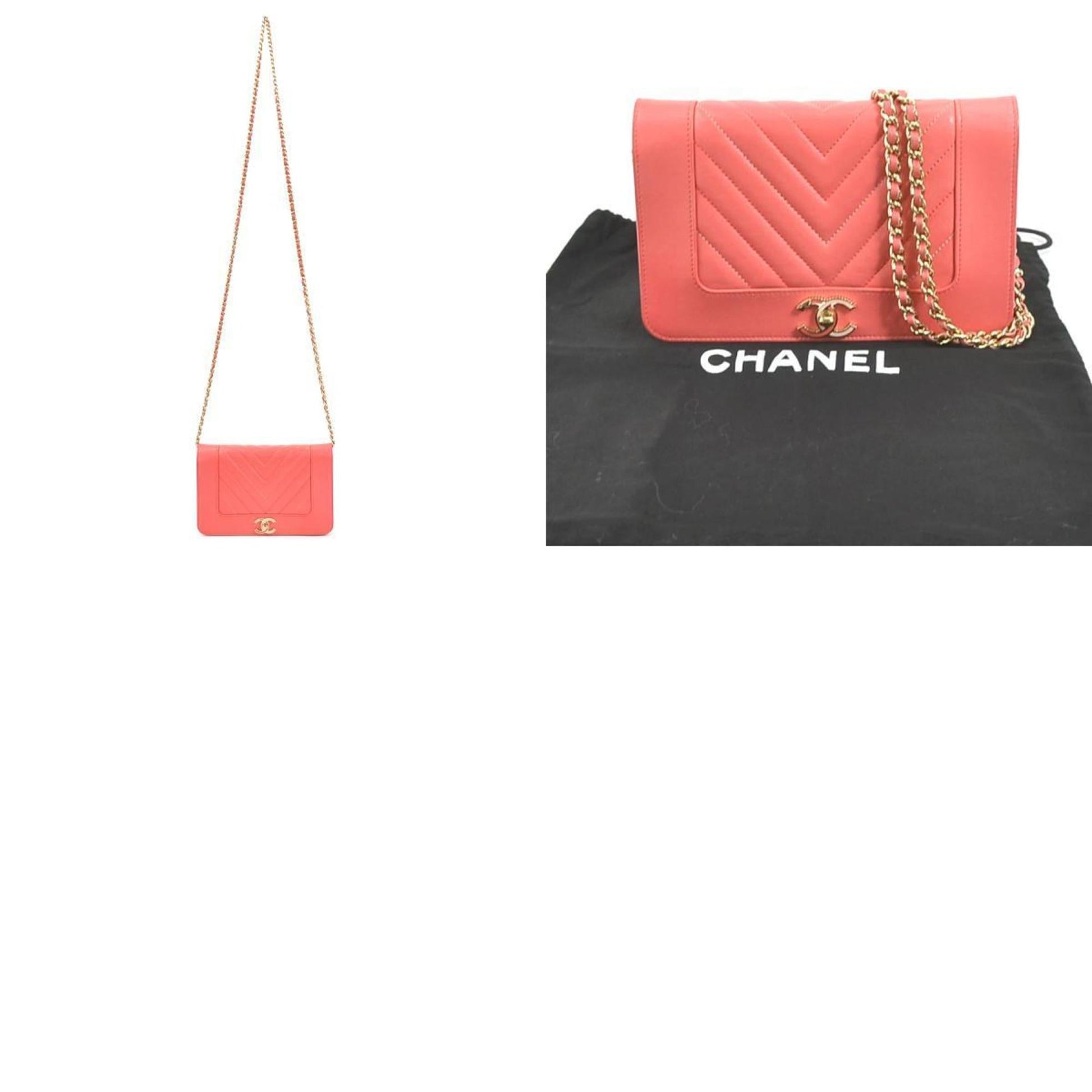 Chanel Wallet Chain V Stitch Leather/Metal Pink/Gold Ladies