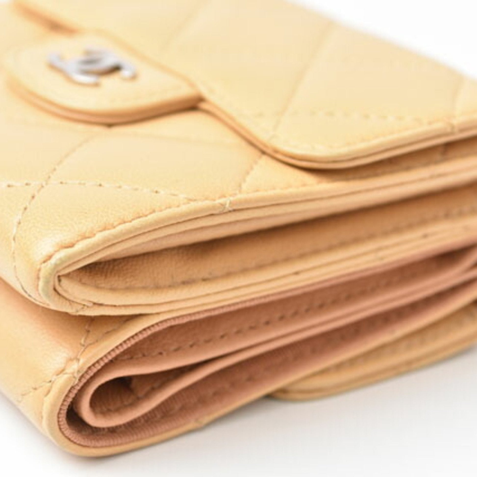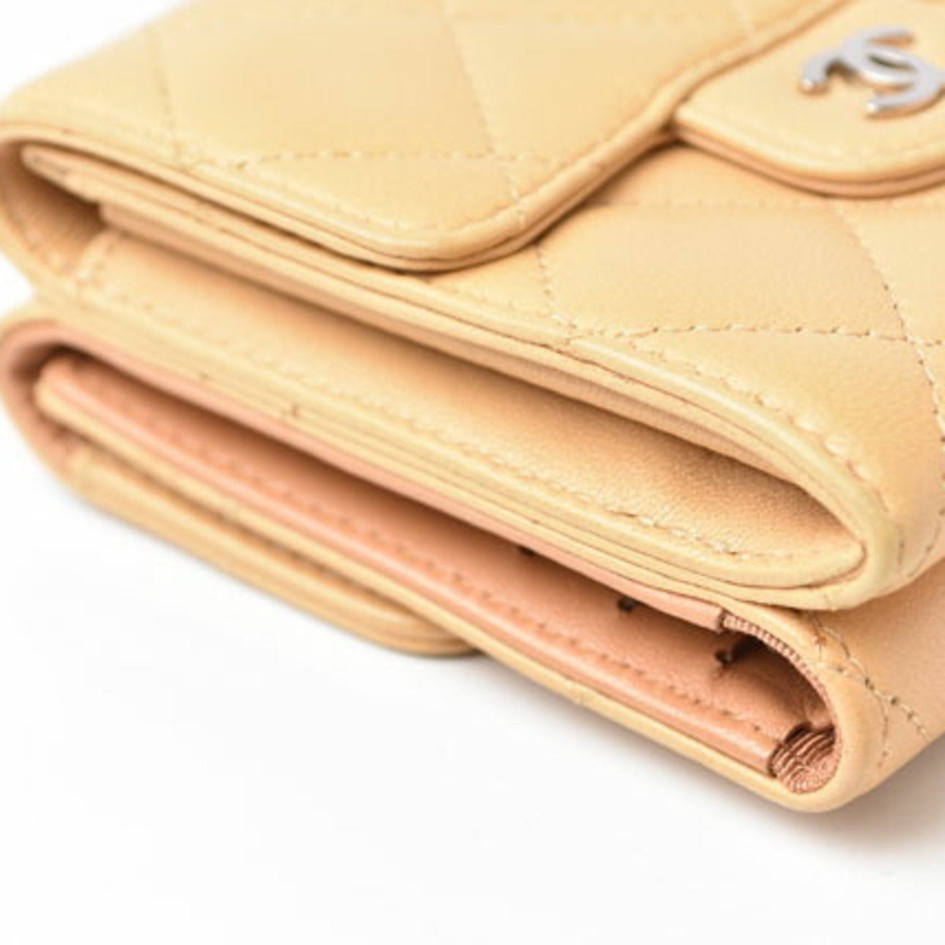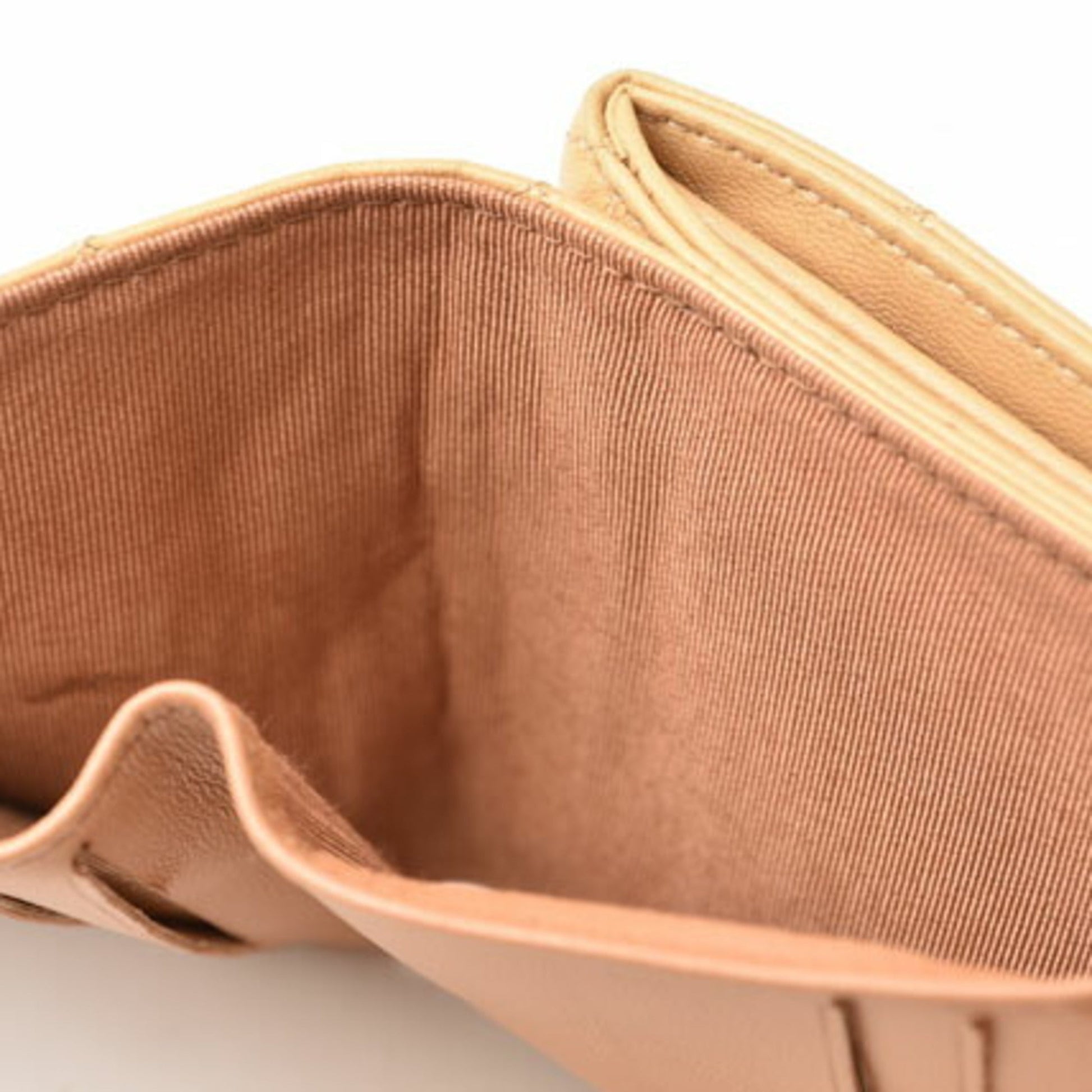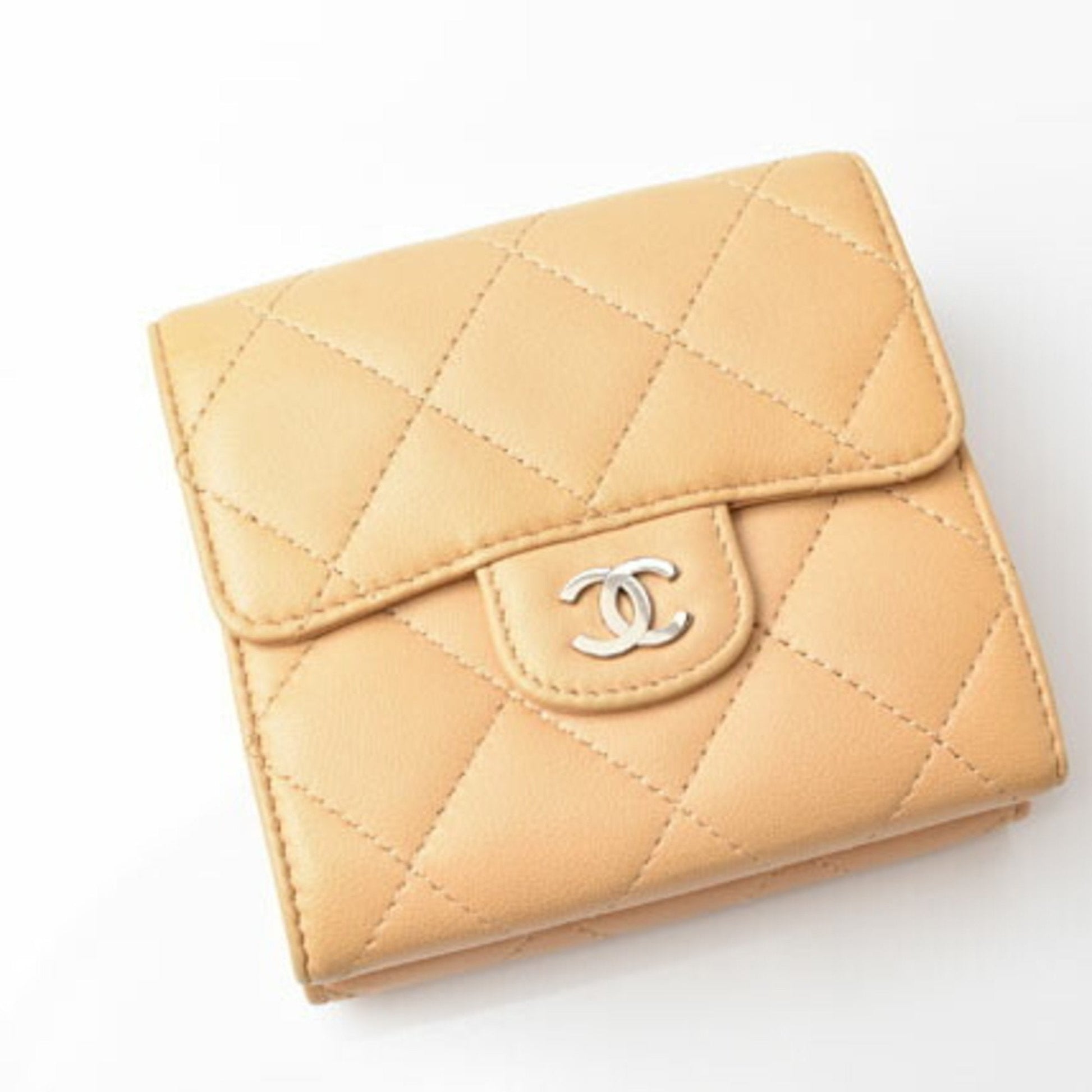 CHANEL Wallet 3-fold wallet A82288 Lambskin Beige