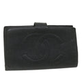 CHANEL Wallet Caviar Skin Black CC Auth bs9845
