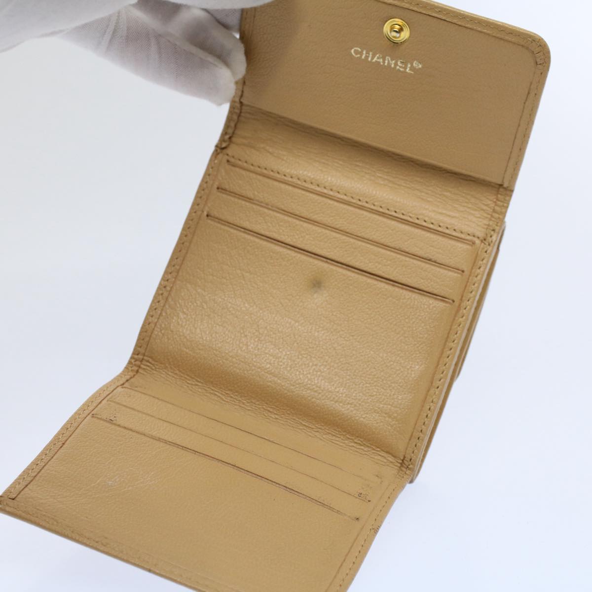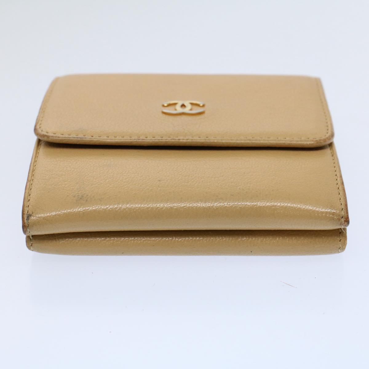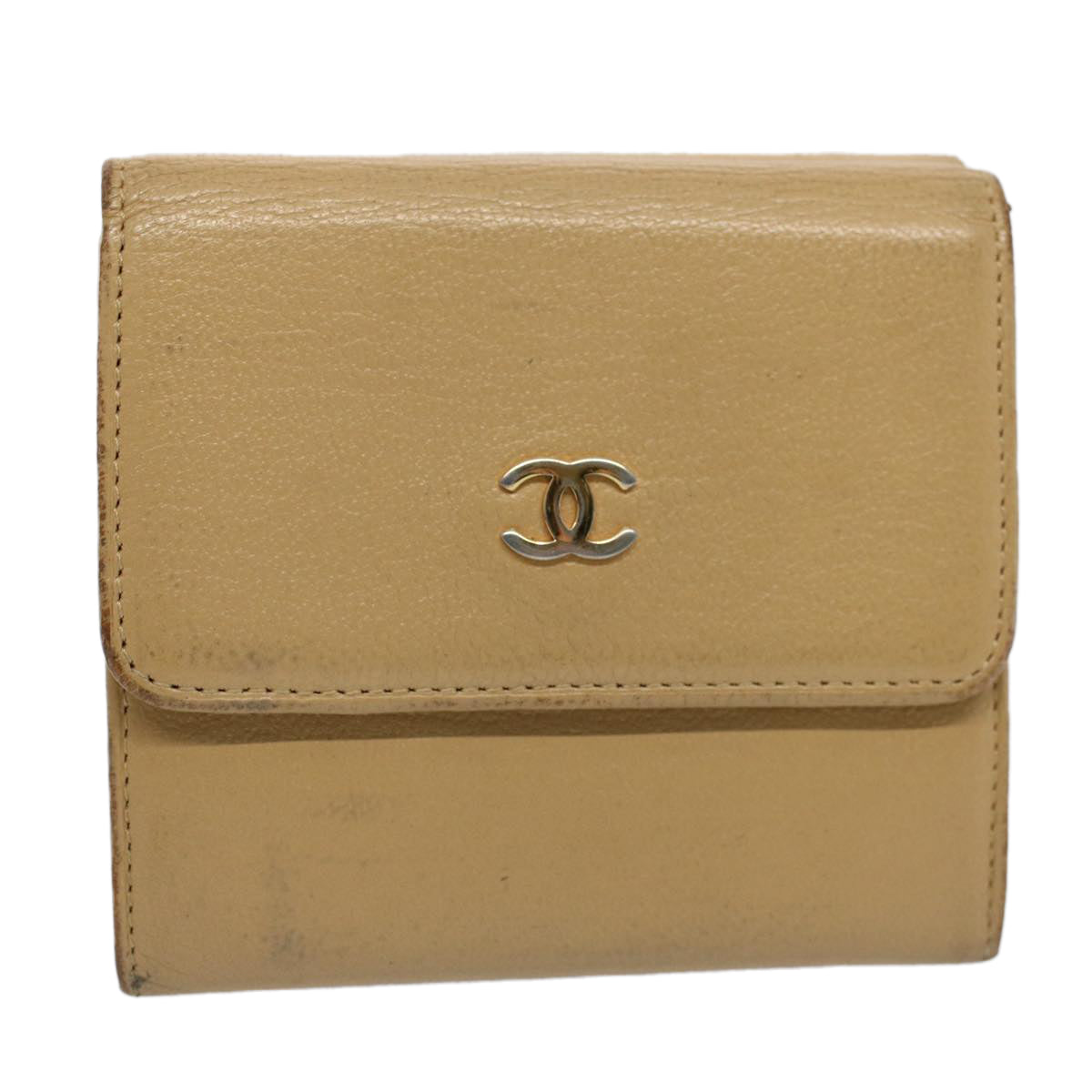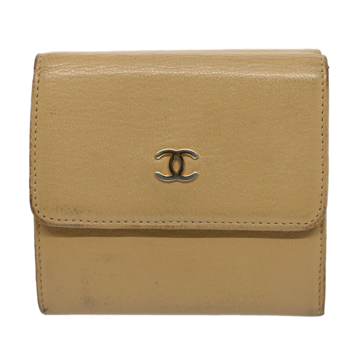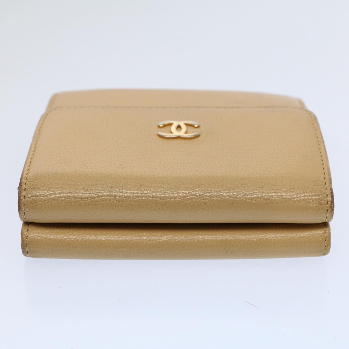 CHANEL Wallet Leather Beige CC Auth bs10213
