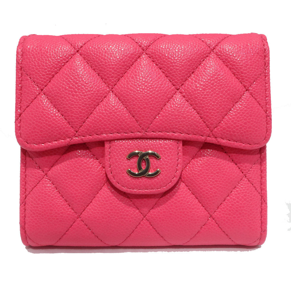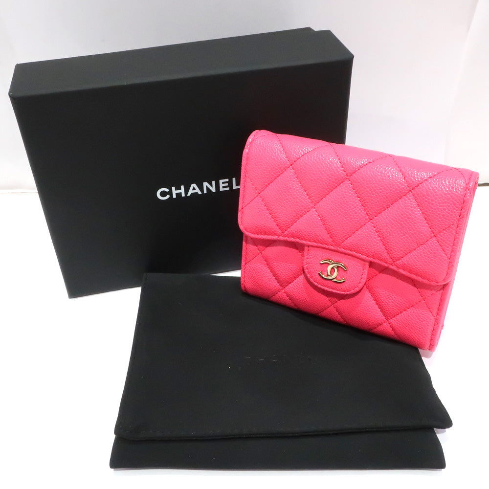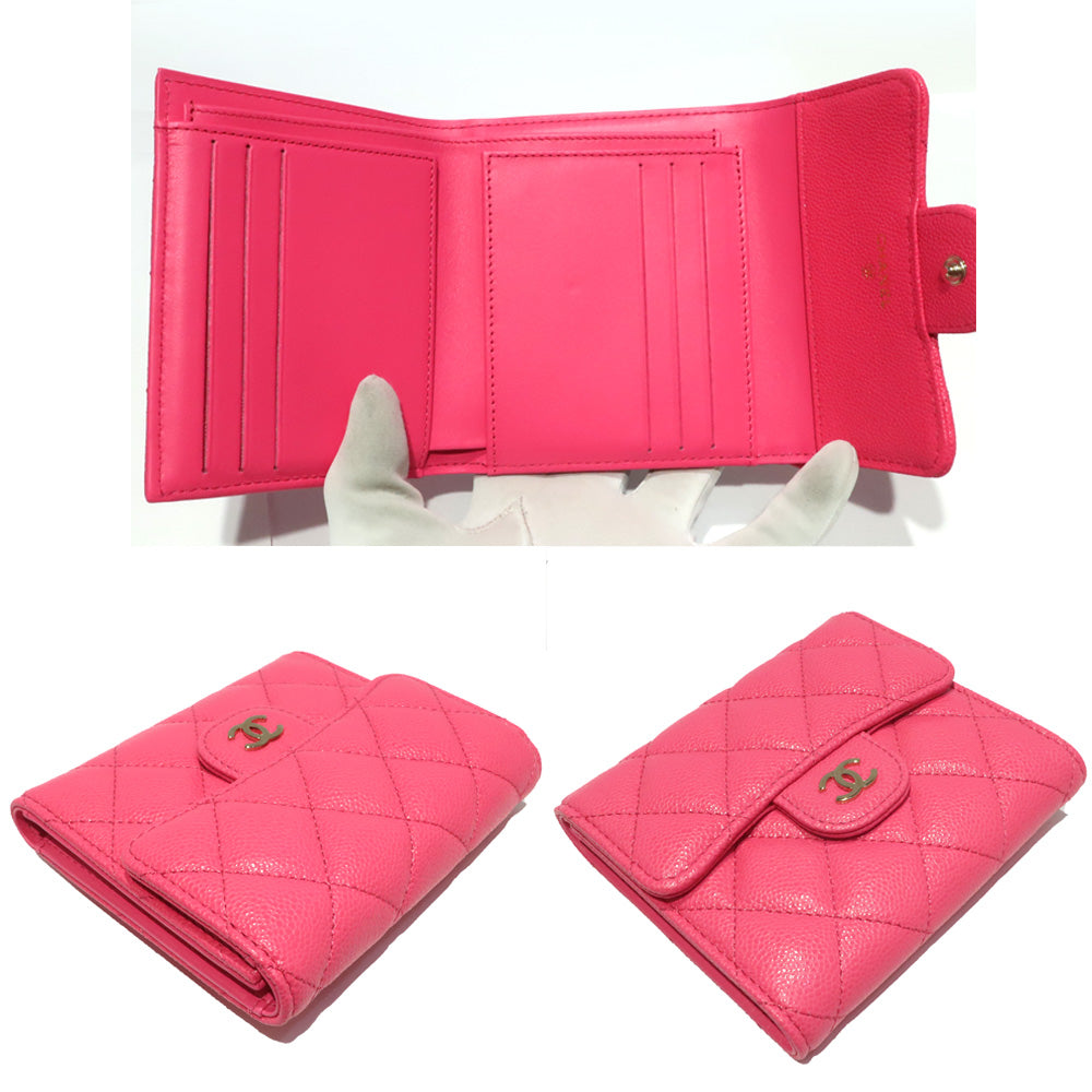 Chanel Wallet Matrasse Caviar S Three Fold Pink Leather Gold Small Boxes