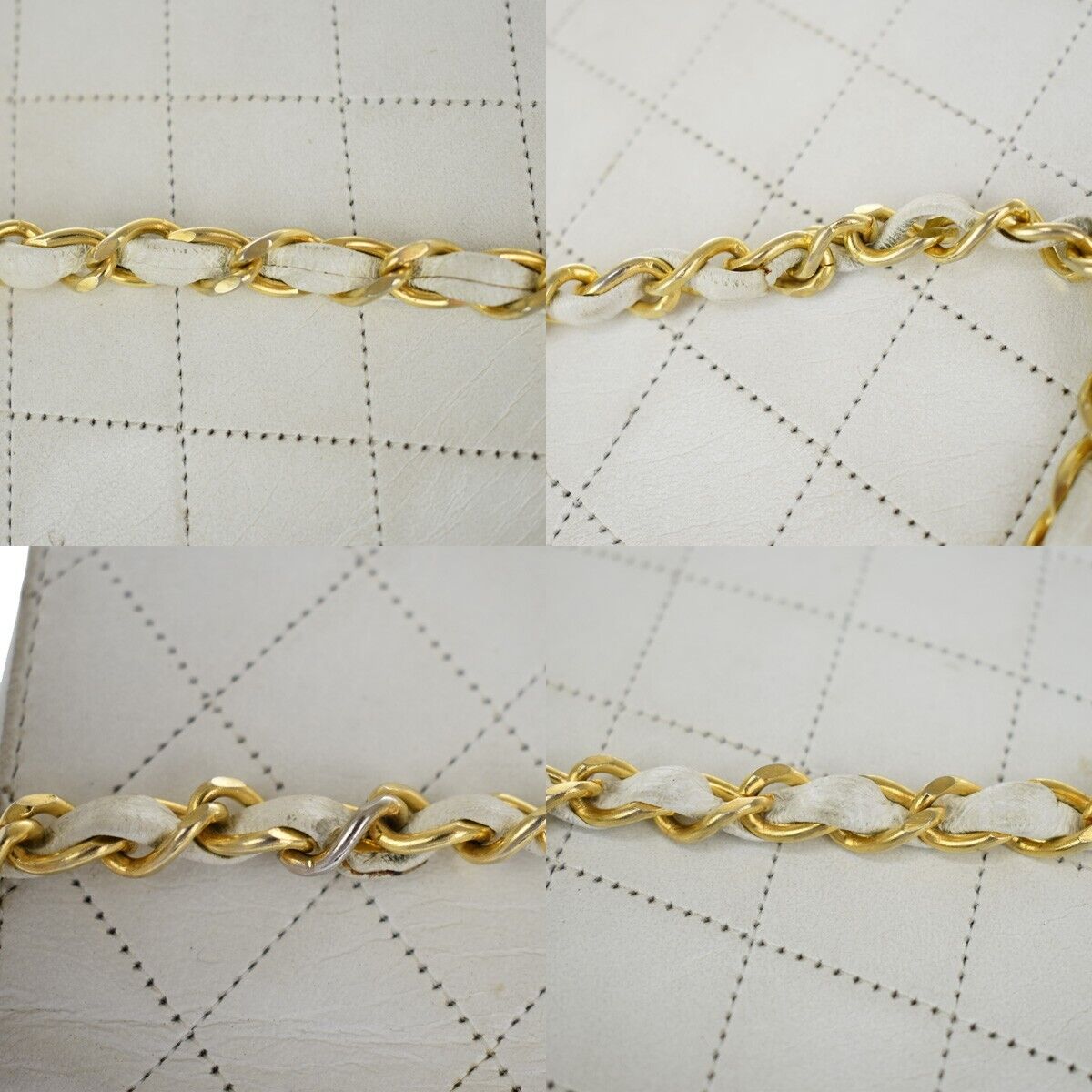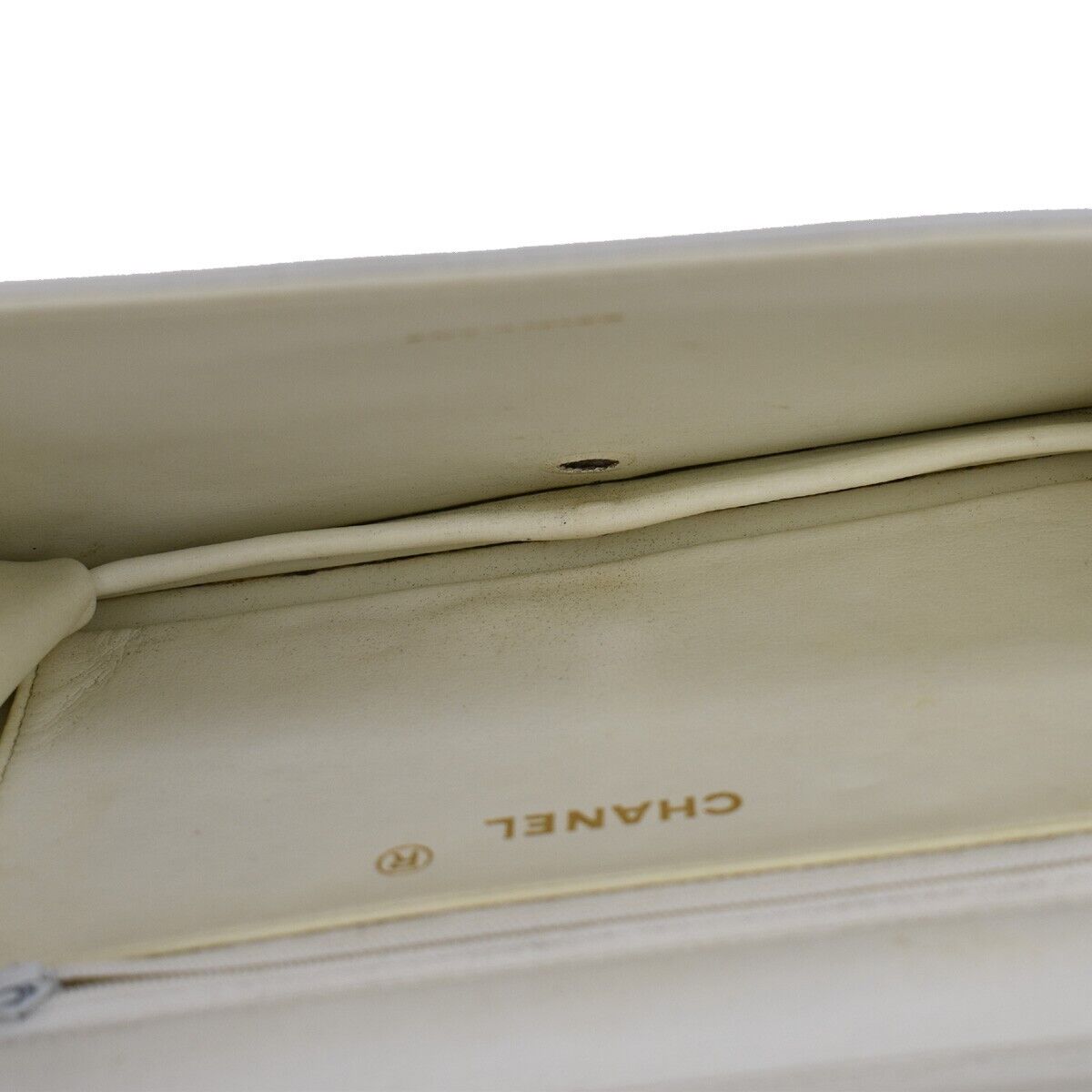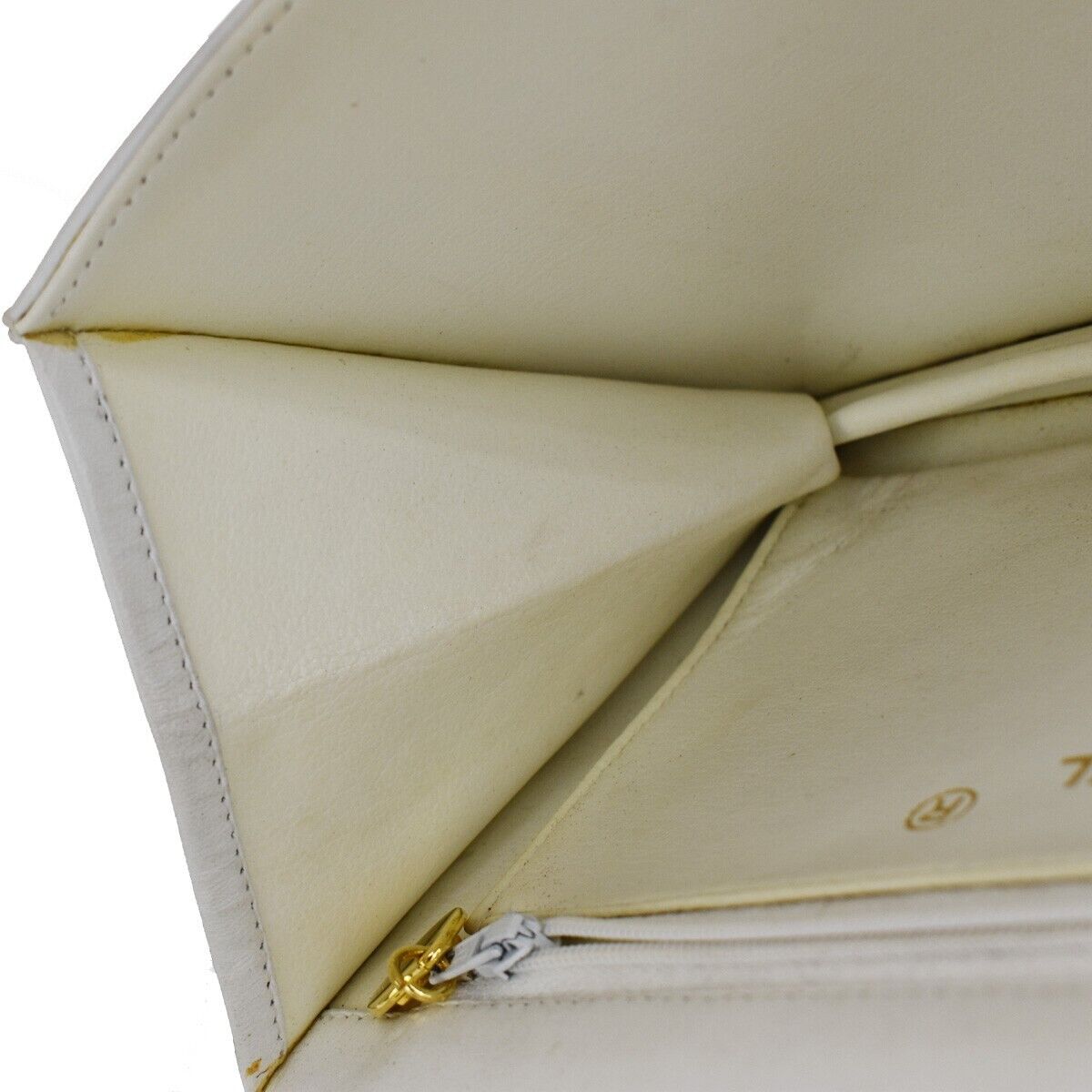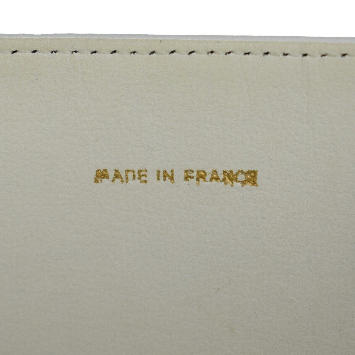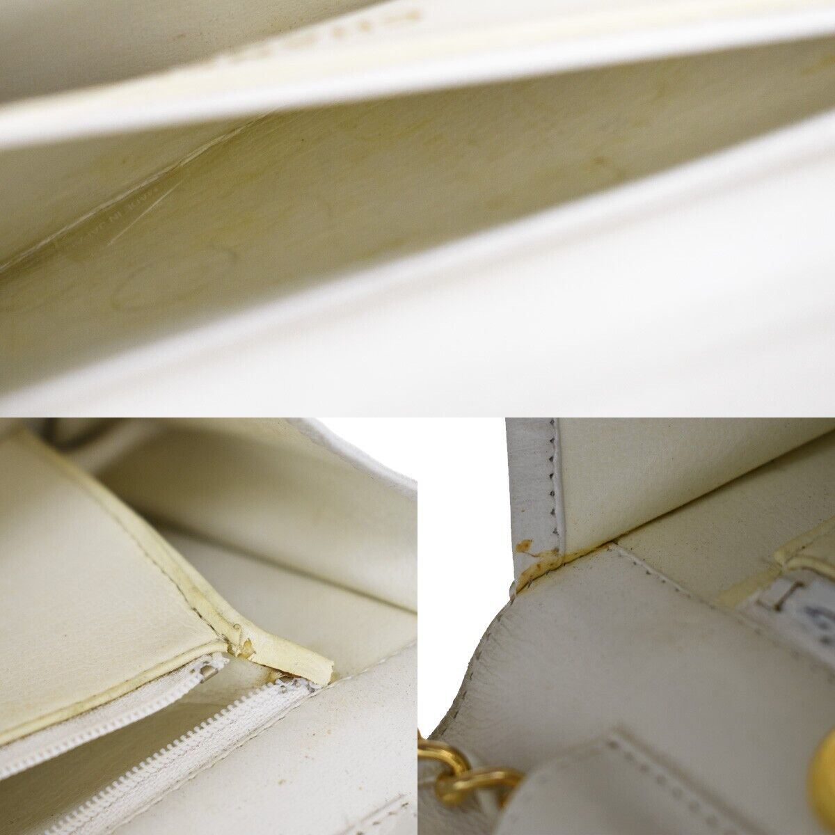 Inside, the leather lining in a pristine white hue provides an elegant backdrop for your essentials, but it may exhibit signs of use such as scuffs, dirt, wrinkles, stains, and a slight discoloration. Additionally, there might be a noticeable smell.