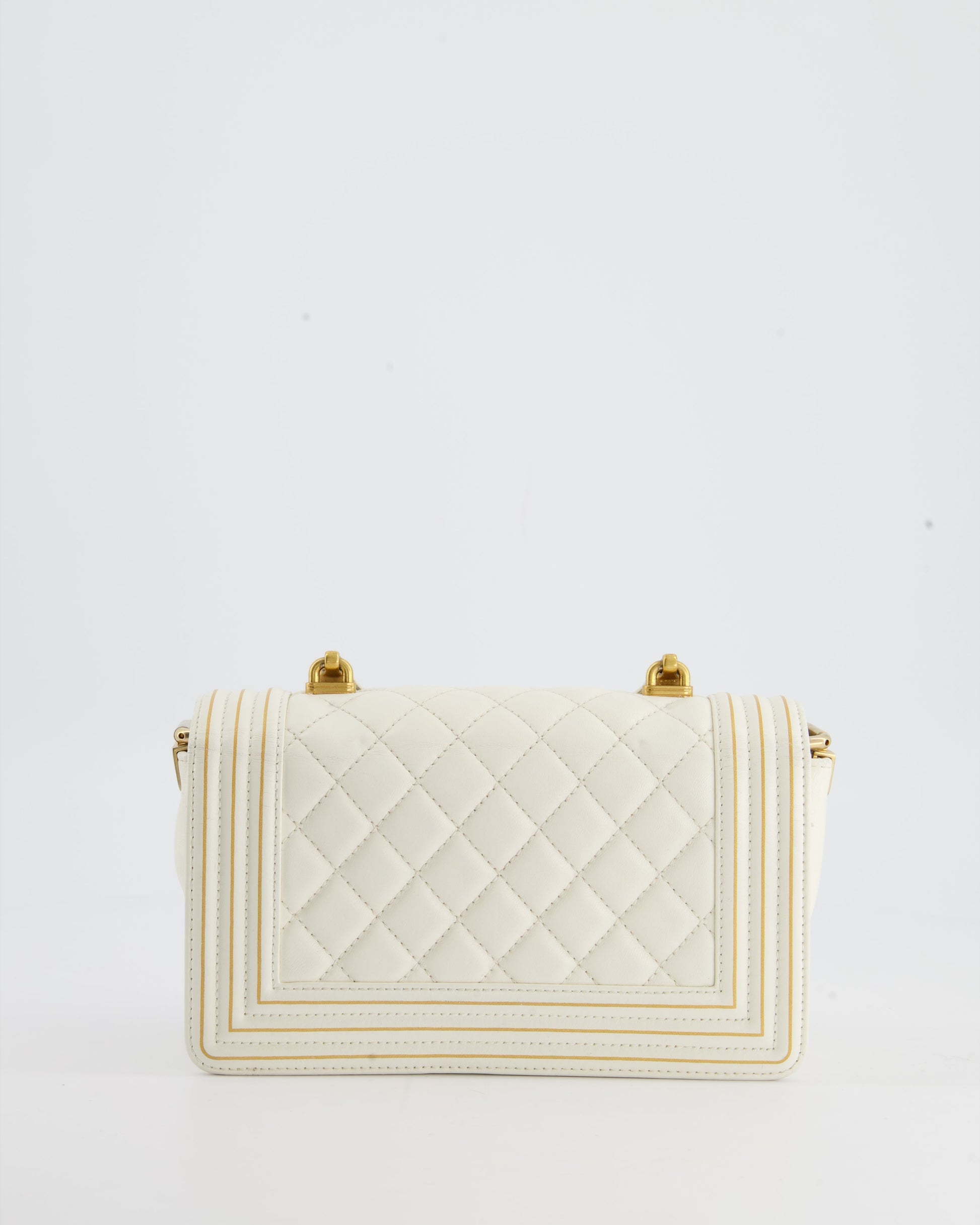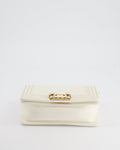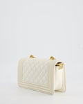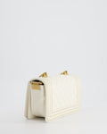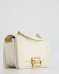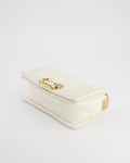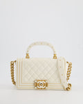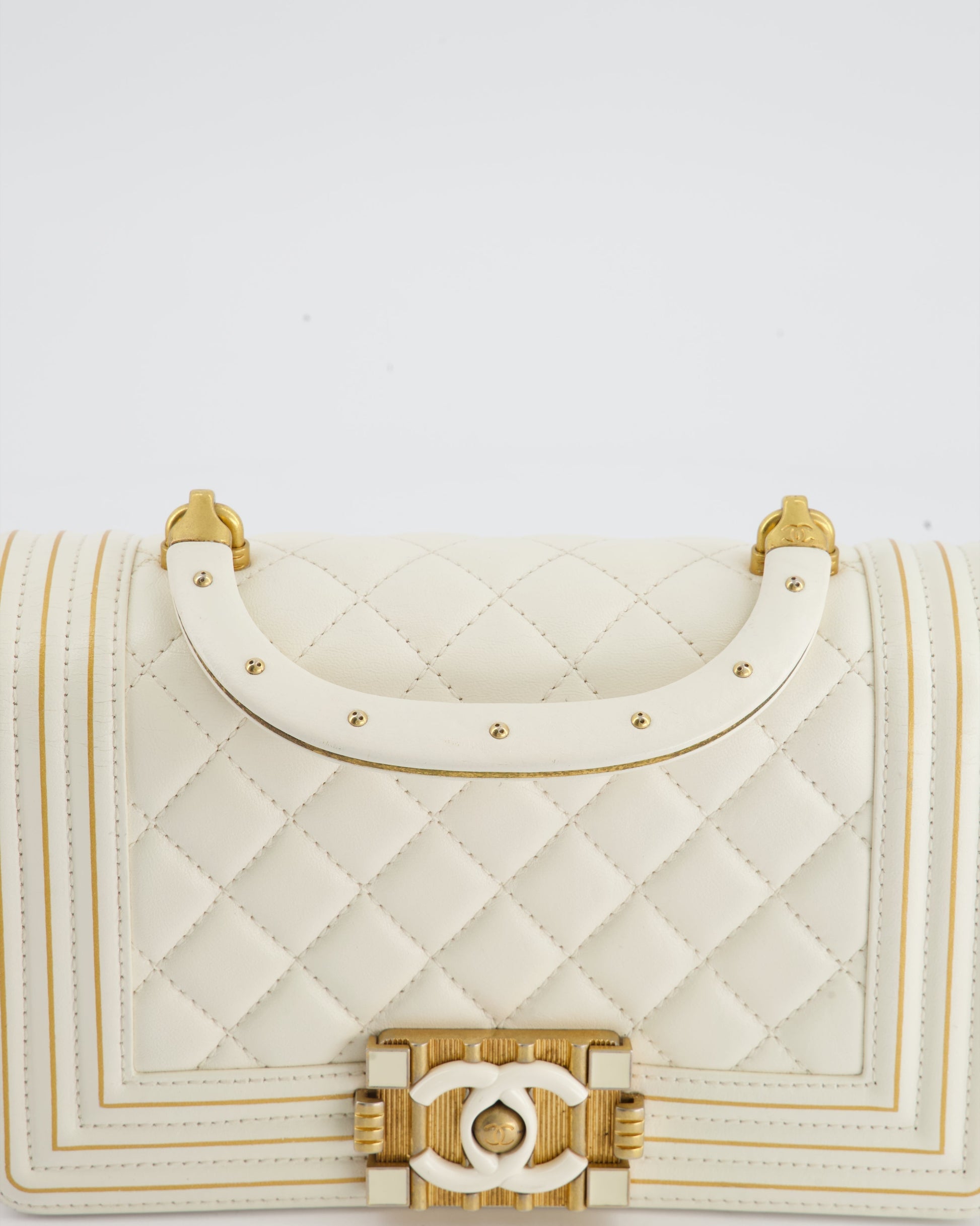 Chanel White and Gold Small Top Handle Boy Bag in Lambskin Leather with Brushed Gold Hardware