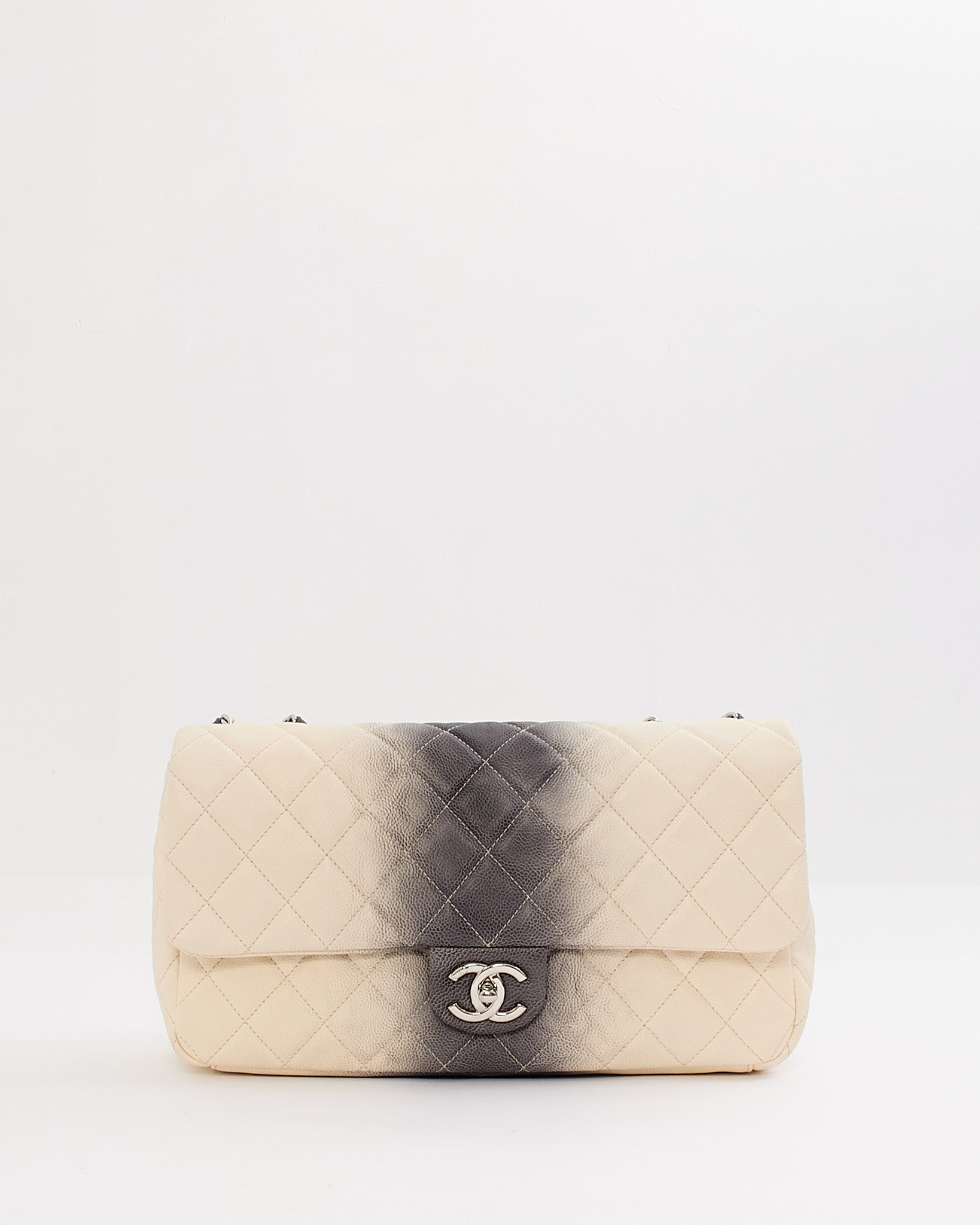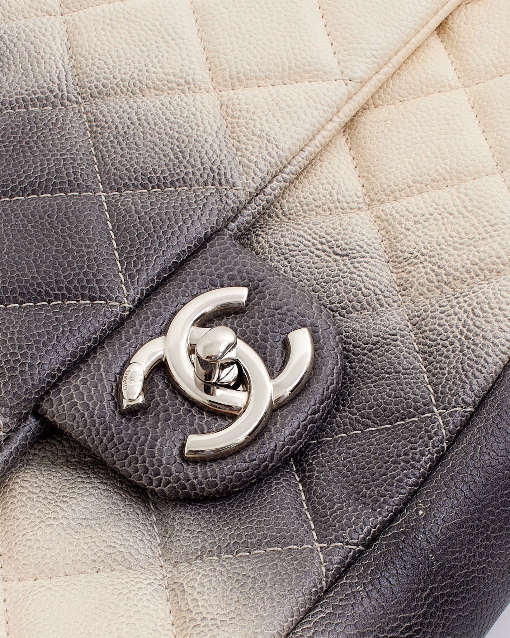 Chanel White and Grey Ombré Quilted Caviar Leather Jumbo Flap Bag