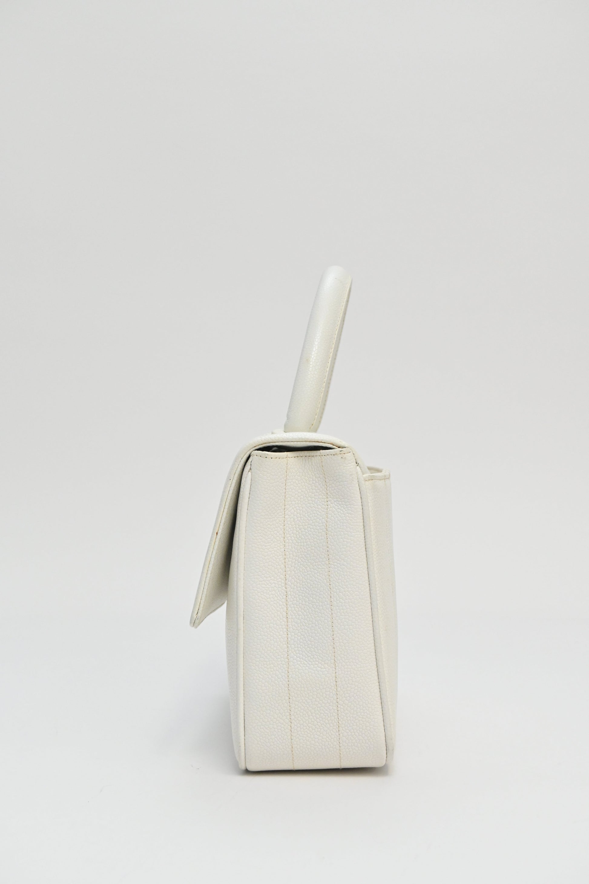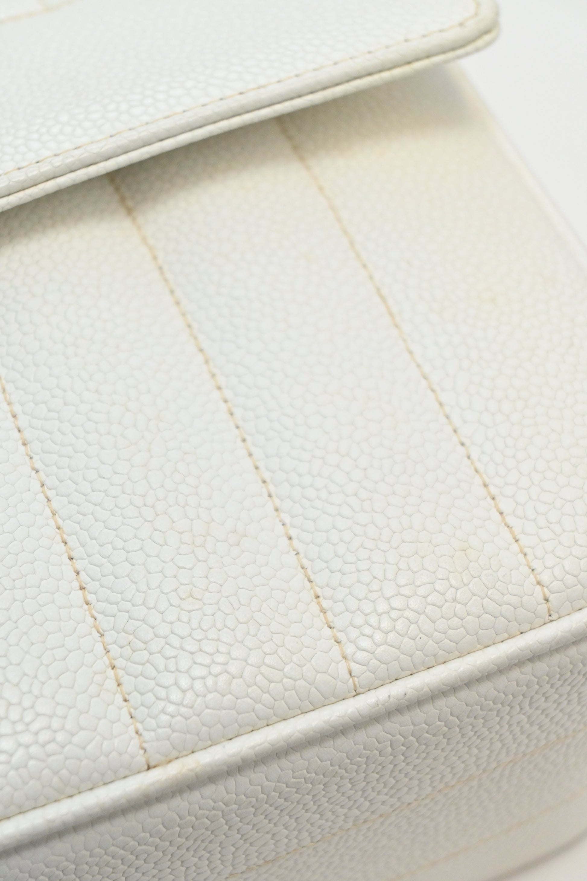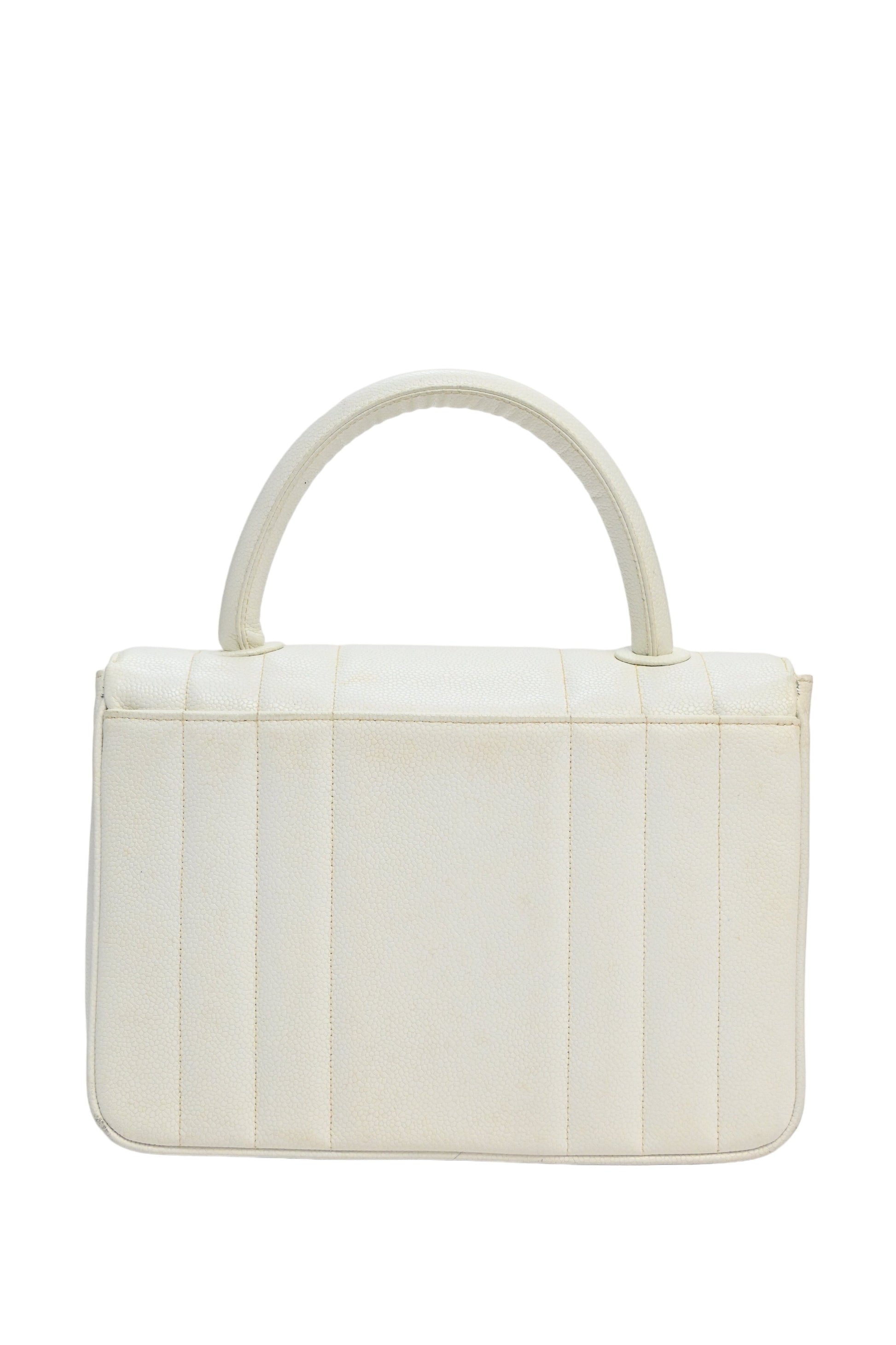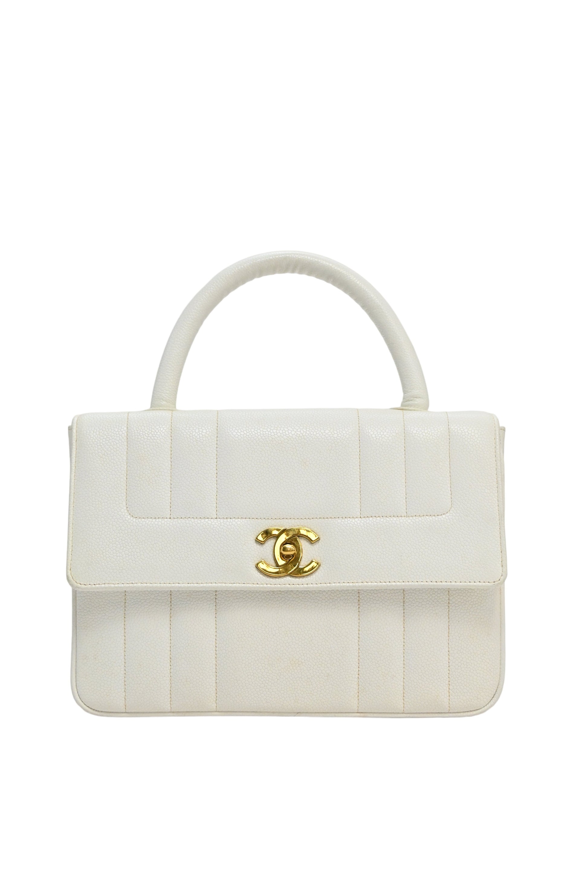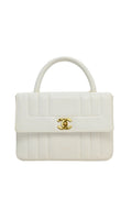 CHANEL White caviar leather top handle flap bag with 24-karat gold plated hardware