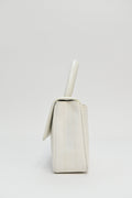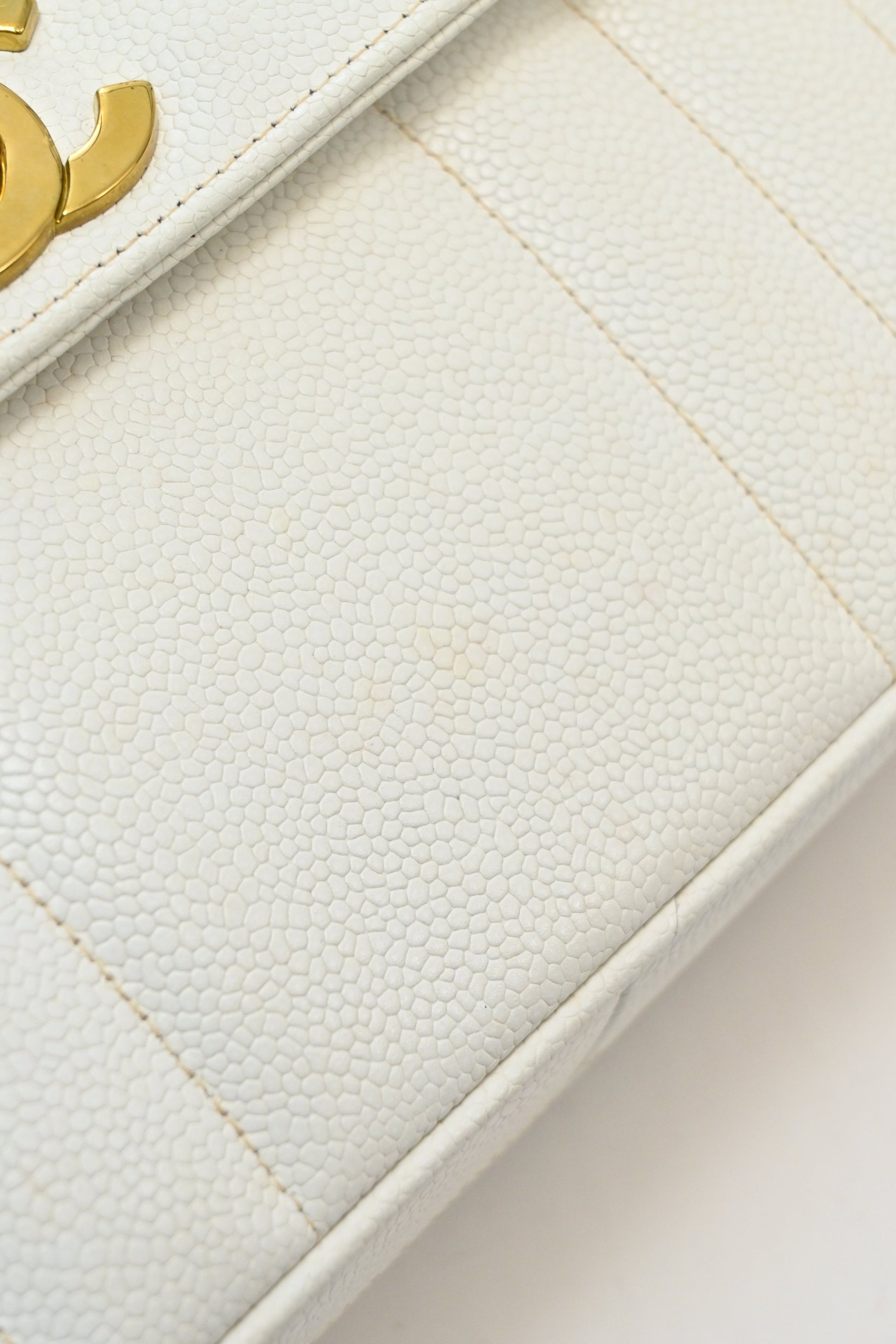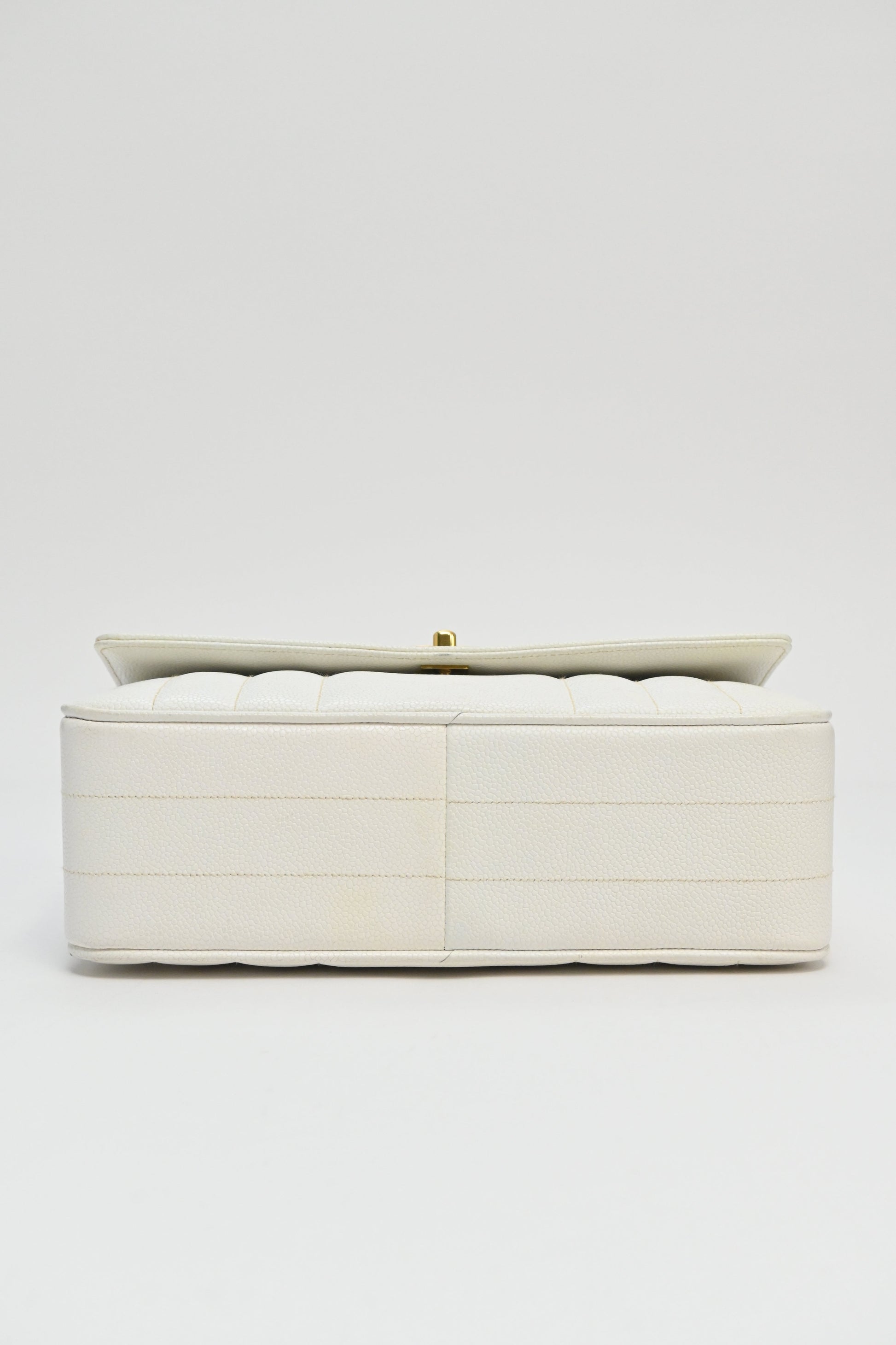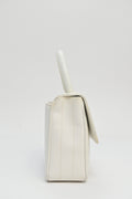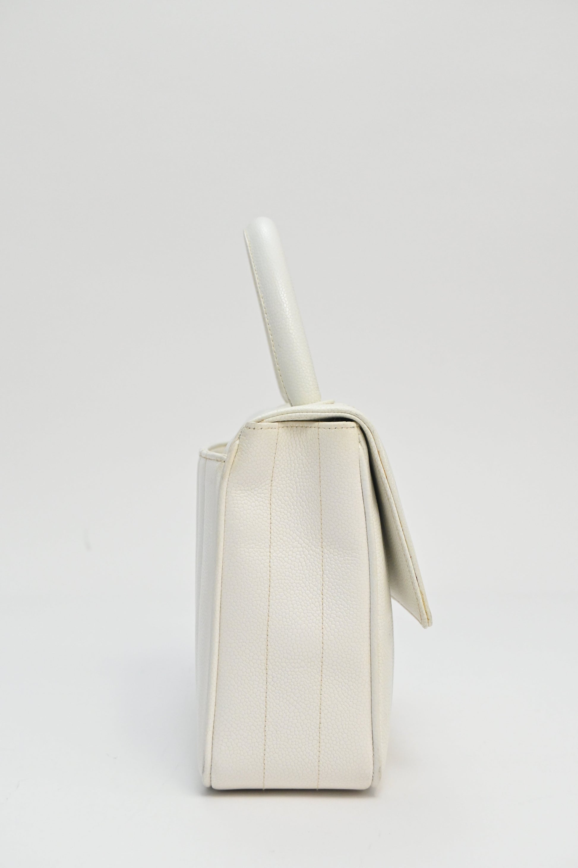 CHANEL White caviar leather top handle flap bag with 24-karat gold plated hardware