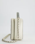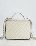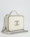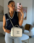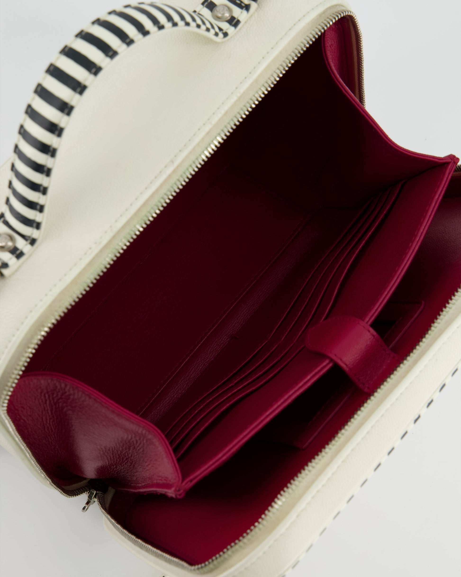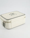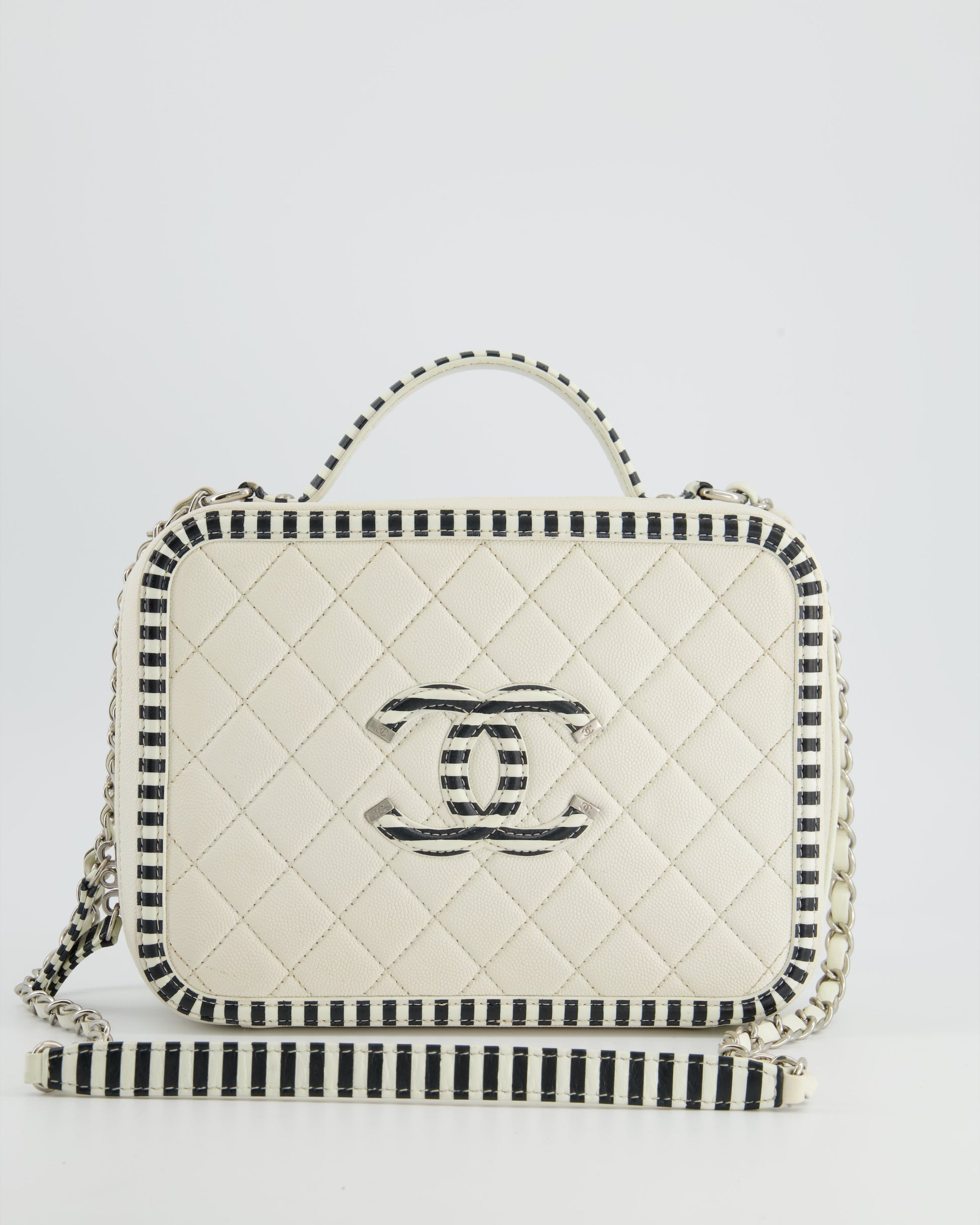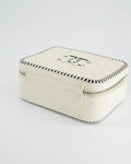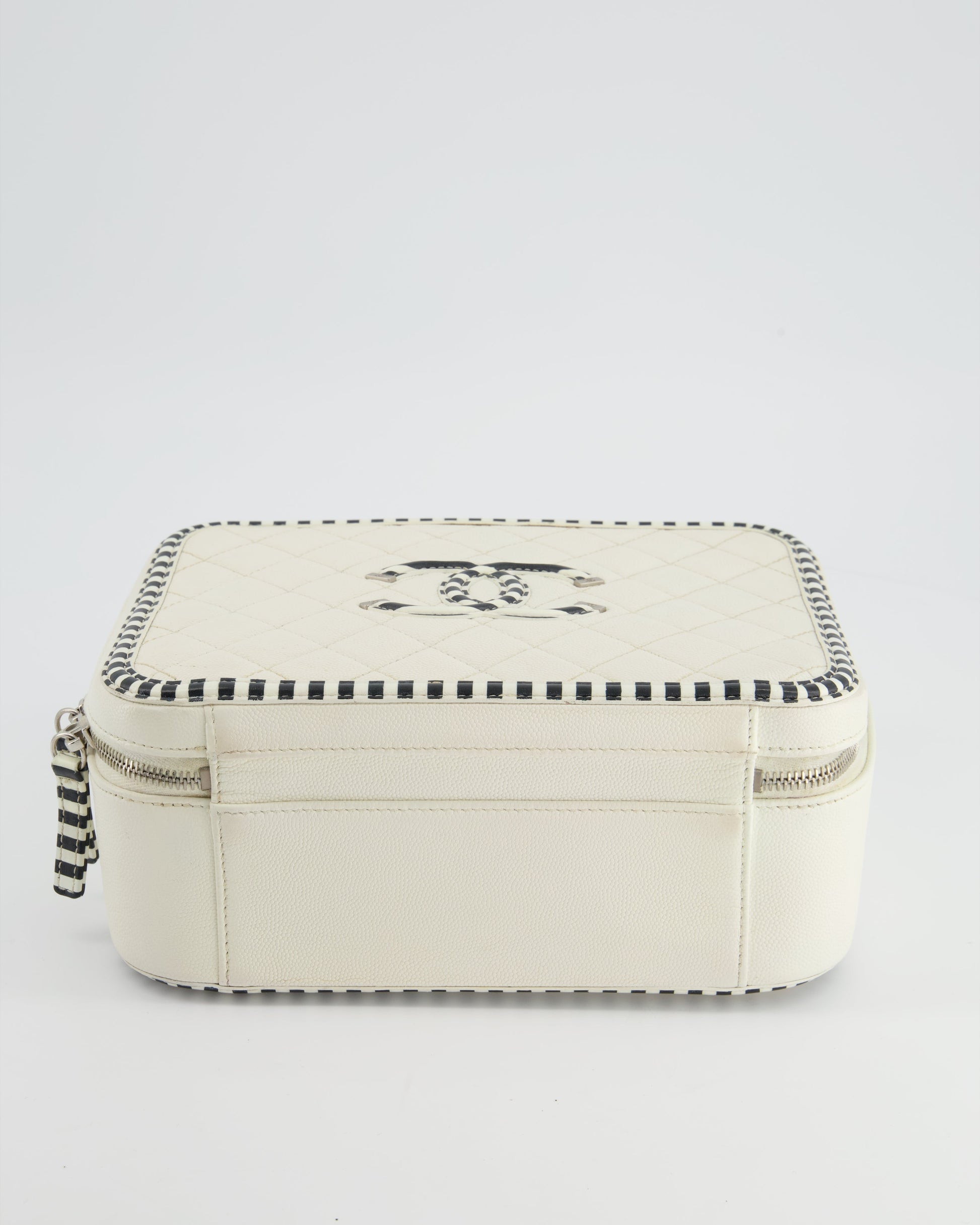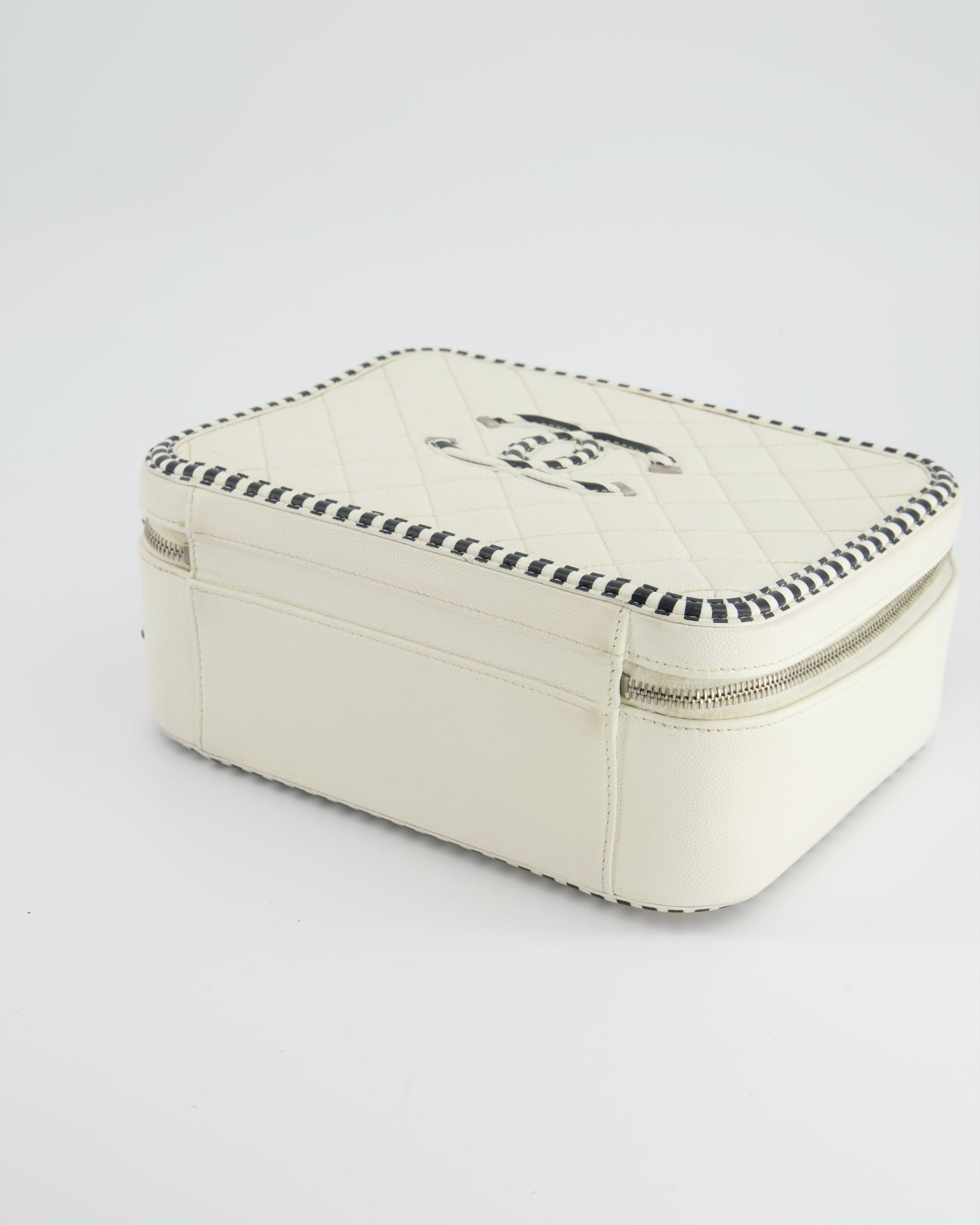 Chanel White Caviar Vanity Case with Zebra Motif CC Logo and Silver Hardware