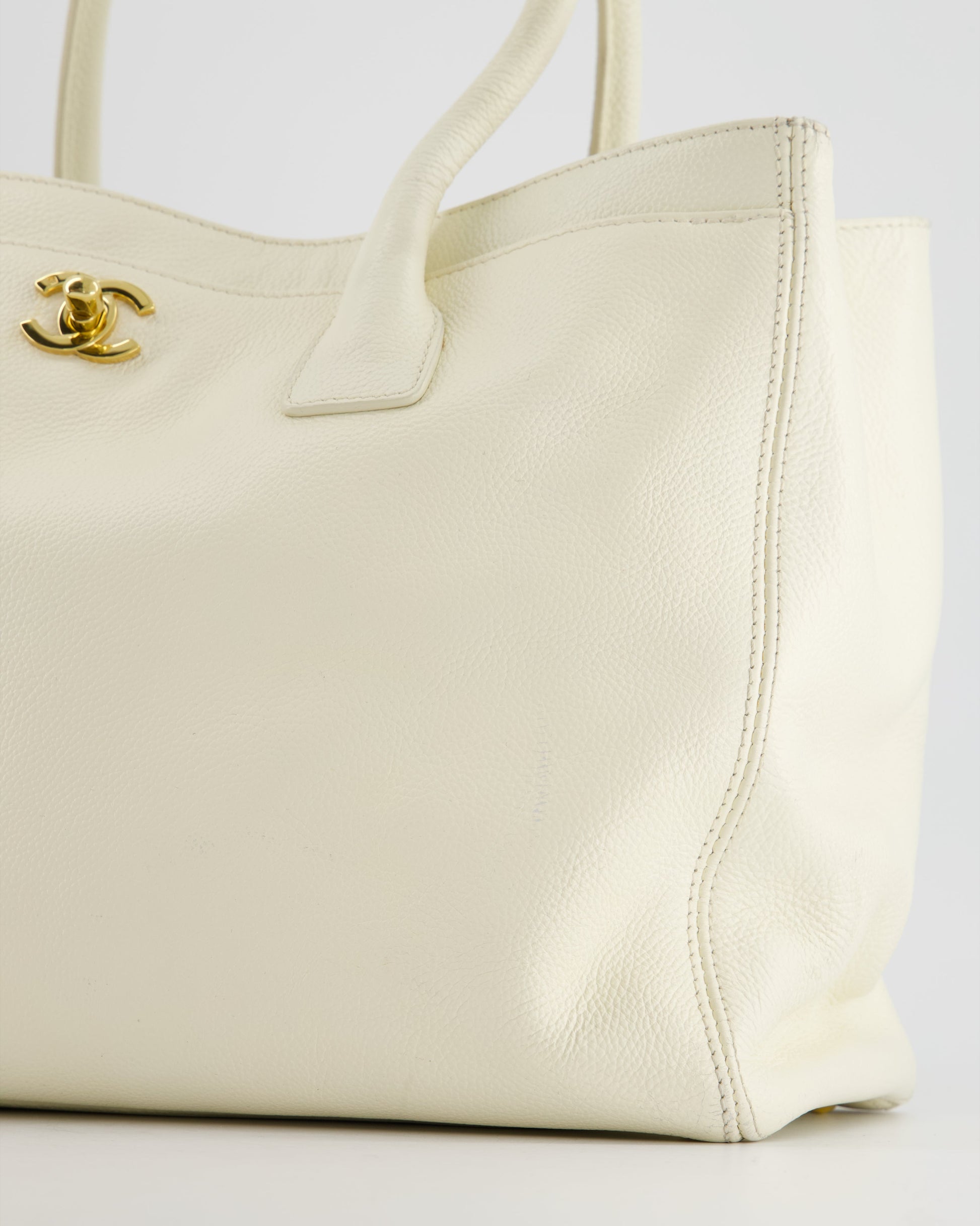 Chanel White Executive Shopper Tote Bag with Gold Hardware