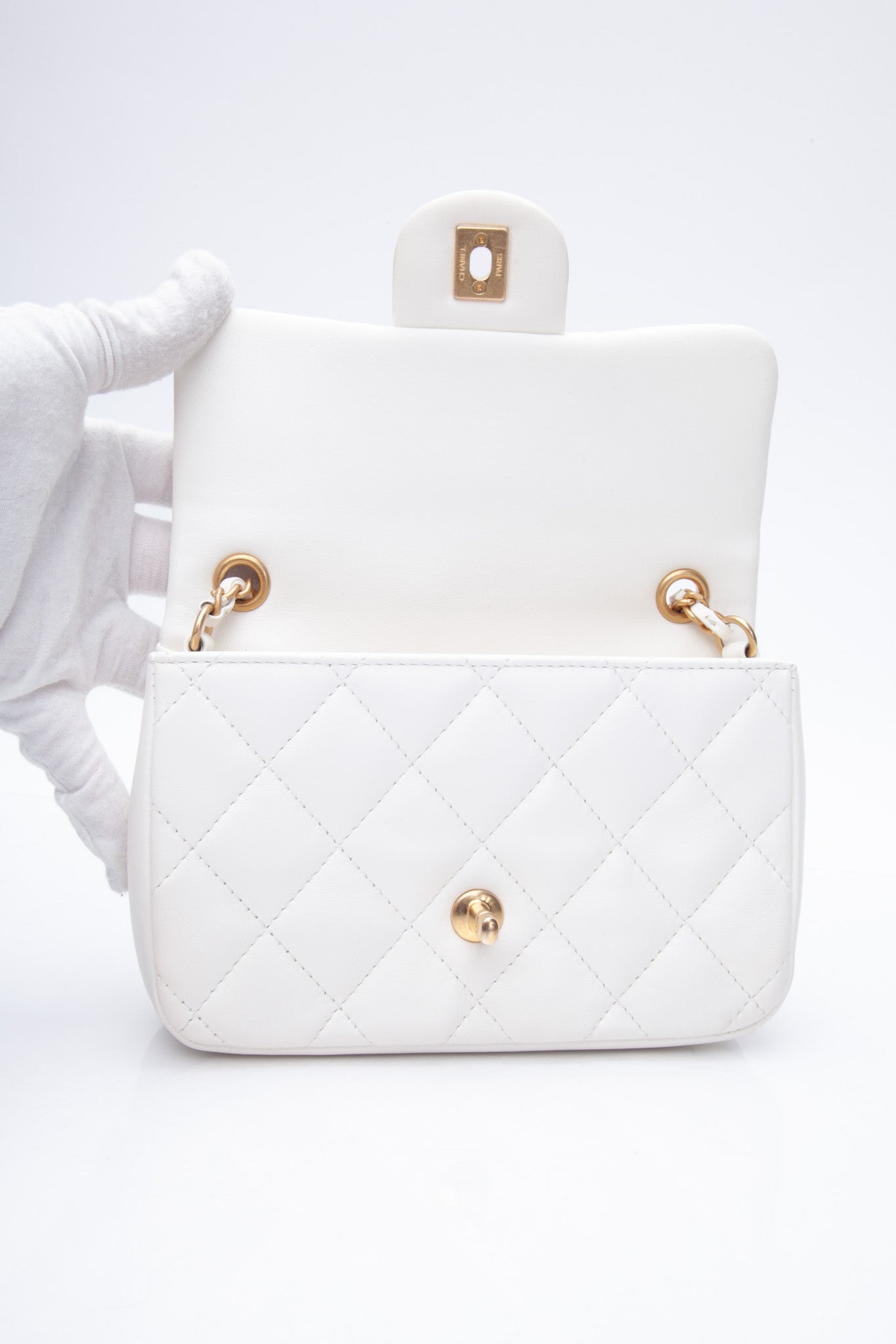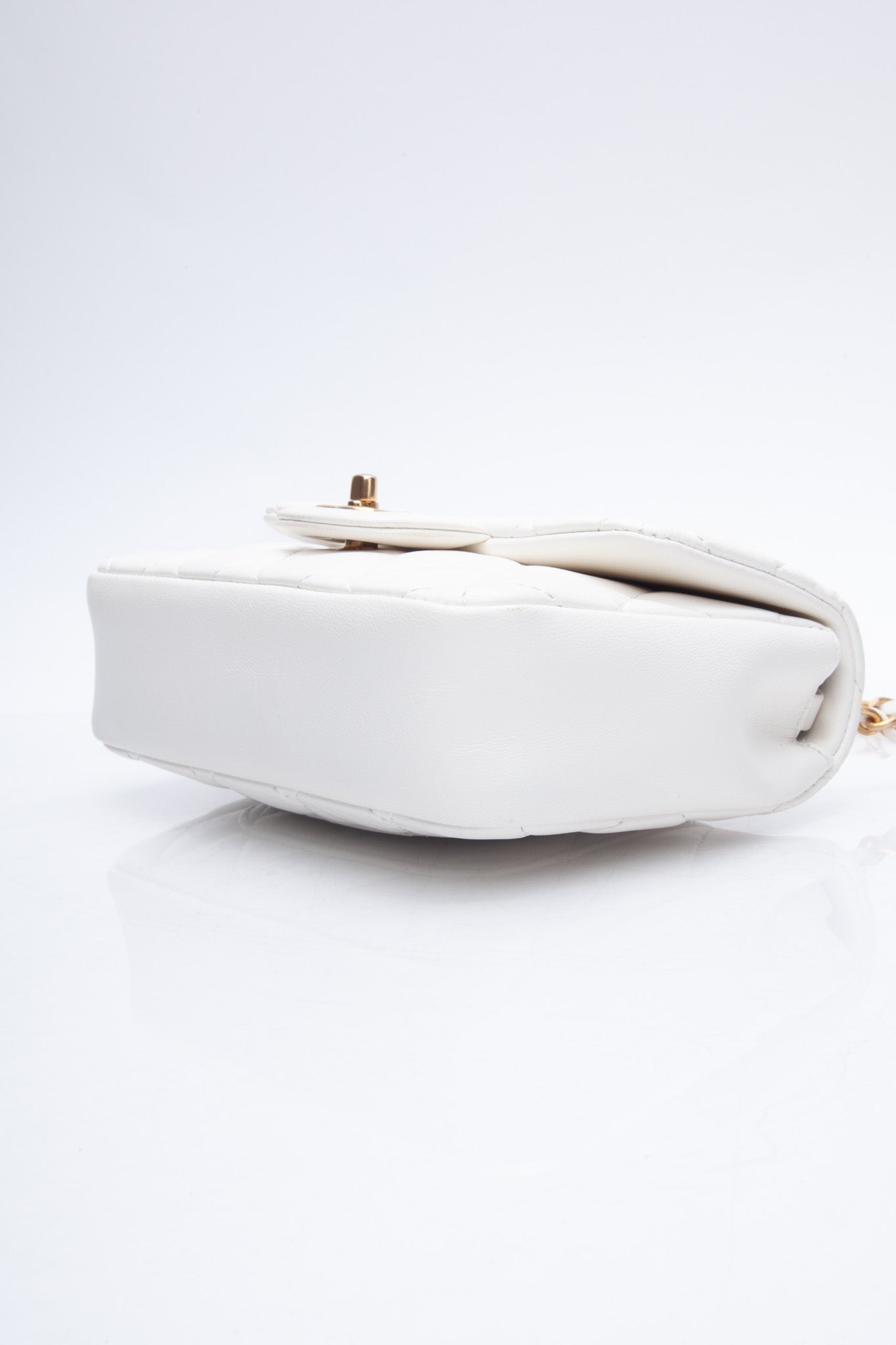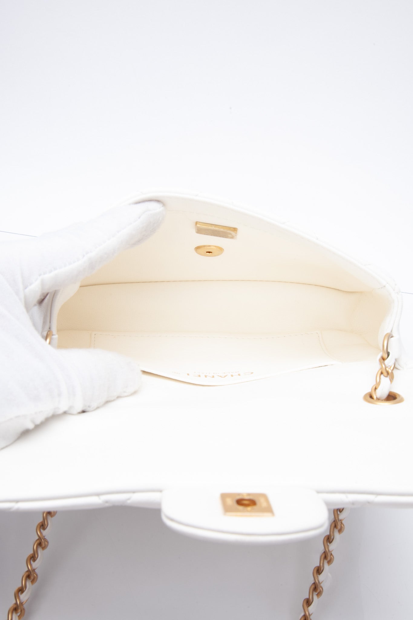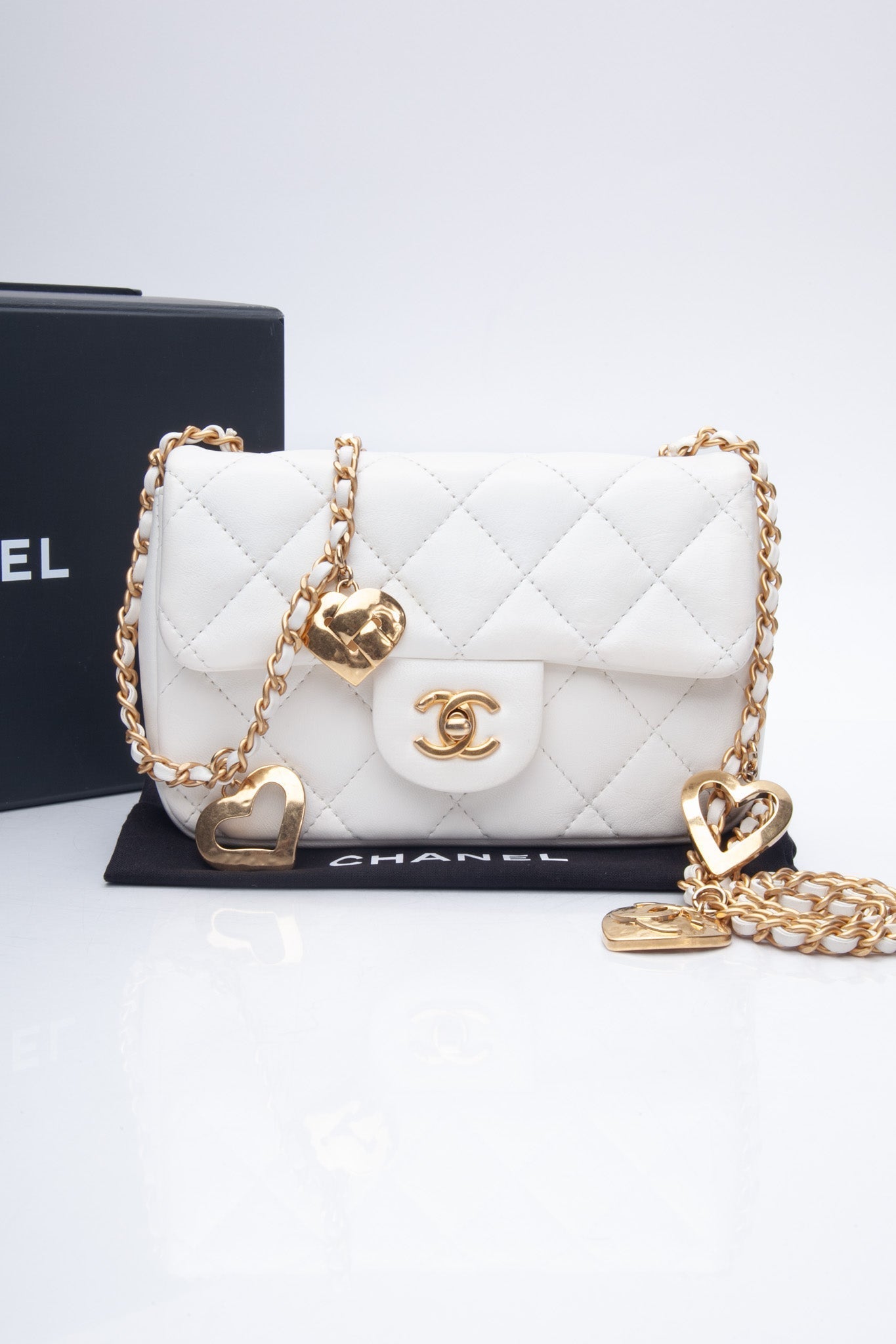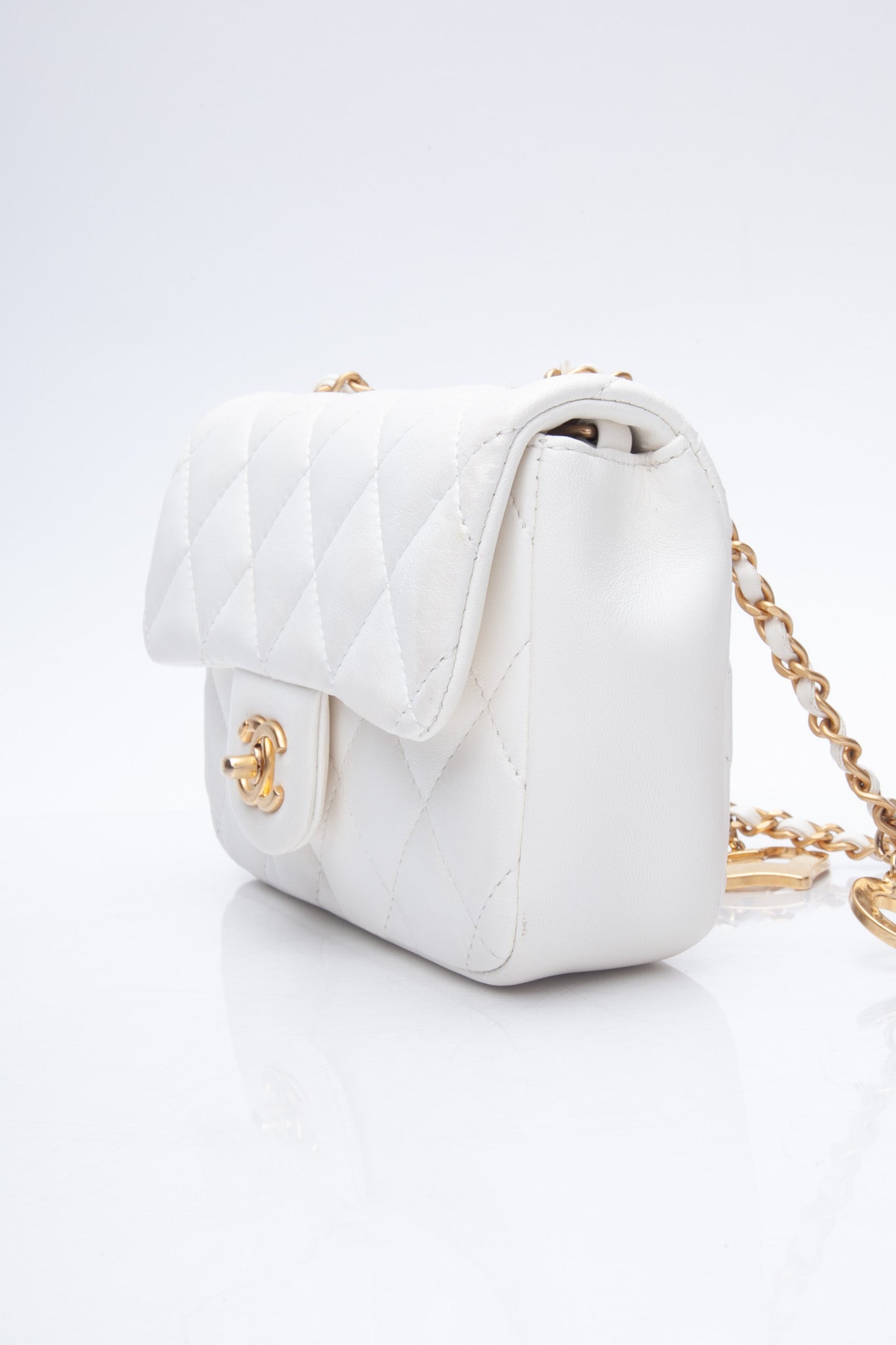 Chanel White Lambskin Quilted Heart Charms Mini Flap Bag