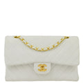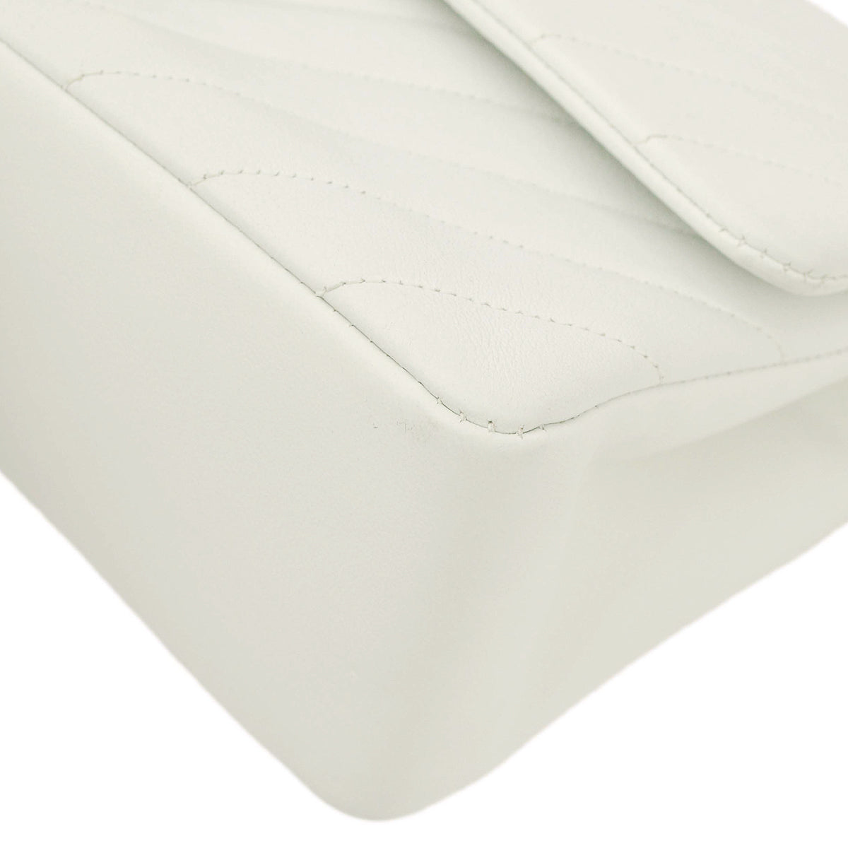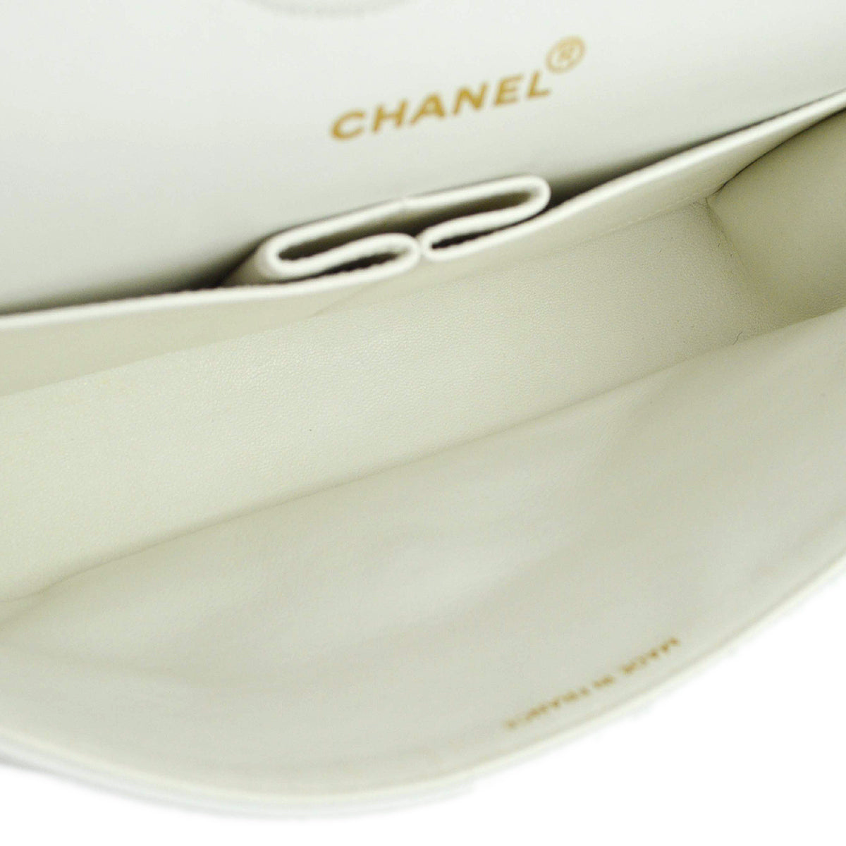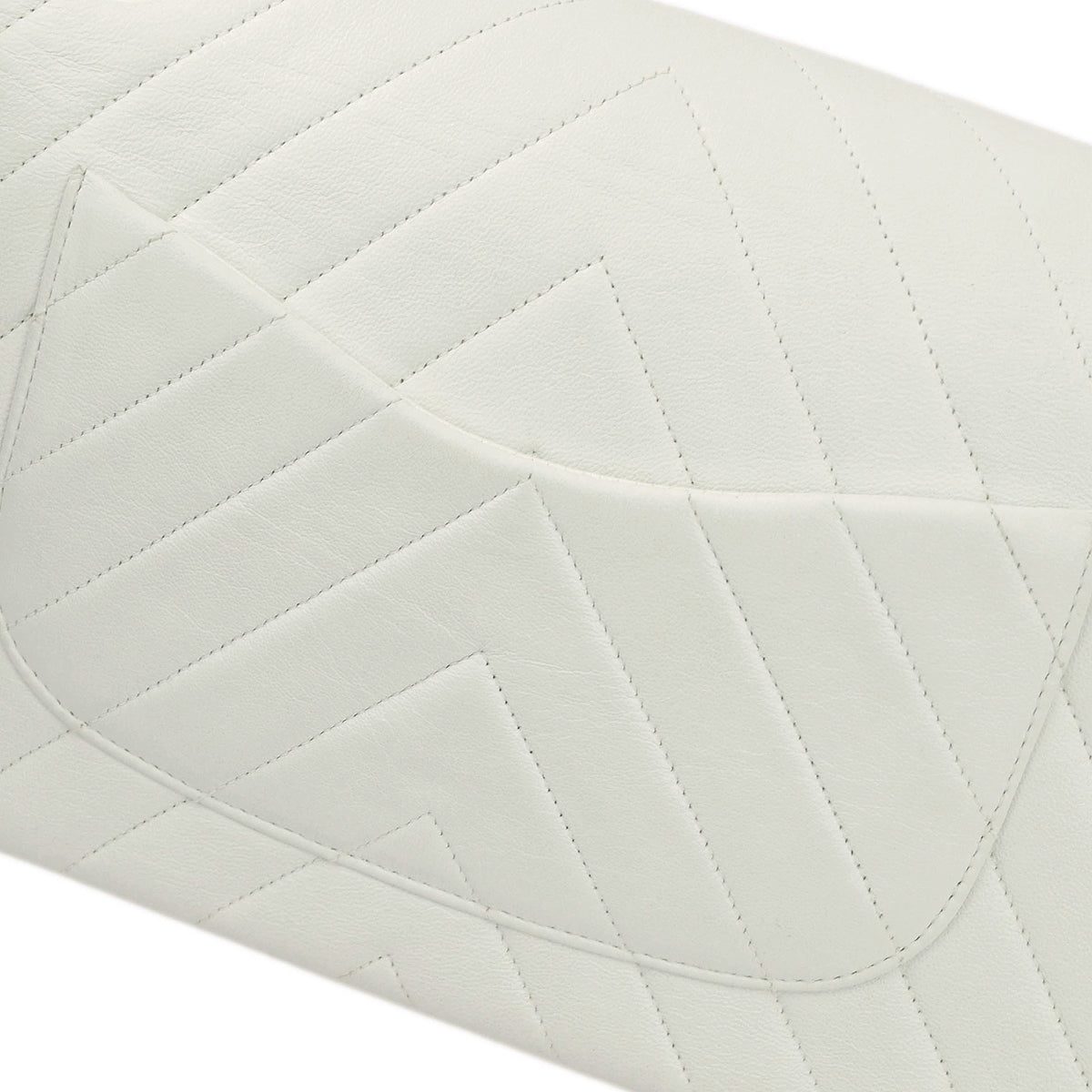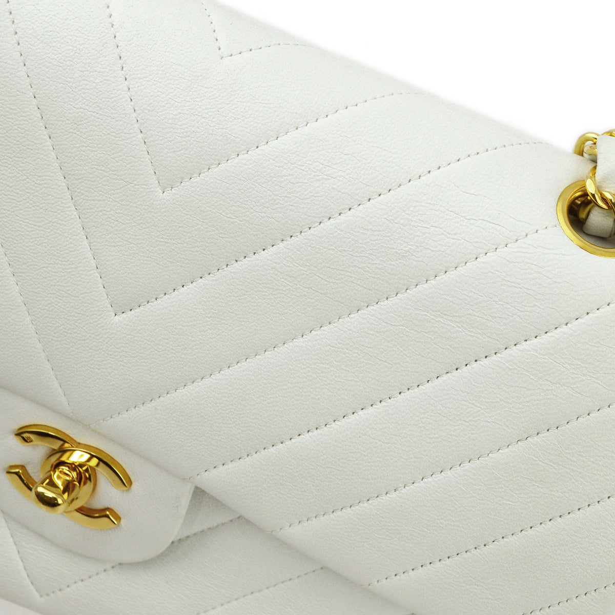 Chanel White Lambskin V Stitch Medium Classic Double Flap Shoulder Bag
