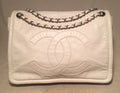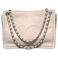 Chanel White Leather Quilted CC logo XL Maxi Classic Top Flap Shoulder Bag